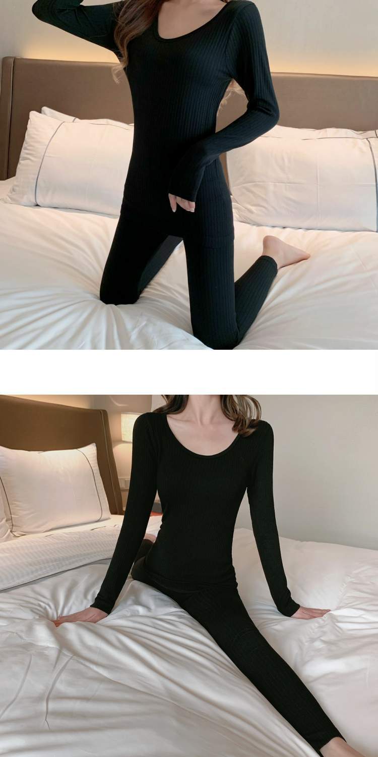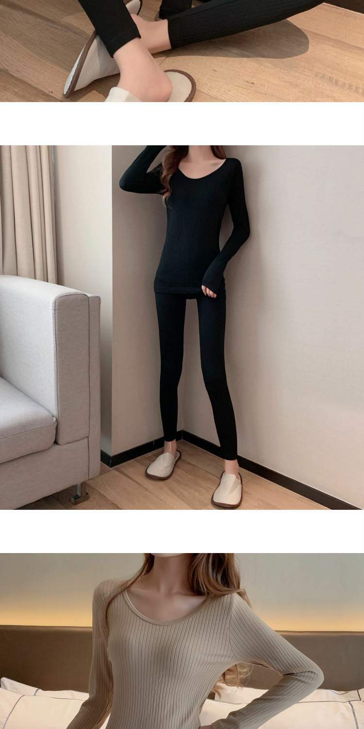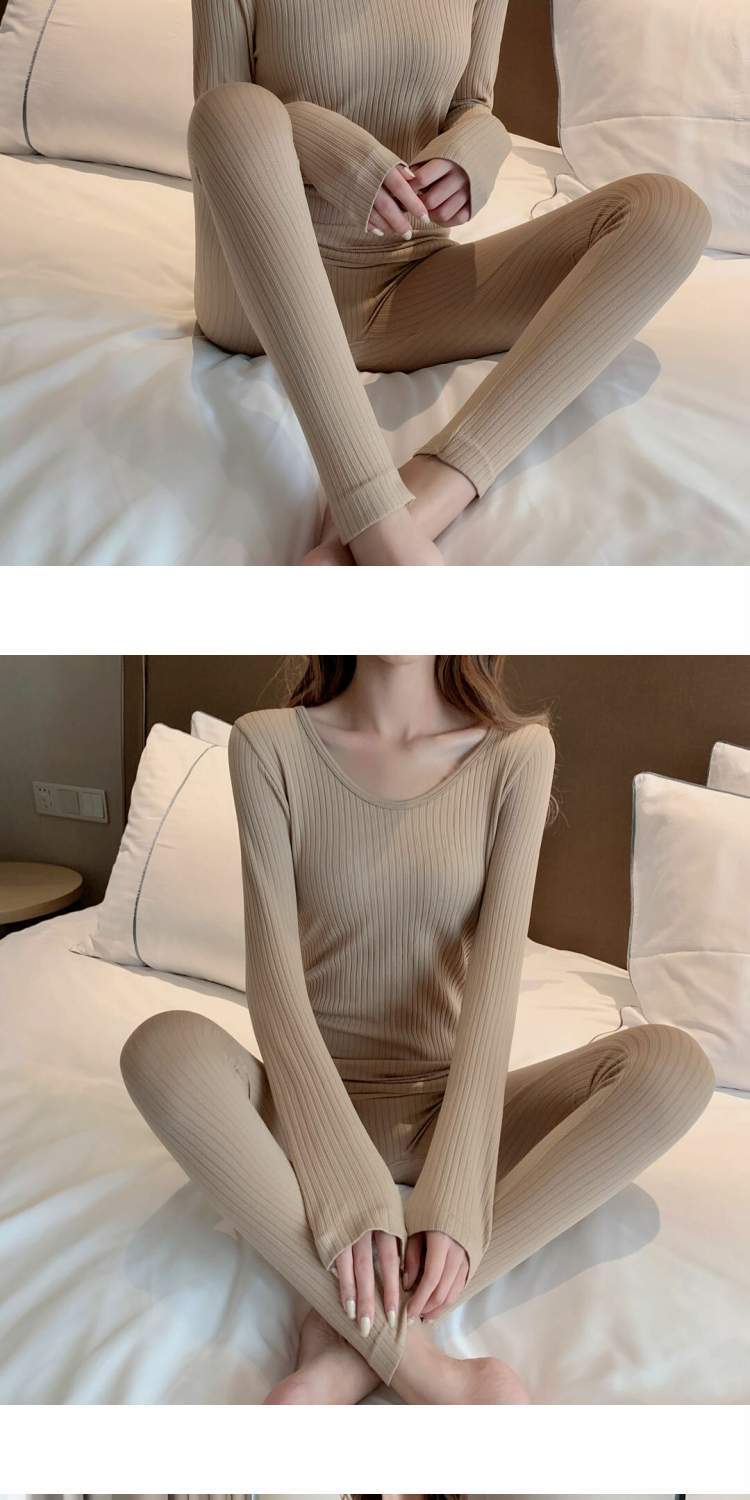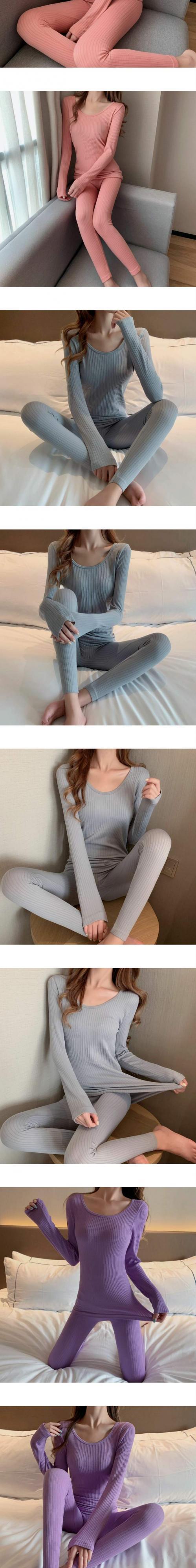 オータムウィンタースリムラウンドネックサーマルセット ハイウェスト ロング 秋物 冬物 Oネック 萌量不足72679068602