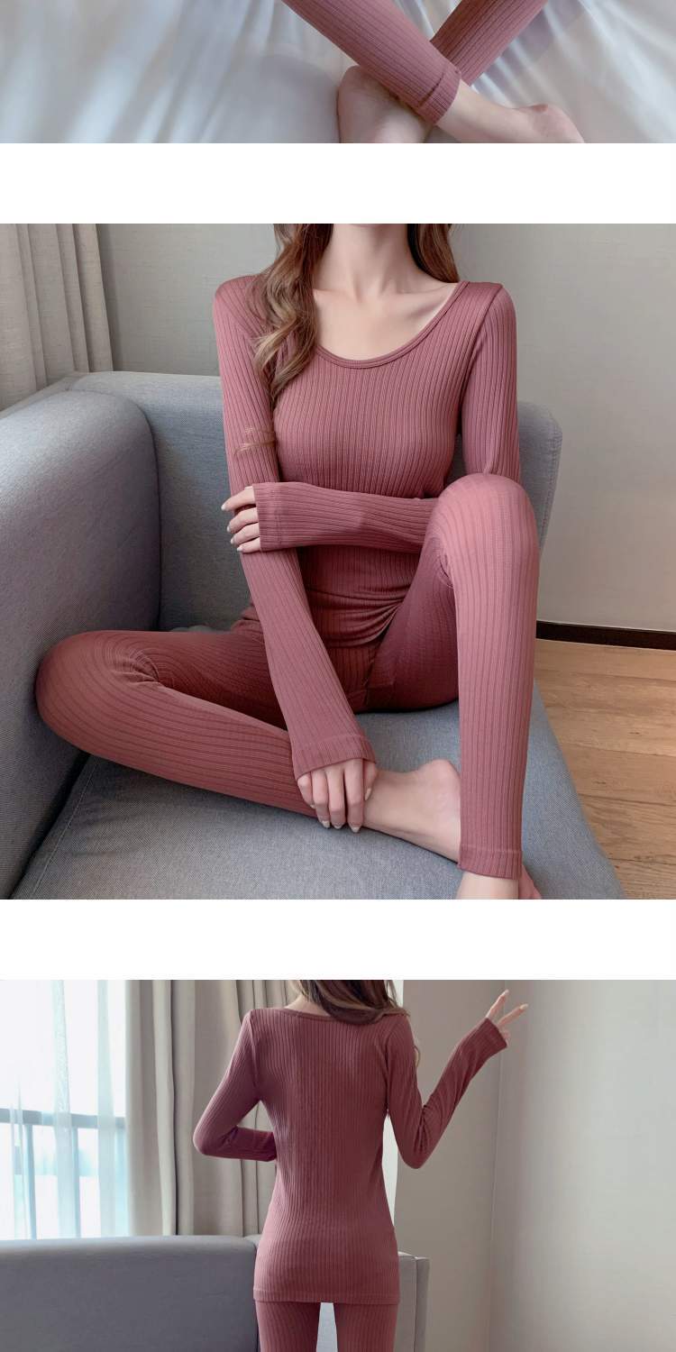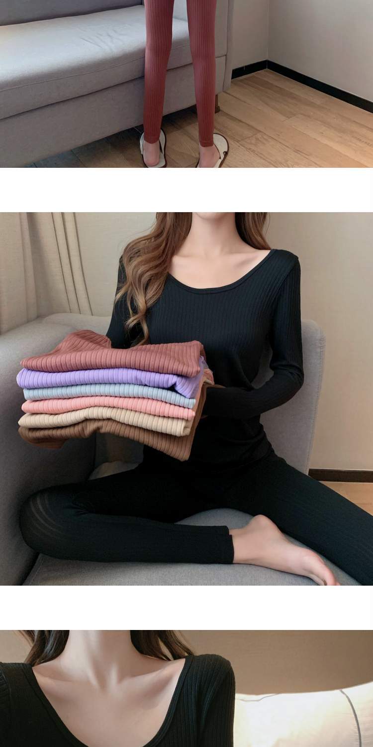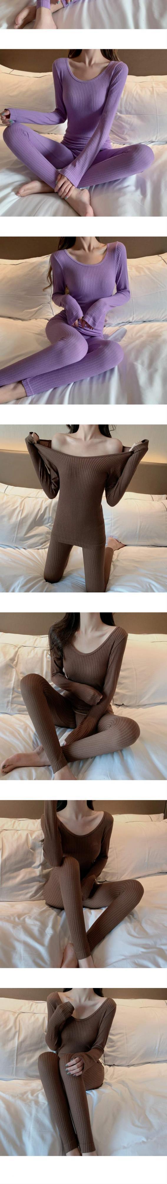 オータムウィンタースリムラウンドネックサーマルセット ハイウェスト ロング 秋物 冬物 Oネック 萌量不足72679068602