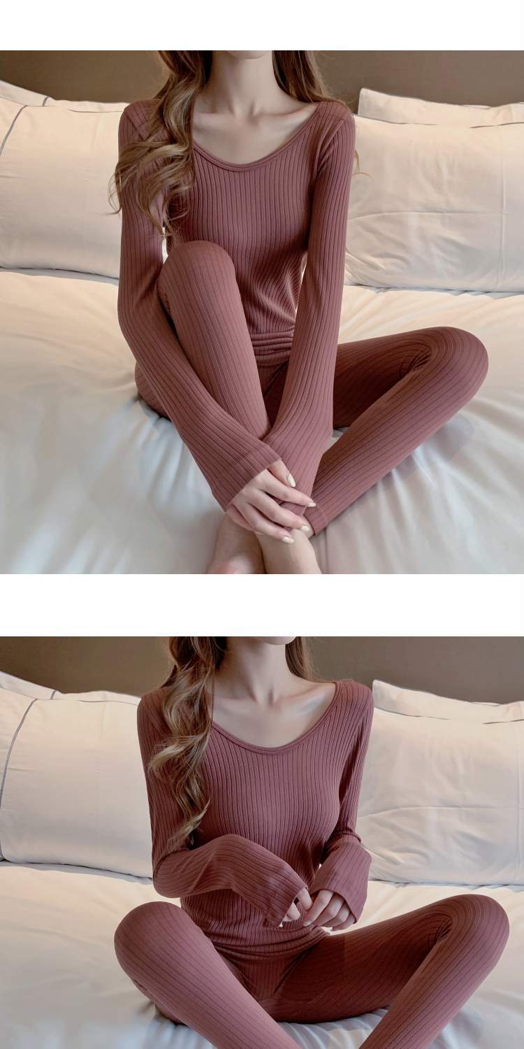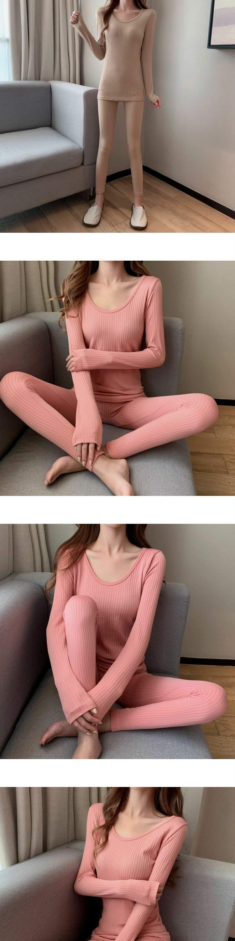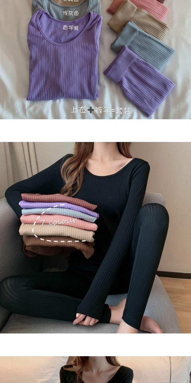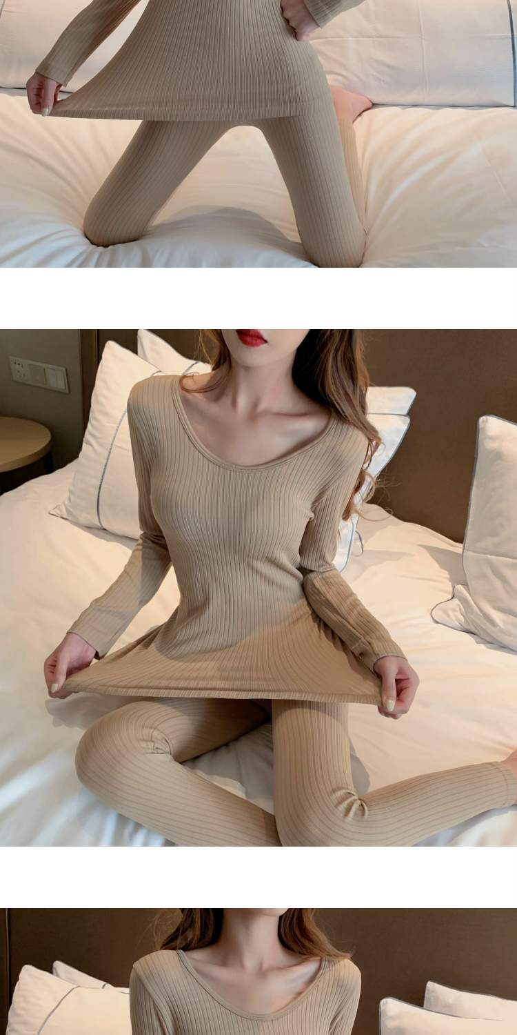 オータムウィンタースリムラウンドネックサーマルセット ハイウェスト ロング 秋物 冬物 Oネック 萌量不足72679068602