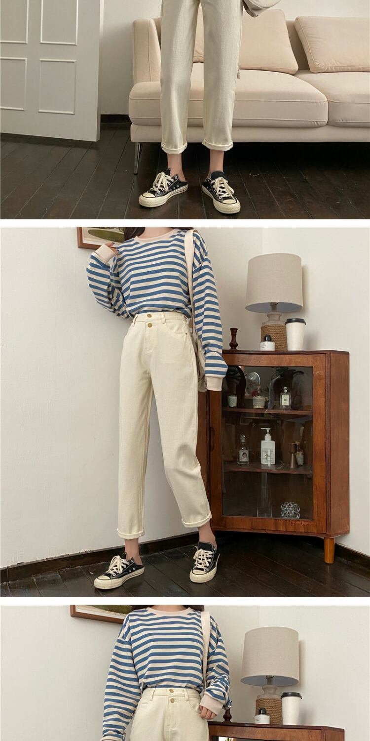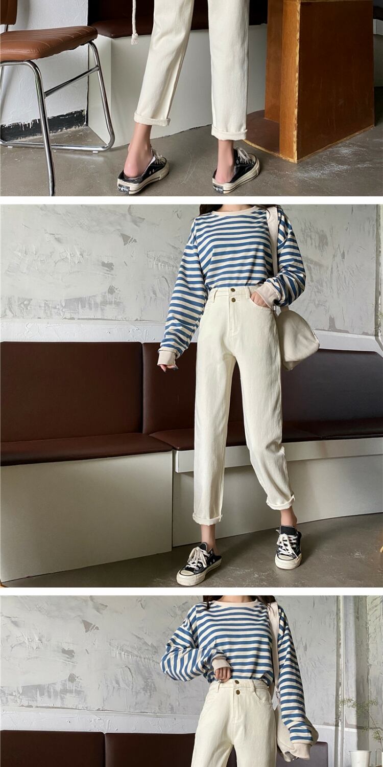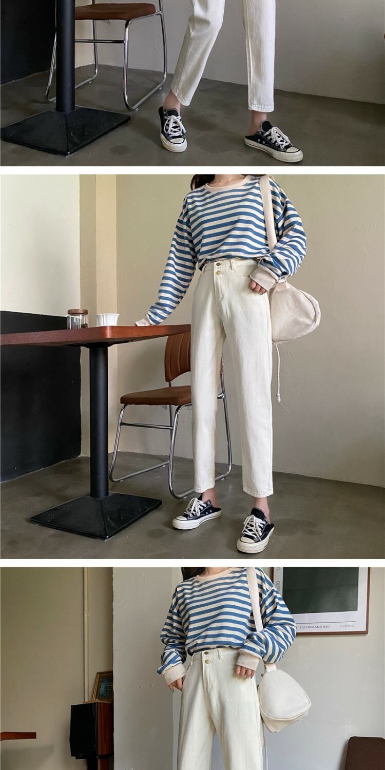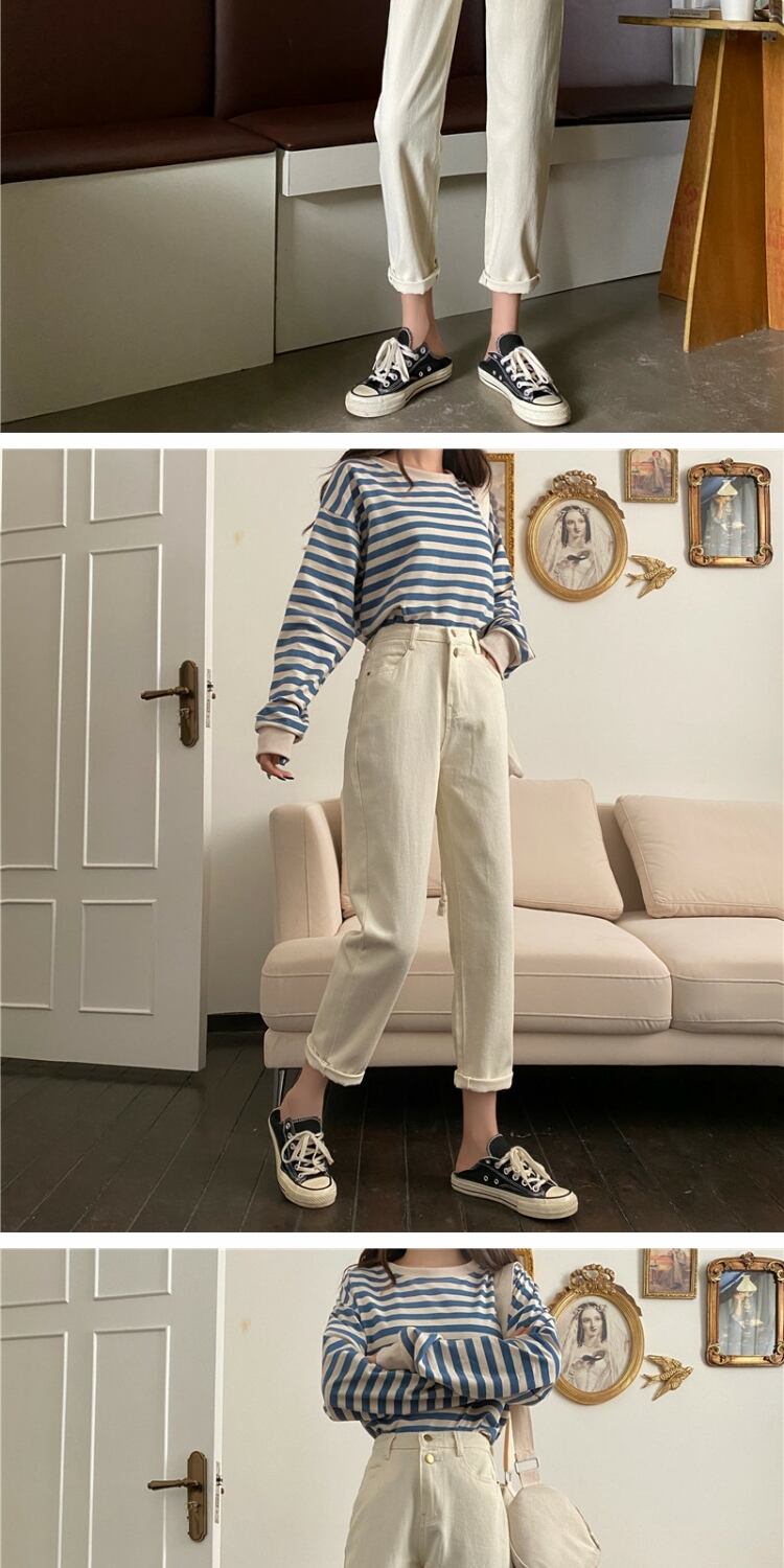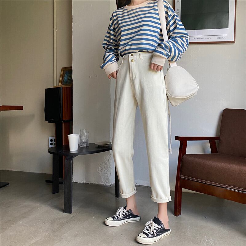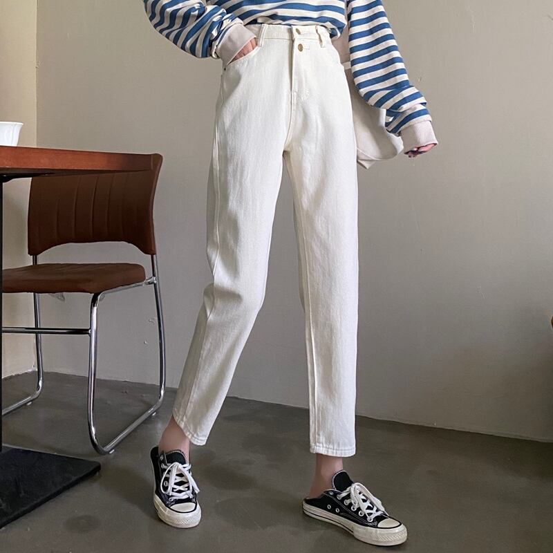 ハイウェストジーンズ レディーススプリングルーズ薄手パンツ ホワイト 春物 萌量不足84900008474