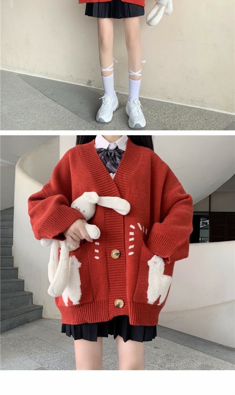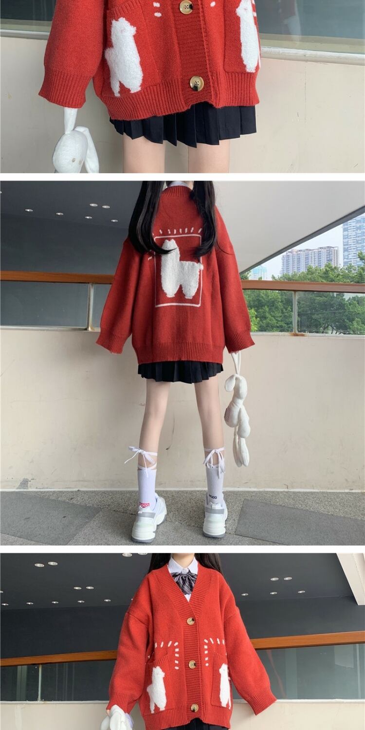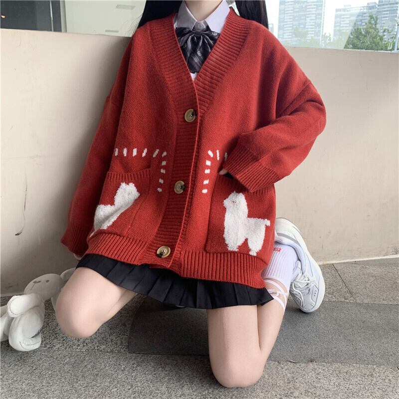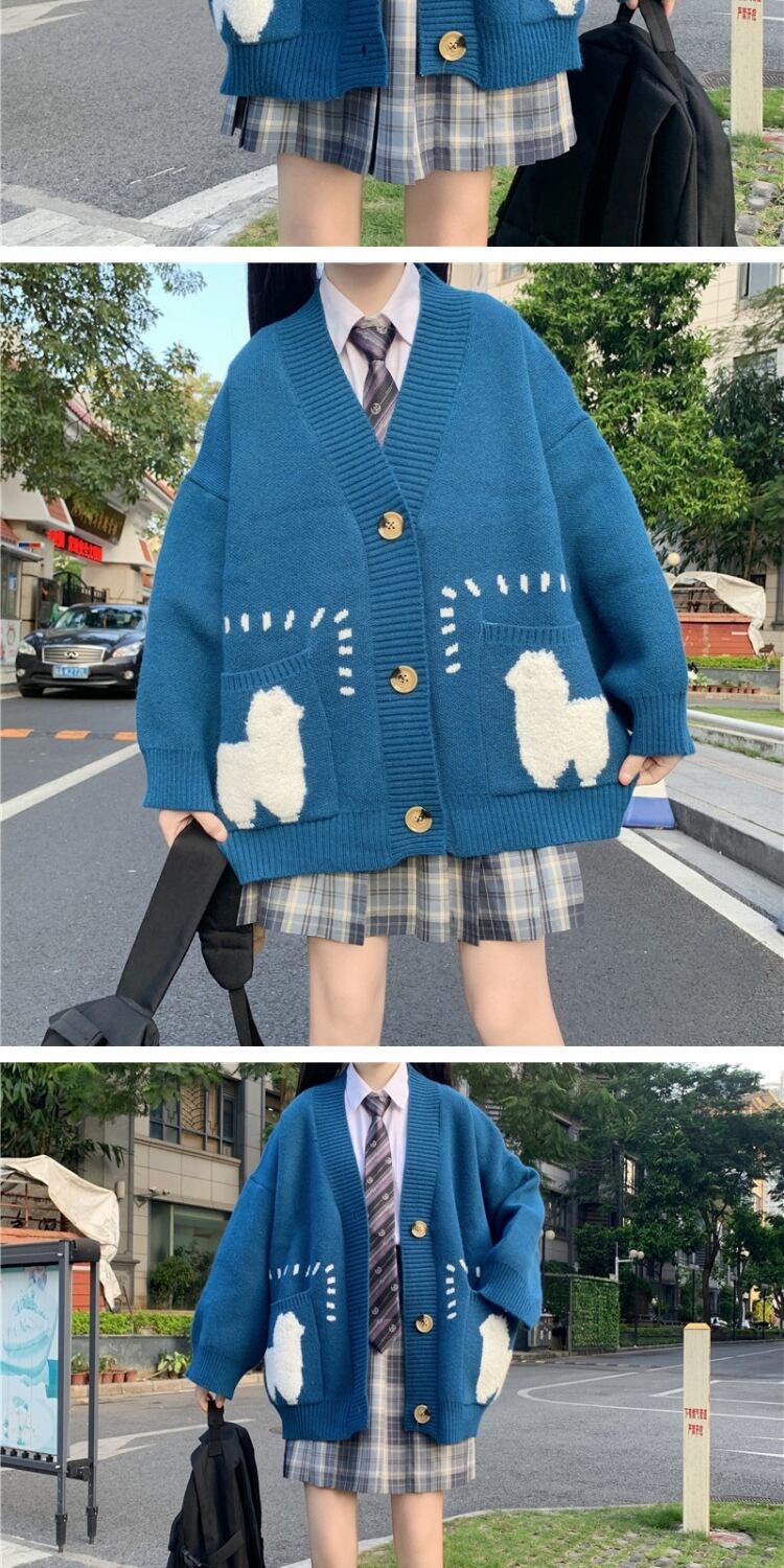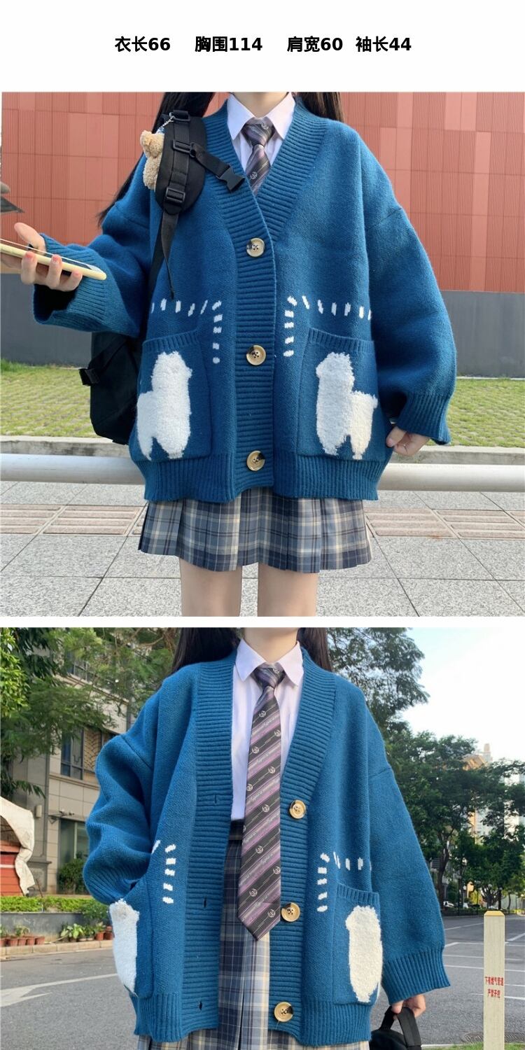 カラーVネックセーター ルーズニットカーディガンジャケット 大人ガーリー スウィート キュート カジュアル ウィンター 冬物 萌量不足58287962103