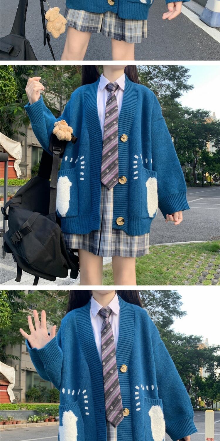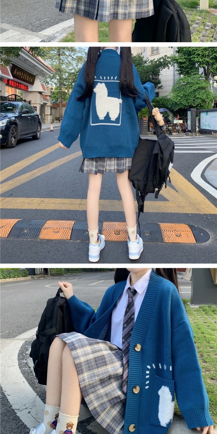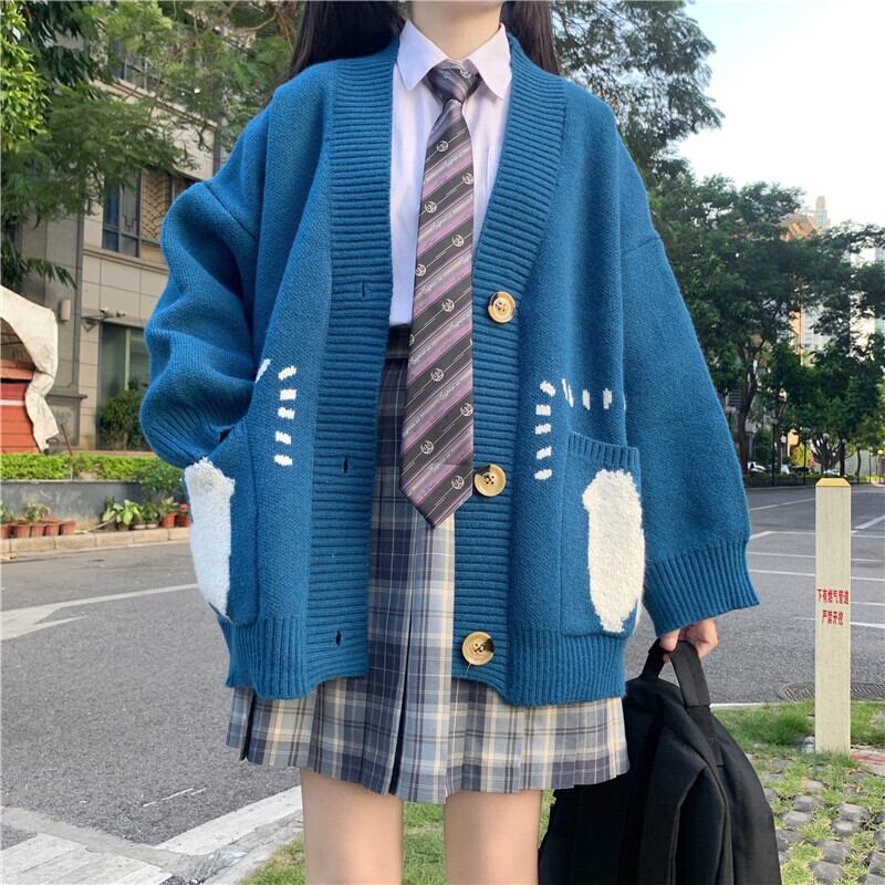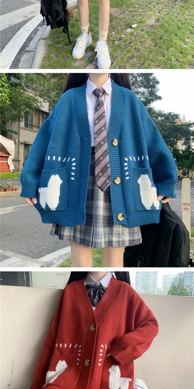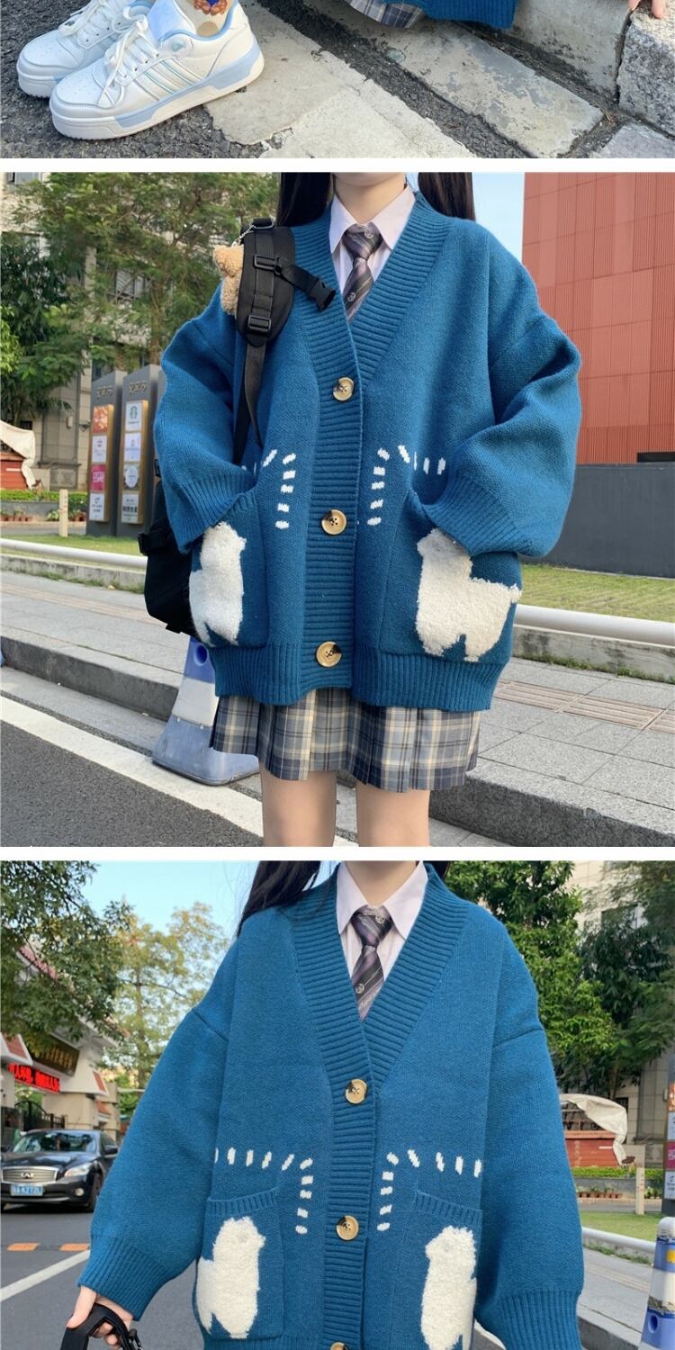 カラーVネックセーター ルーズニットカーディガンジャケット 大人ガーリー スウィート キュート カジュアル ウィンター 冬物 萌量不足58287962103