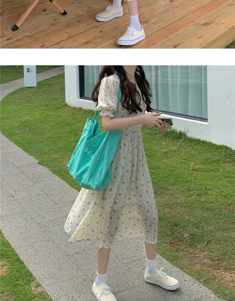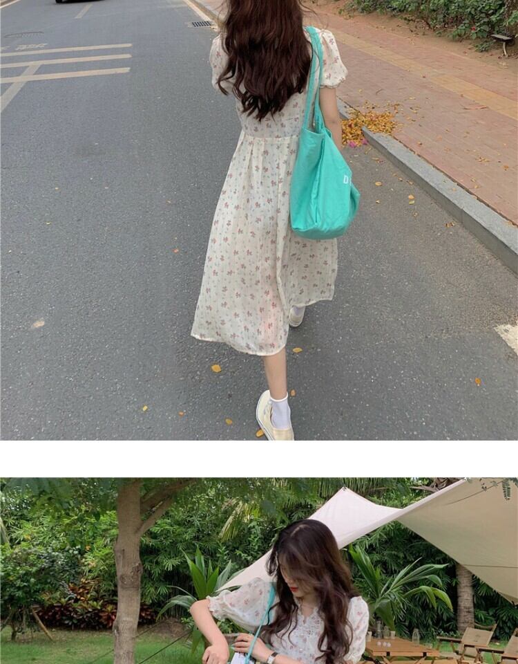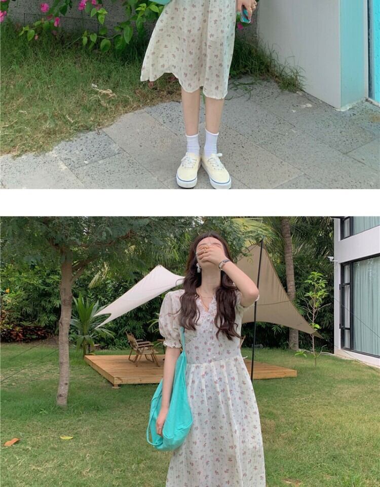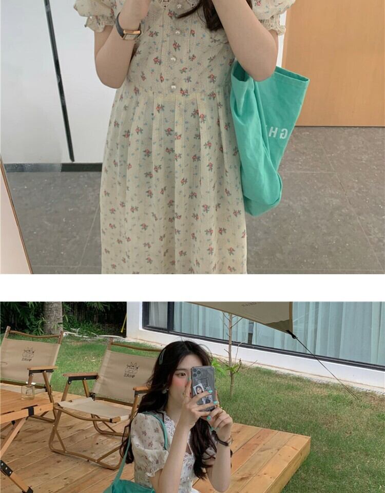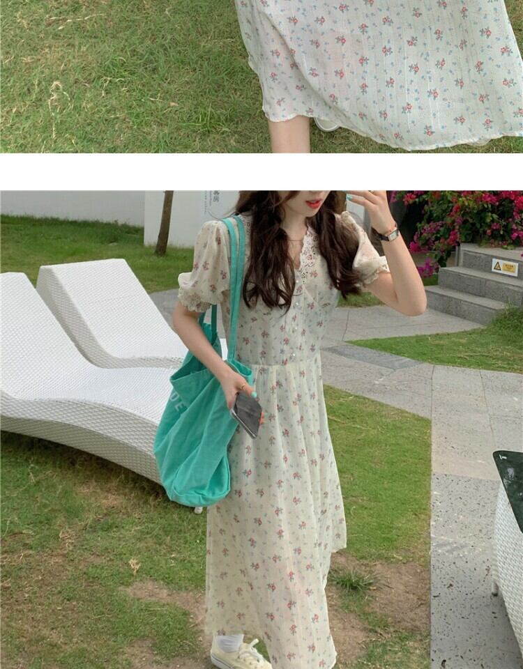 スタンダードレースシフォンドレス サマー薄手スカート フローラルAライン レトロ 夏物 花柄 萌量不足3173639954