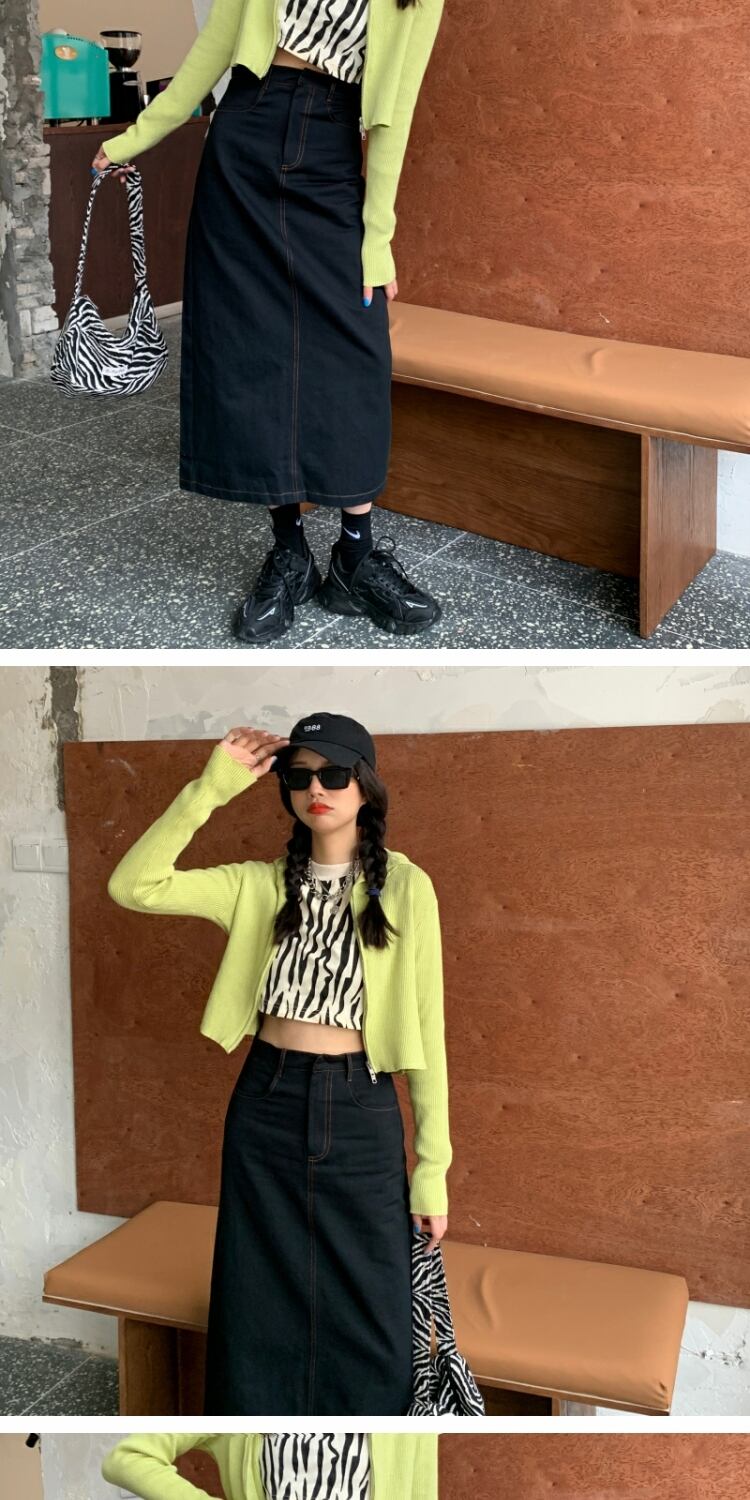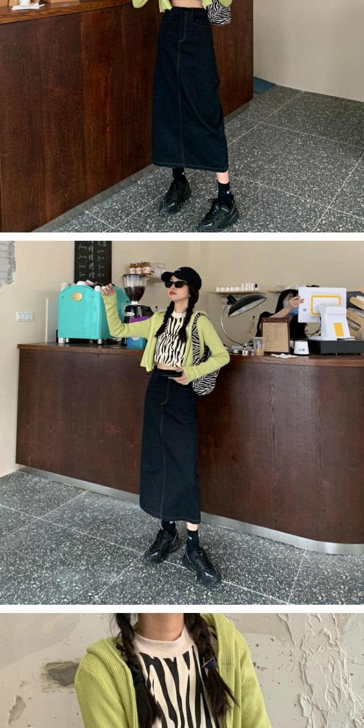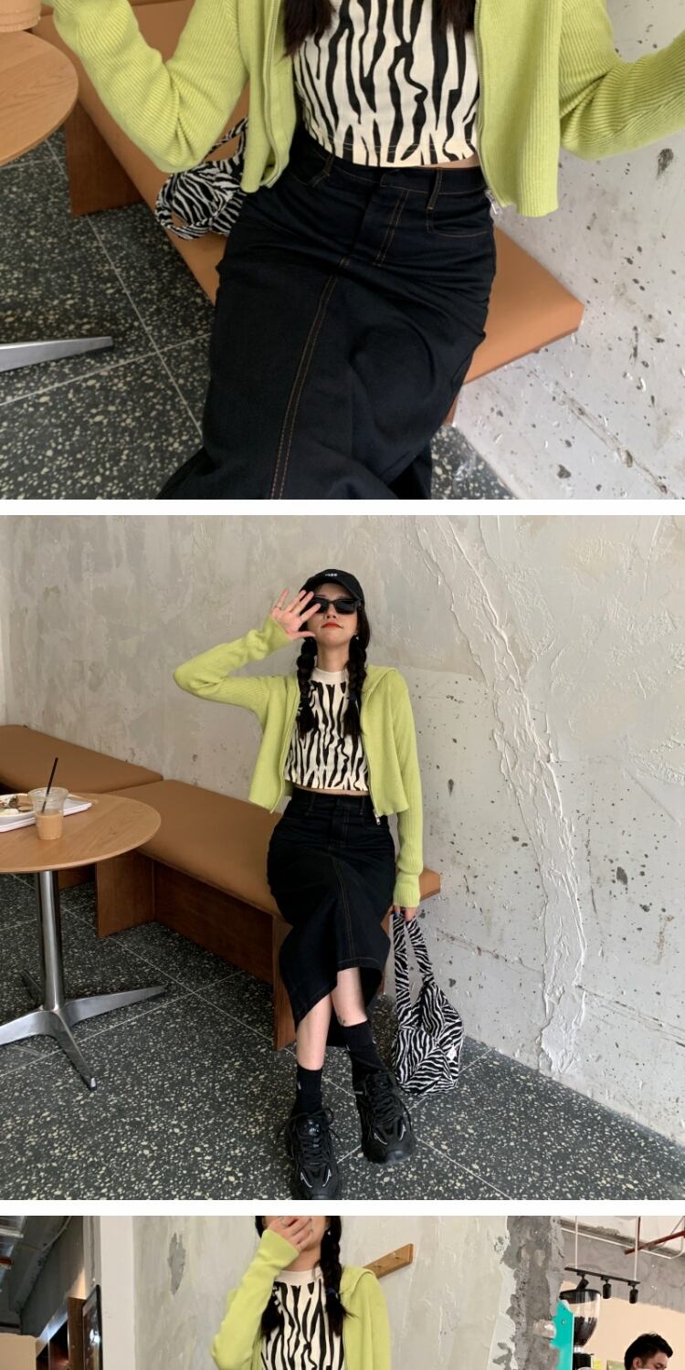 色:ニットカーディガン(ワンピース),ゼブラプライマー(シングルピース),黒のスカート(シングルピース)