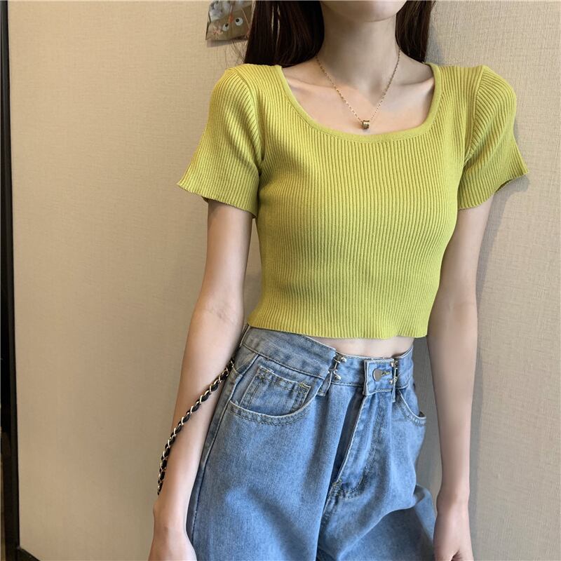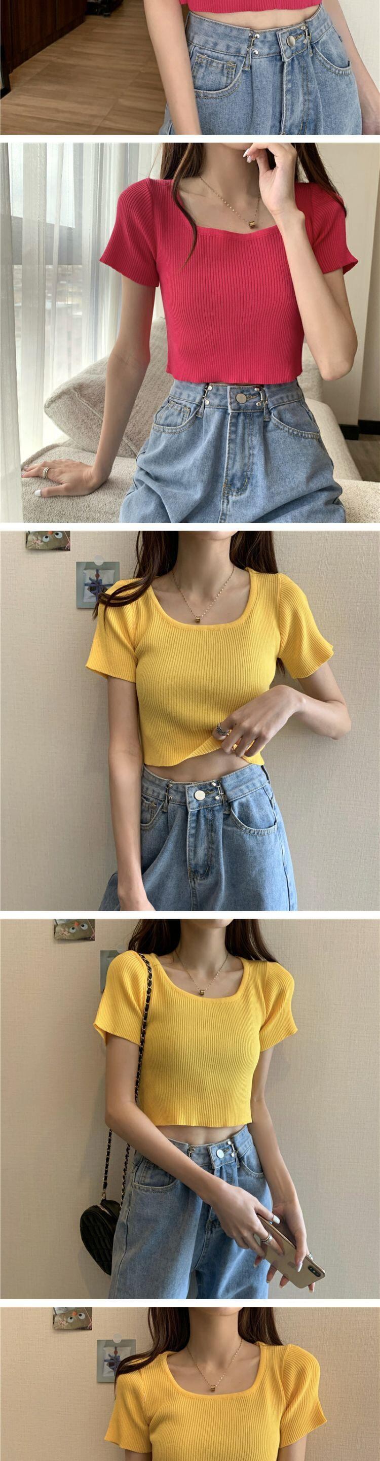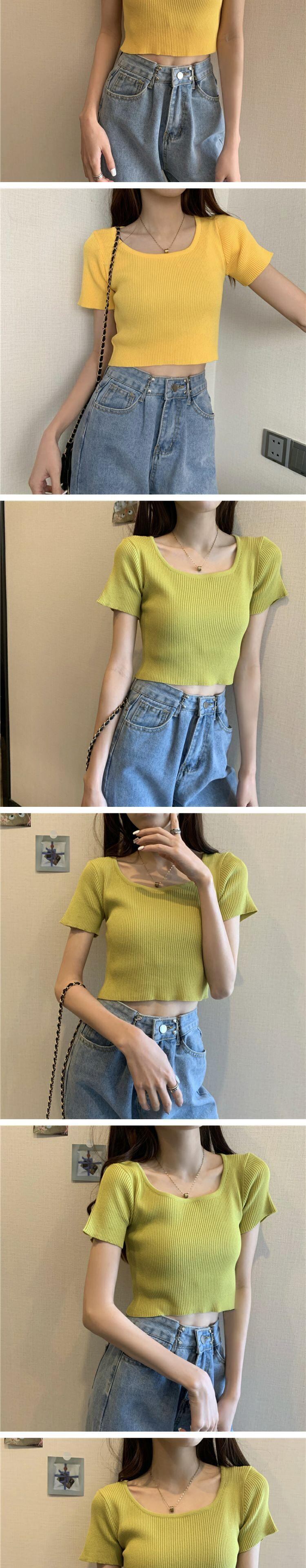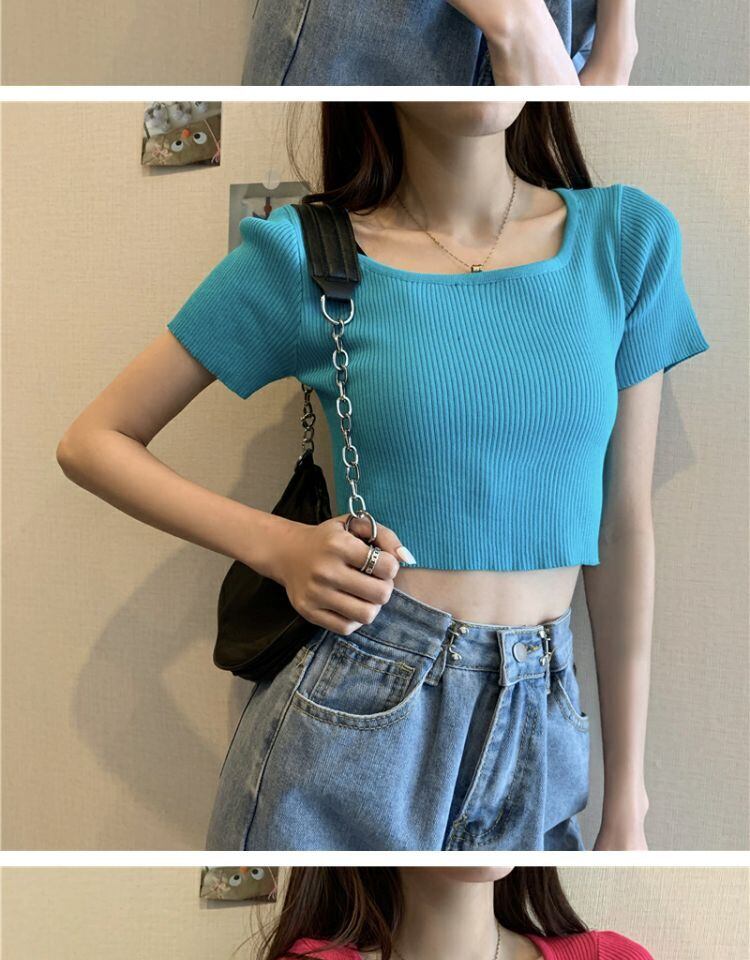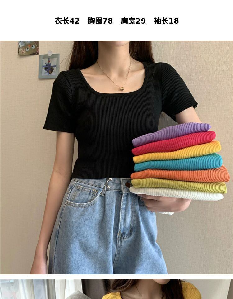 シャツ サマープルオーバー スリムショートTシャツ ニットトップス 夏物 スクウェア 萌量不足64189081708