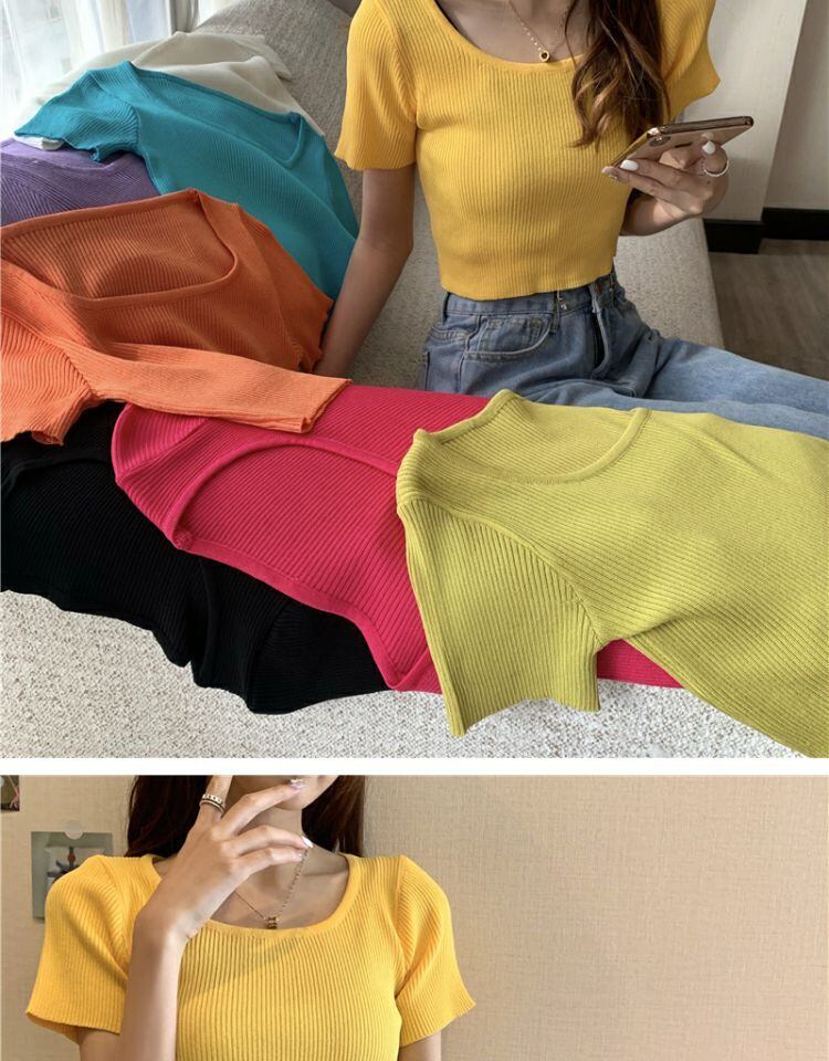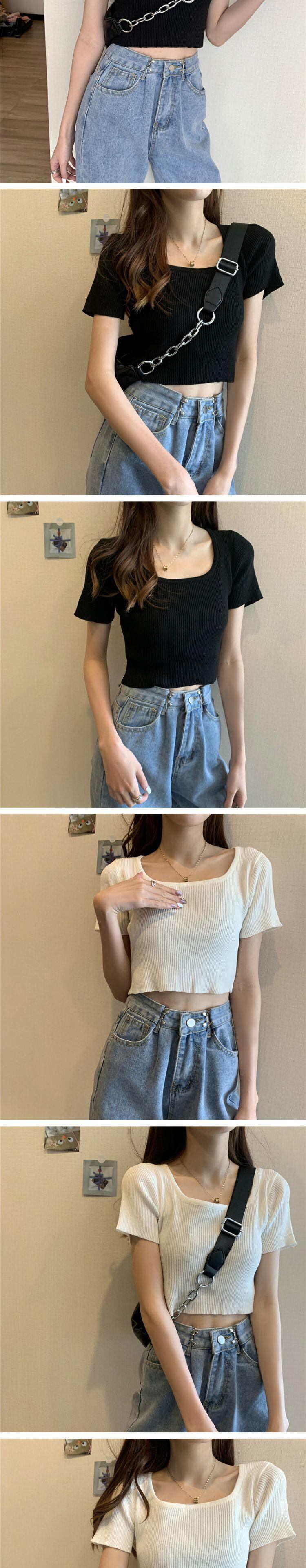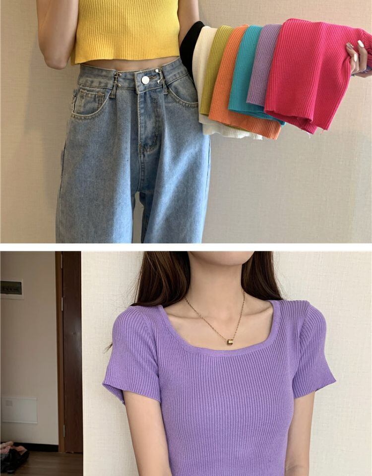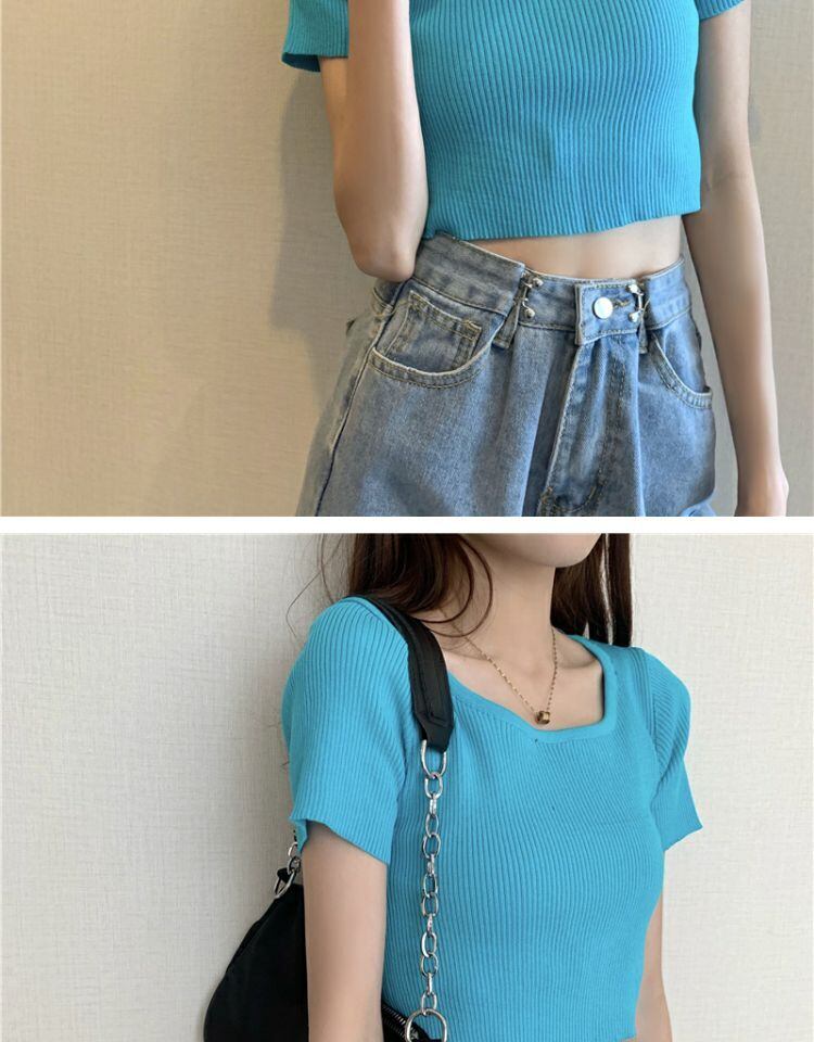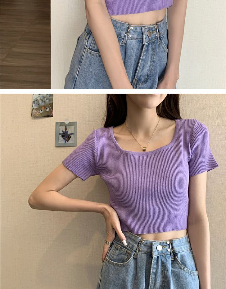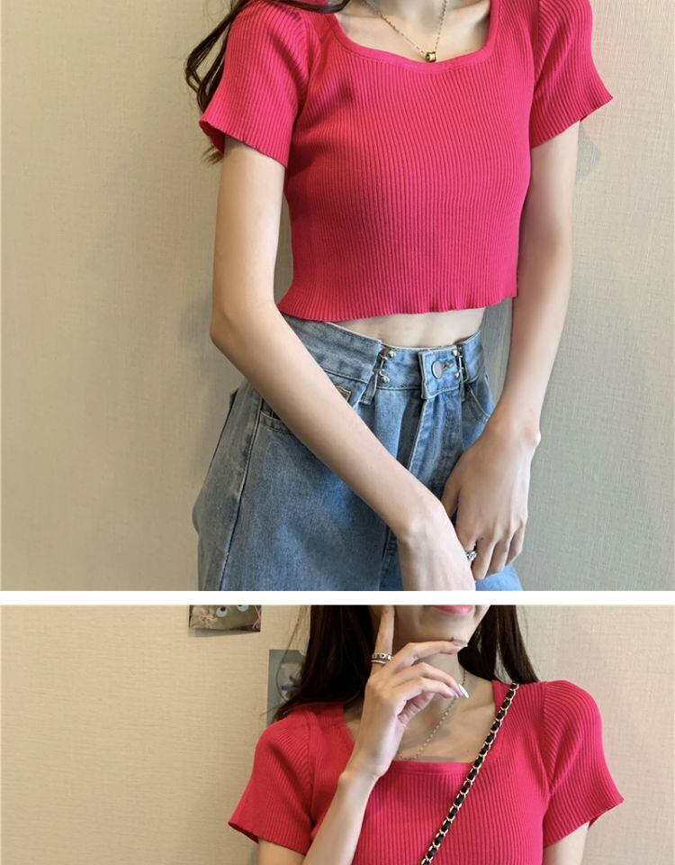 シャツ サマープルオーバー スリムショートTシャツ ニットトップス 夏物 スクウェア 萌量不足64189081708