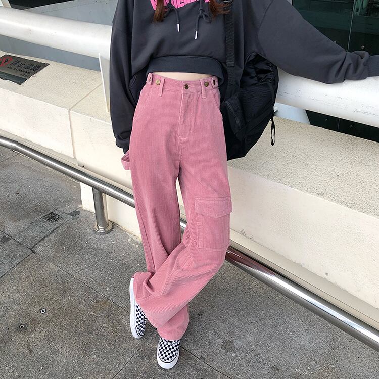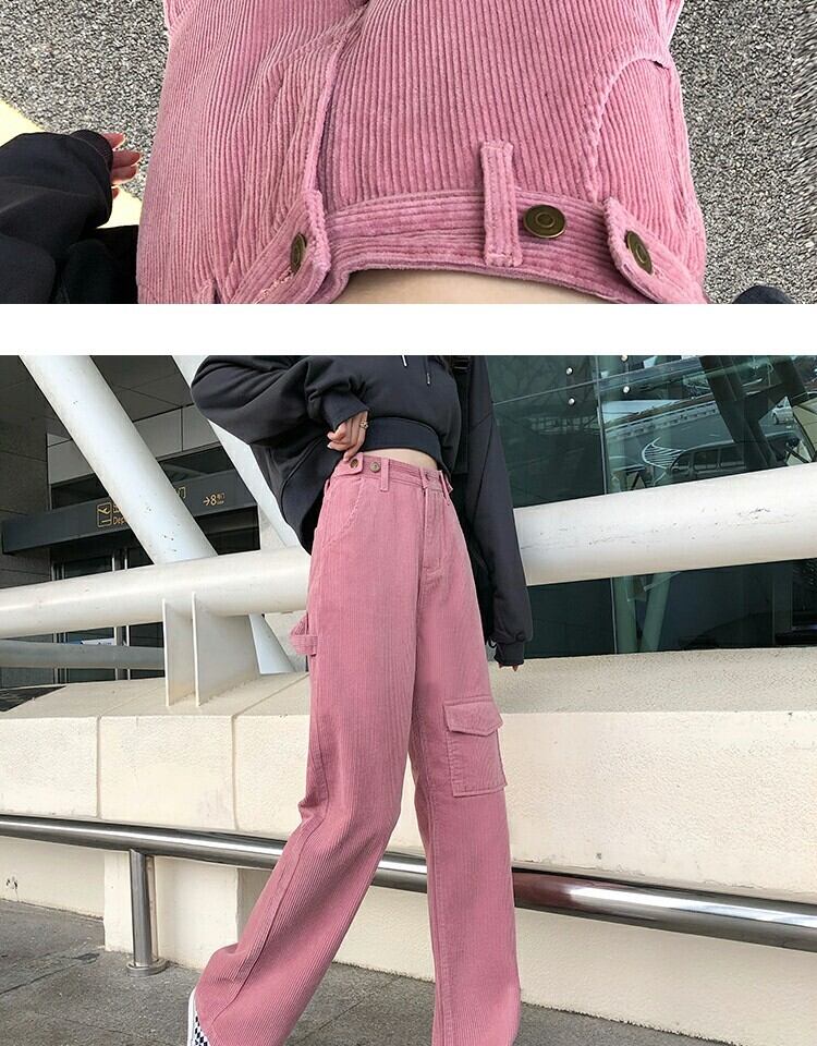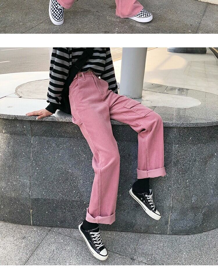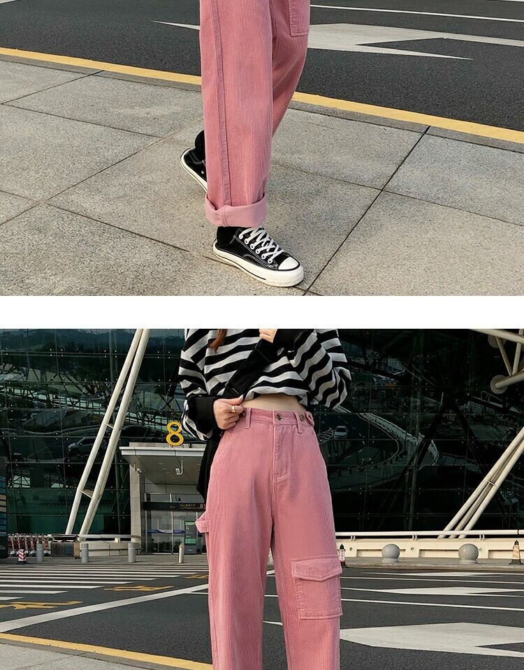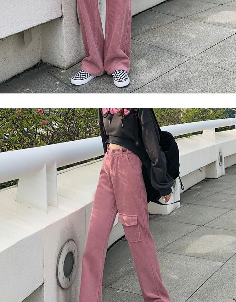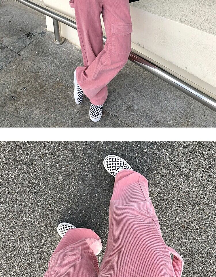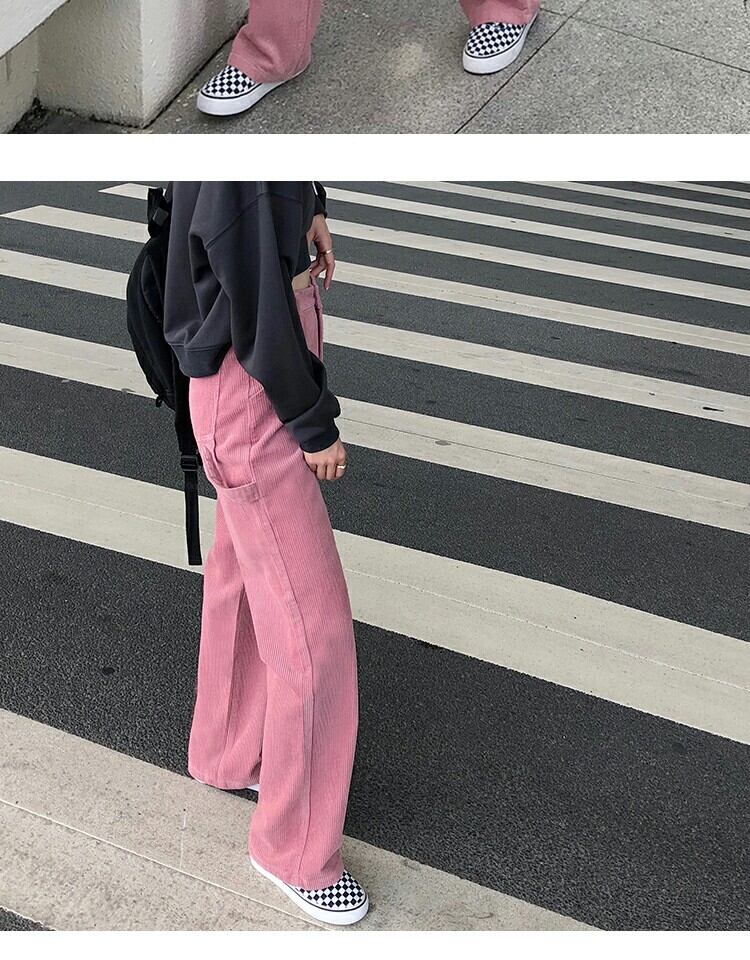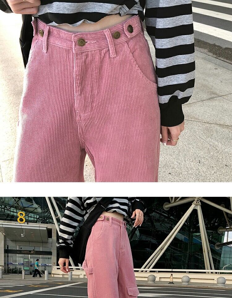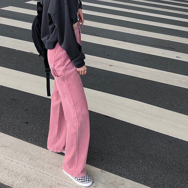 ハイウェストウェスト薄手カジュアルパンツ スプリングスタイルスタンダード ピンク レトロ かわいい 春物 萌量不足41658843305