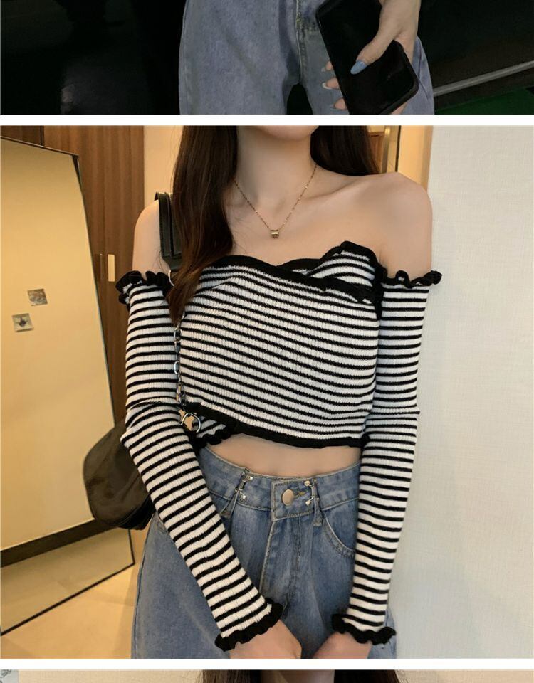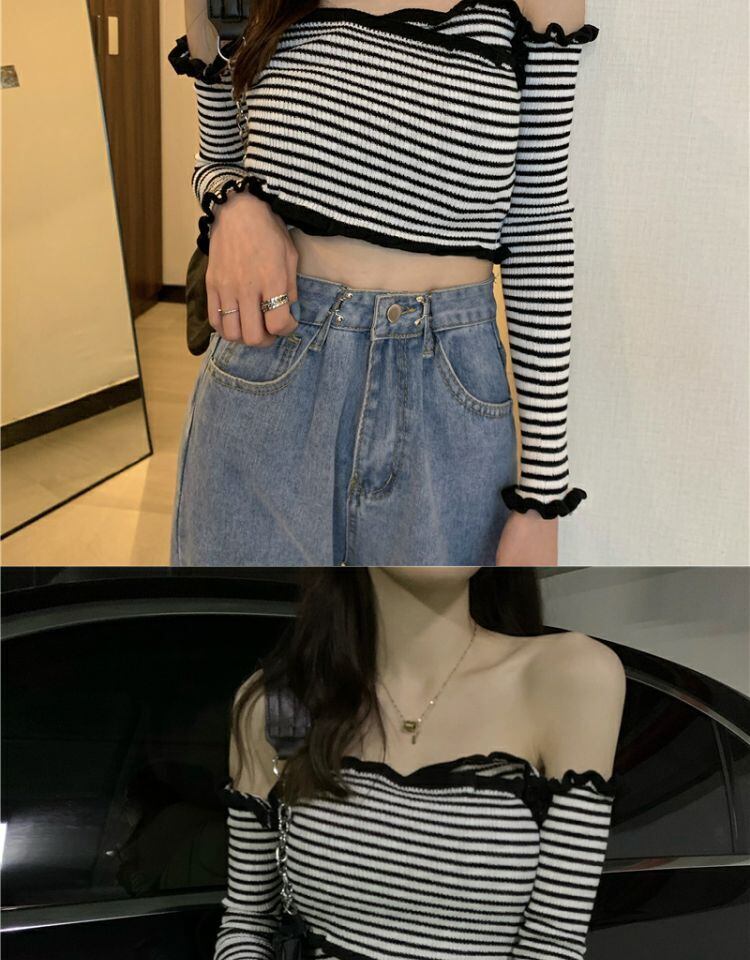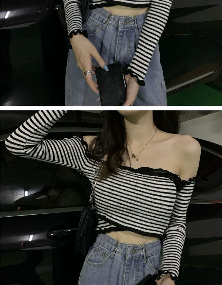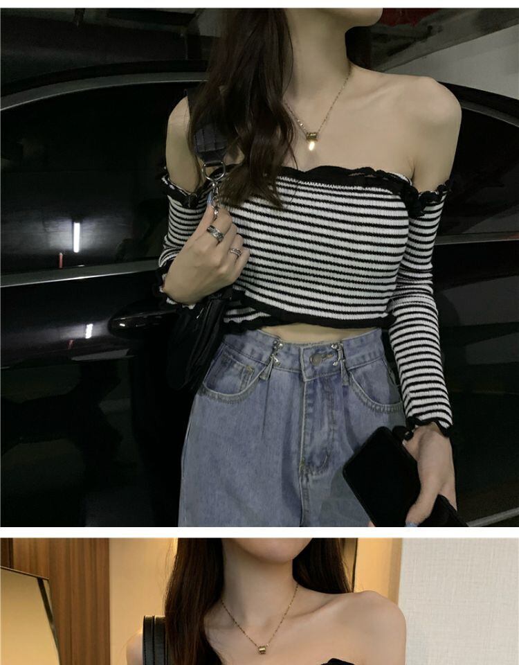 ショートトップス スプリングスタイルストラップレススリムTシャツ ロング 春物 萌量不足31817137308