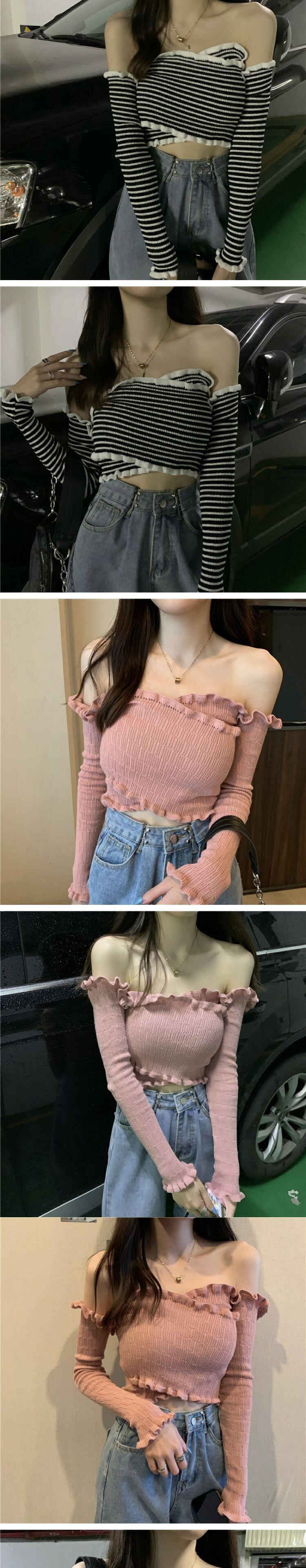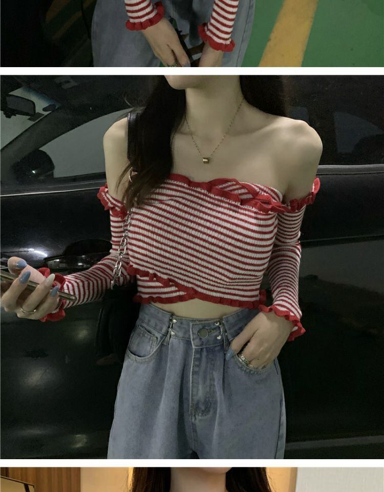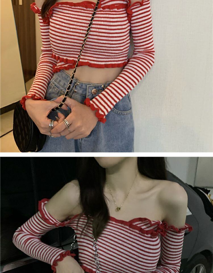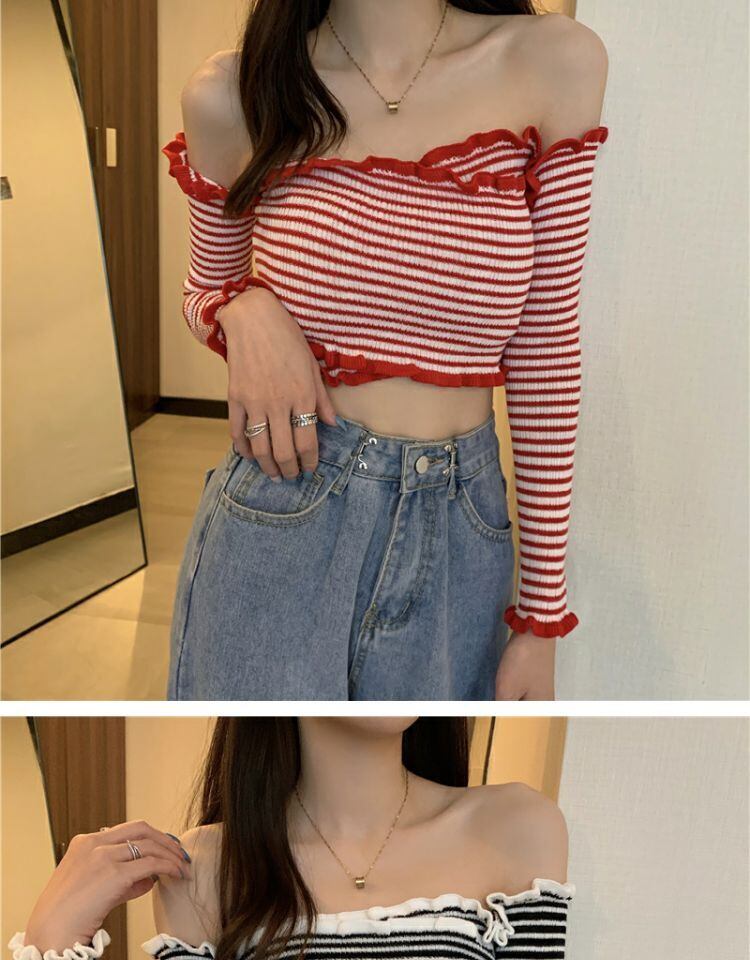 ショートトップス スプリングスタイルストラップレススリムTシャツ ロング 春物 萌量不足31817137308