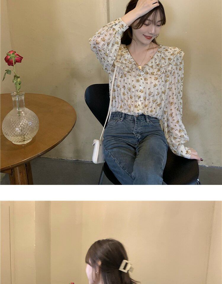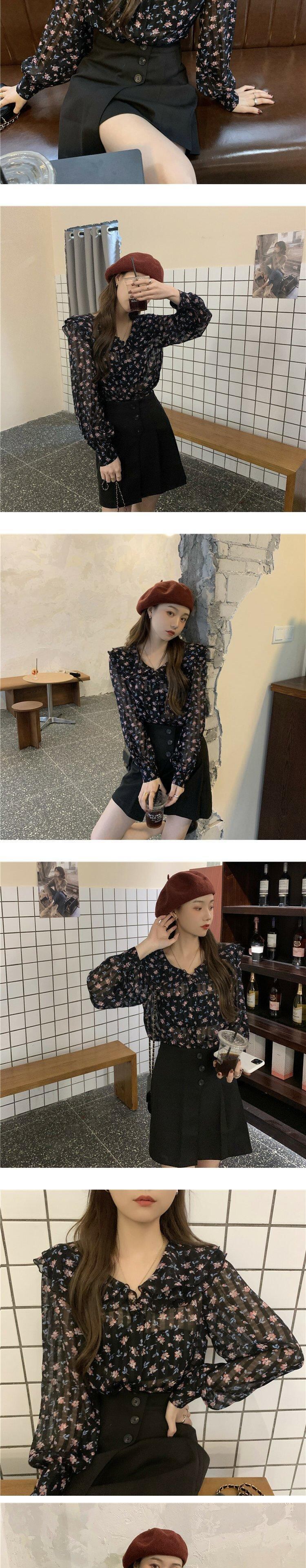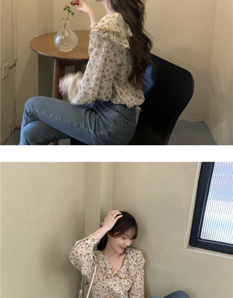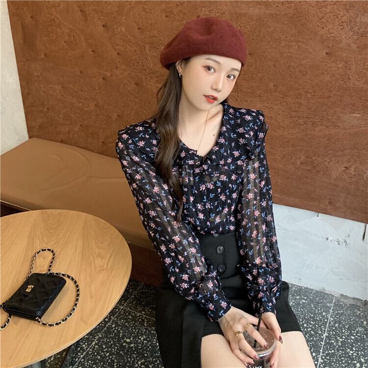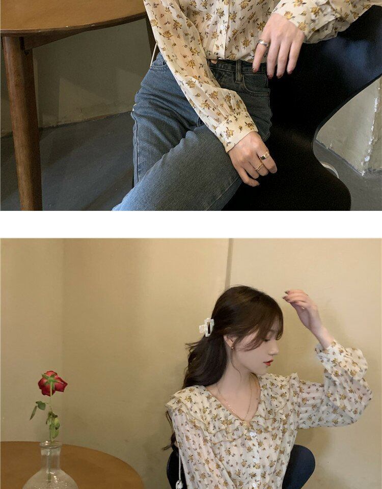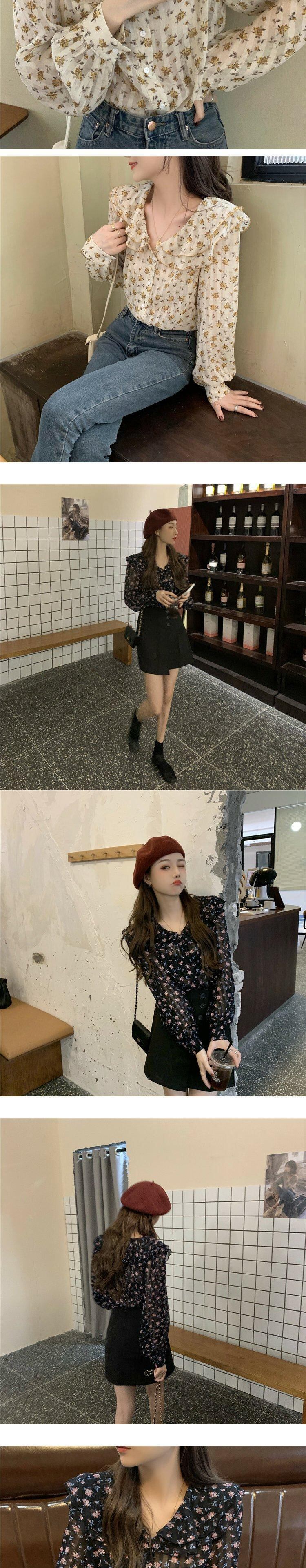 スタンダードフローラルシャツ カラースリーブルーズスタイルトップス ロング レトロ 花柄 萌量不足18205968227