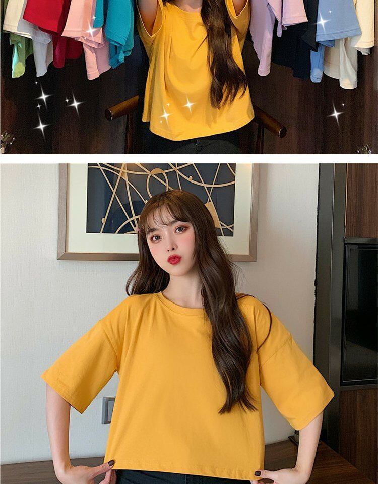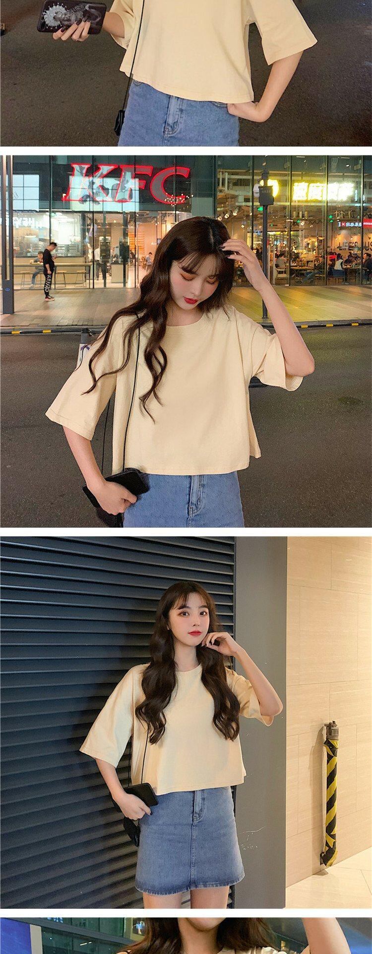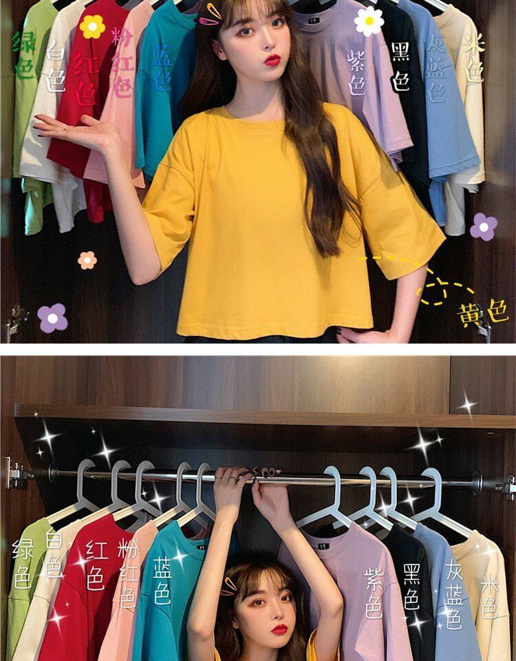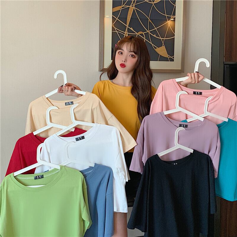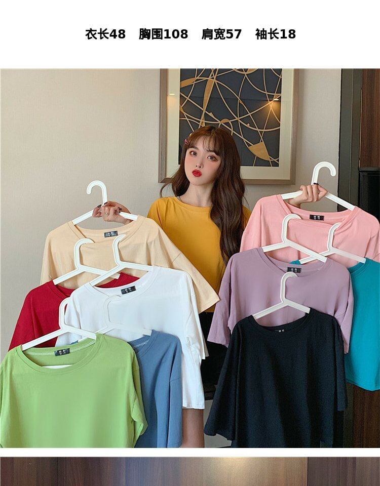 ホワイトTシャツ サマーラウンドネックルーズカラーショート薄手トップス 夏物 Oネック 萌量不足40583957571