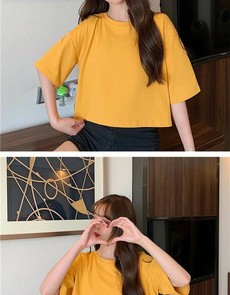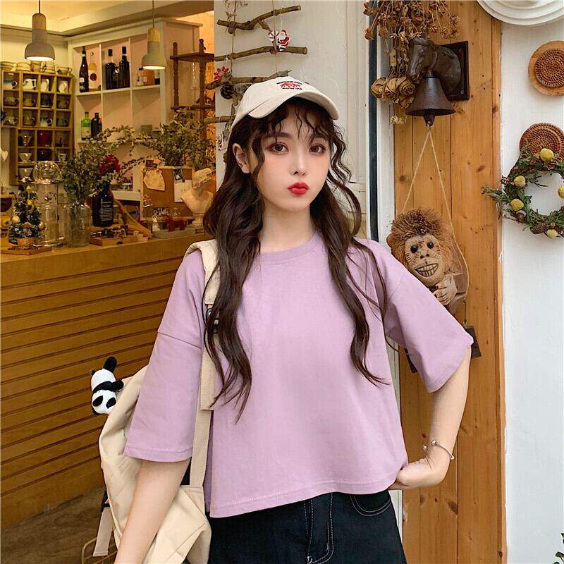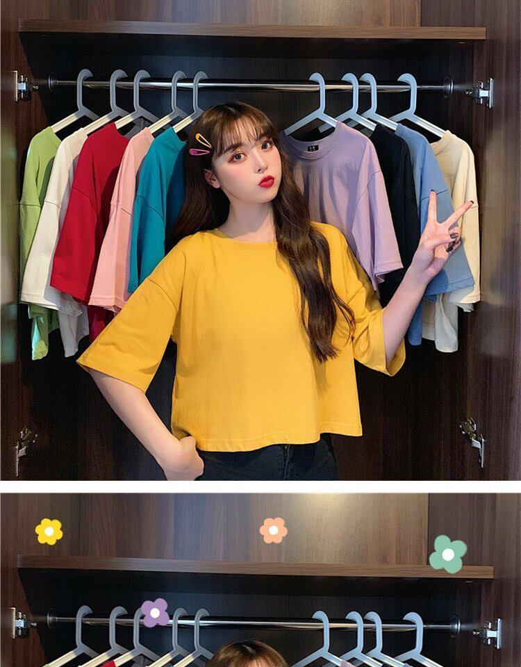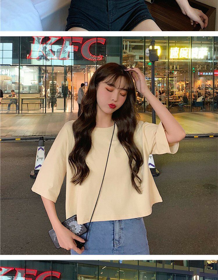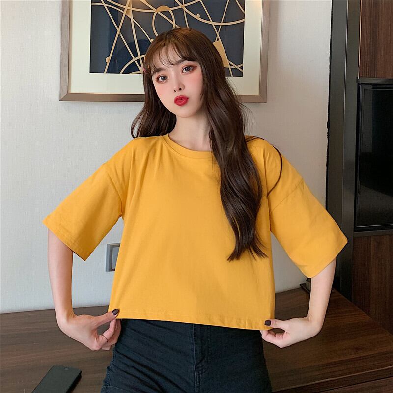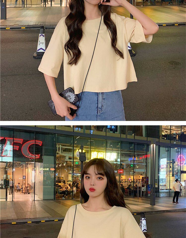 ホワイトTシャツ サマーラウンドネックルーズカラーショート薄手トップス 夏物 Oネック 萌量不足40583957571