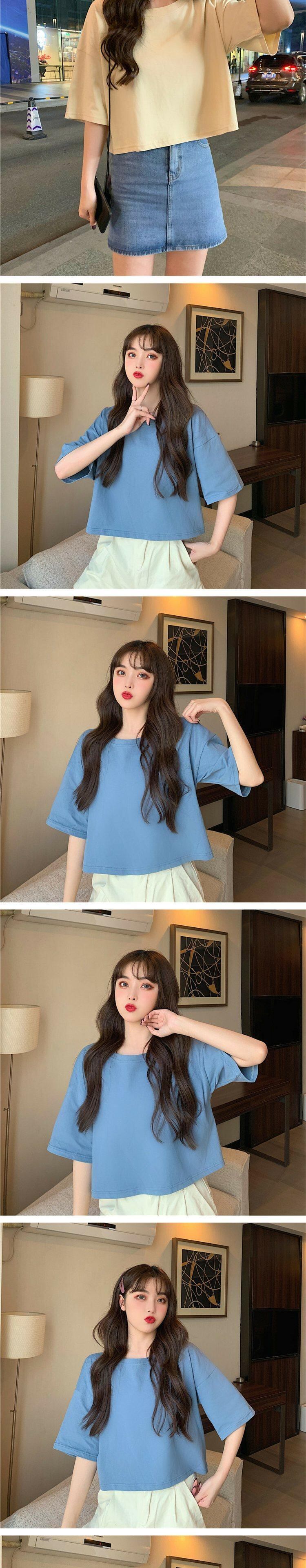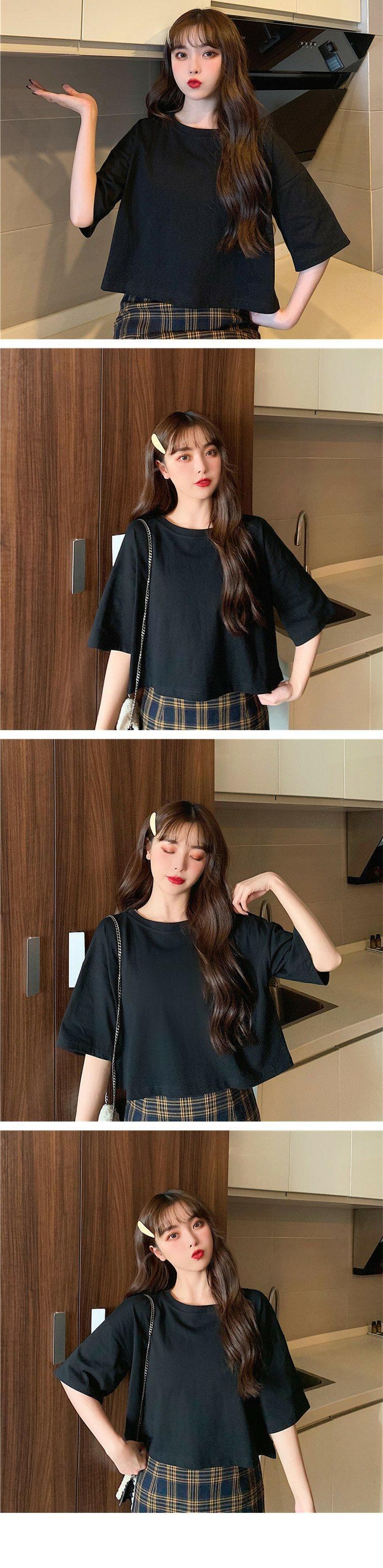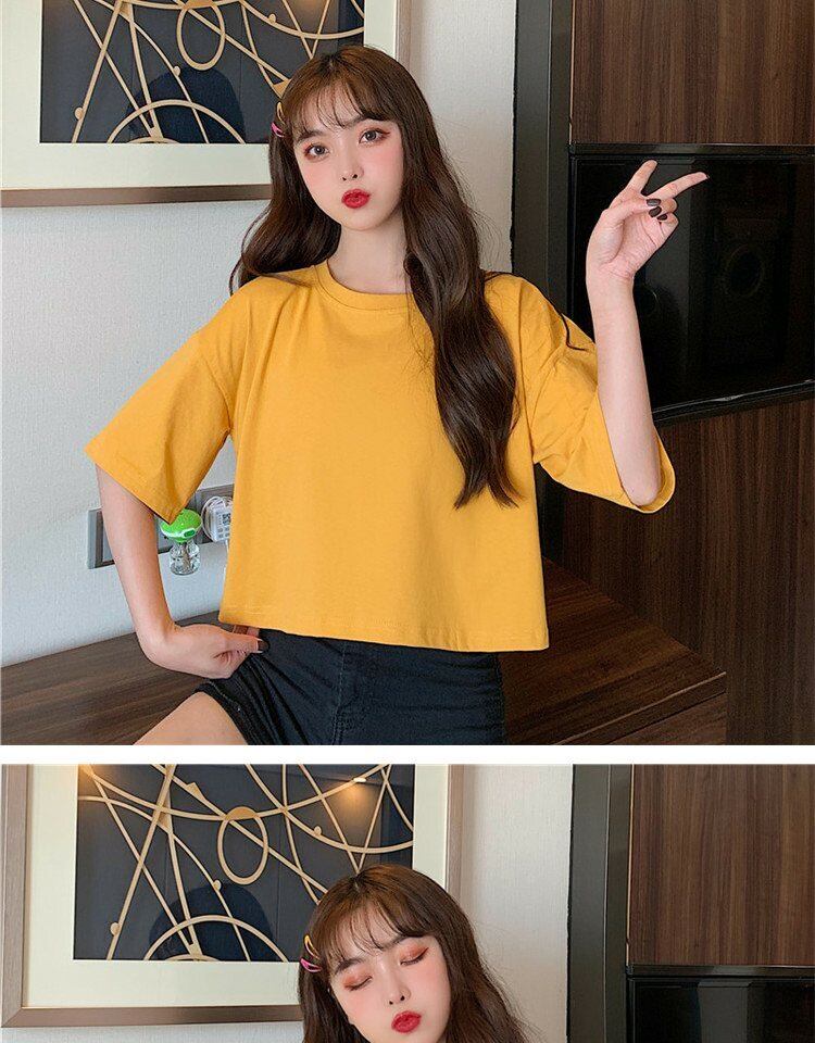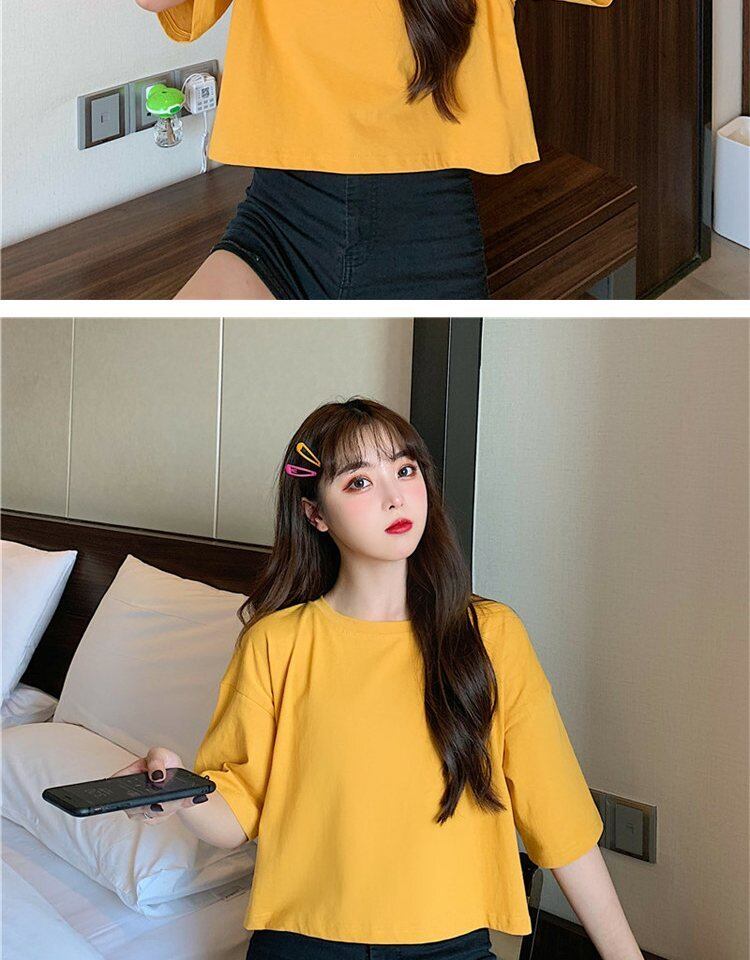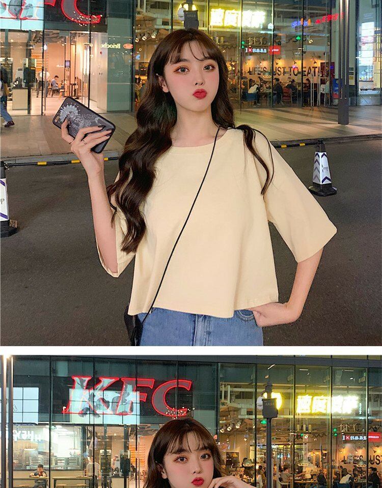 ホワイトTシャツ サマーラウンドネックルーズカラーショート薄手トップス 夏物 Oネック 萌量不足40583957571