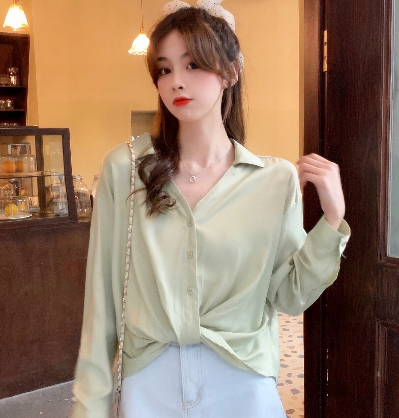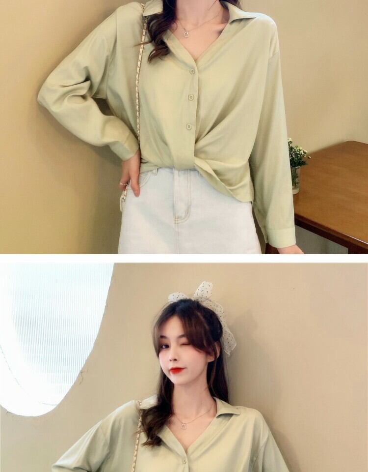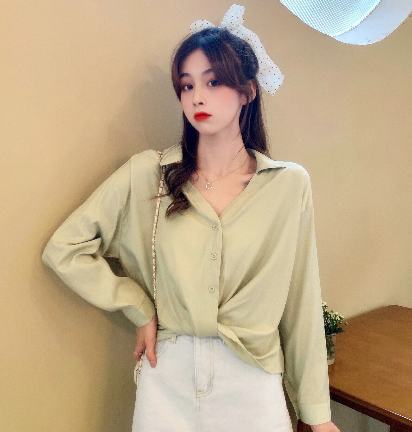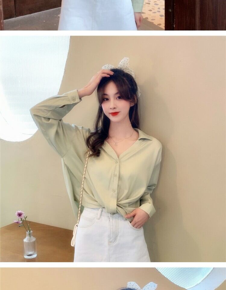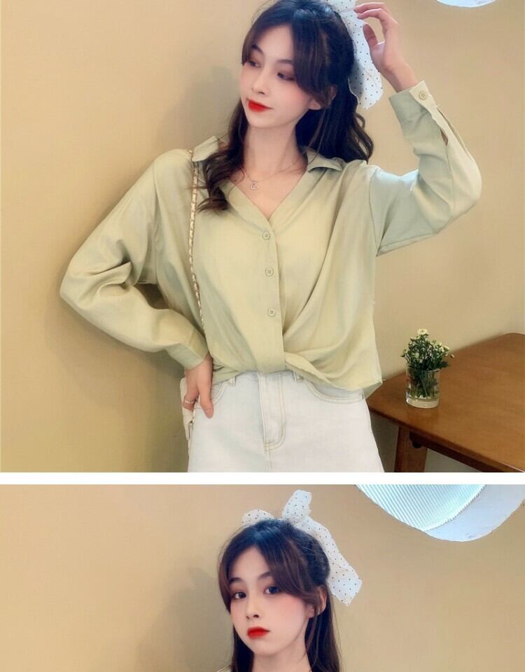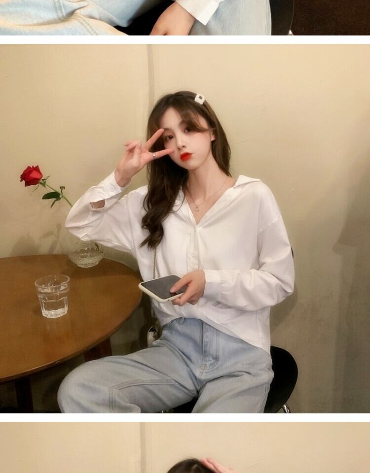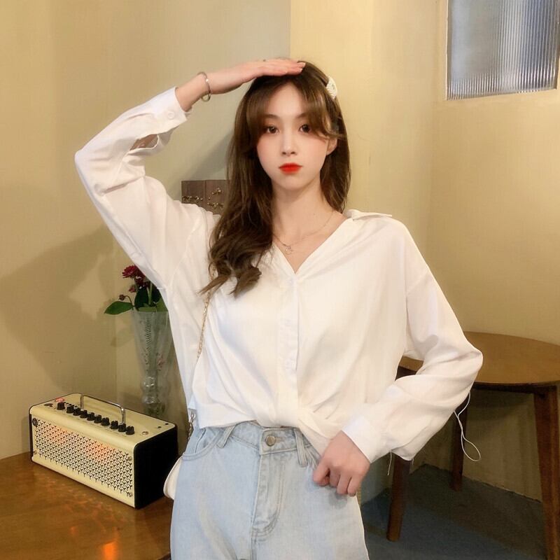 ホワイトシャツVネッククロススプリングスタンダードトップス ロング レトロ 春物 萌量不足39234987916