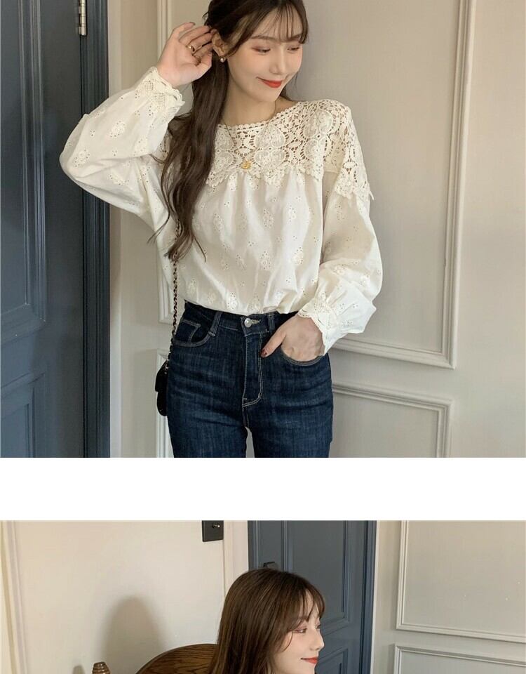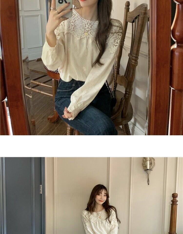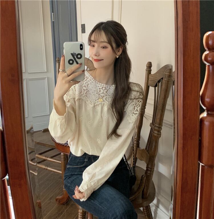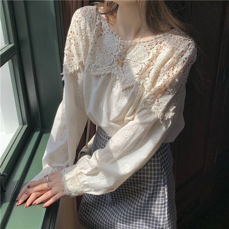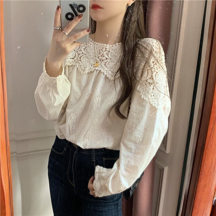 レースシャツ ルーズトップス スプリング ロング 大人ガーリー スウィート キュート カジュアル 春物 ステッチ 萌量不足86317841664