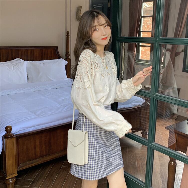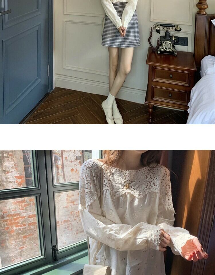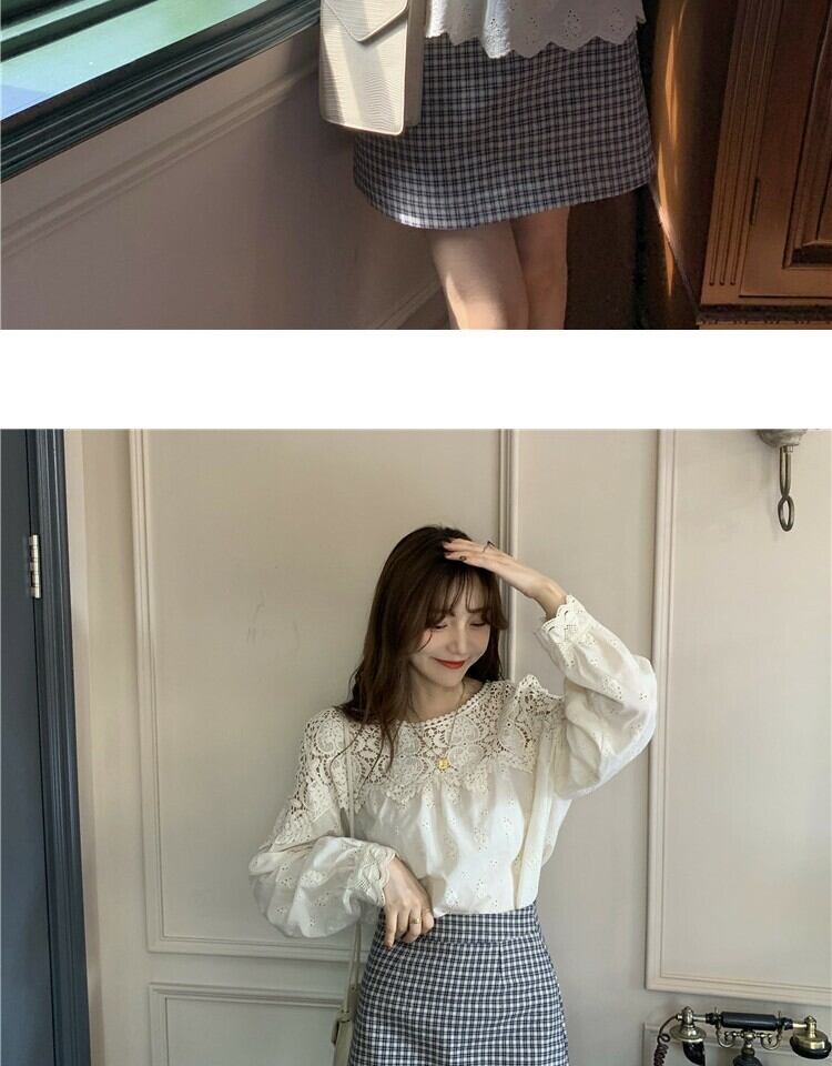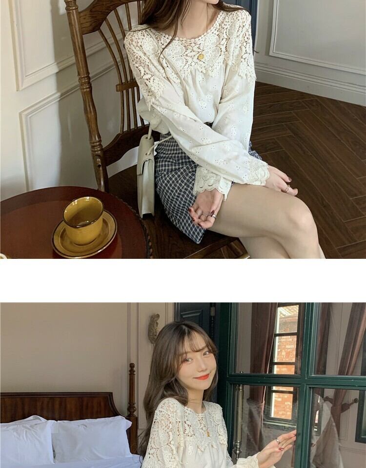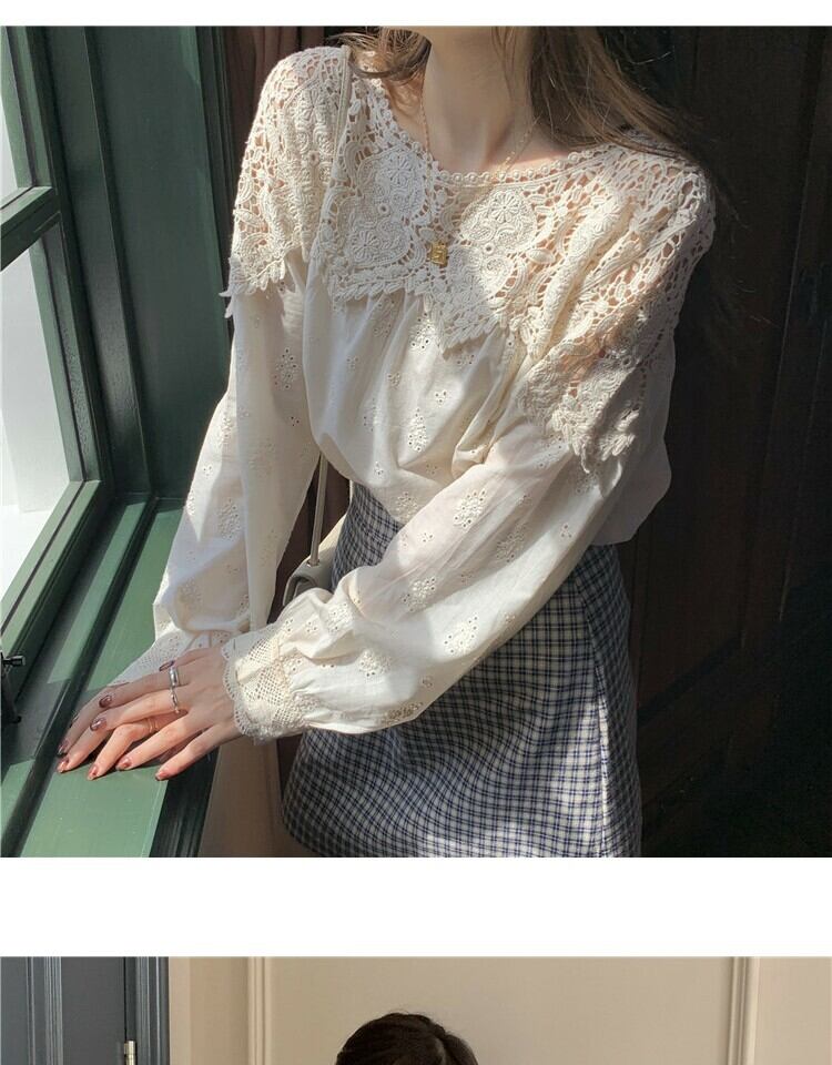 レースシャツ ルーズトップス スプリング ロング 大人ガーリー スウィート キュート カジュアル 春物 ステッチ 萌量不足86317841664
