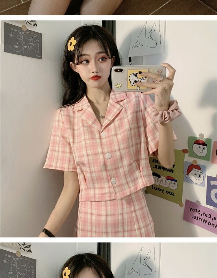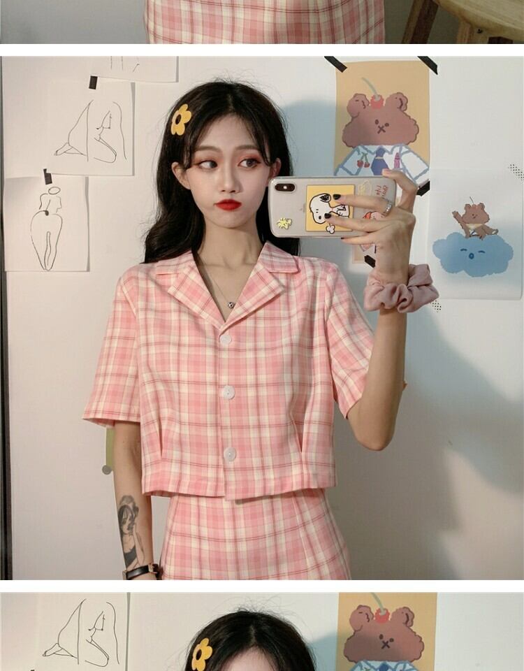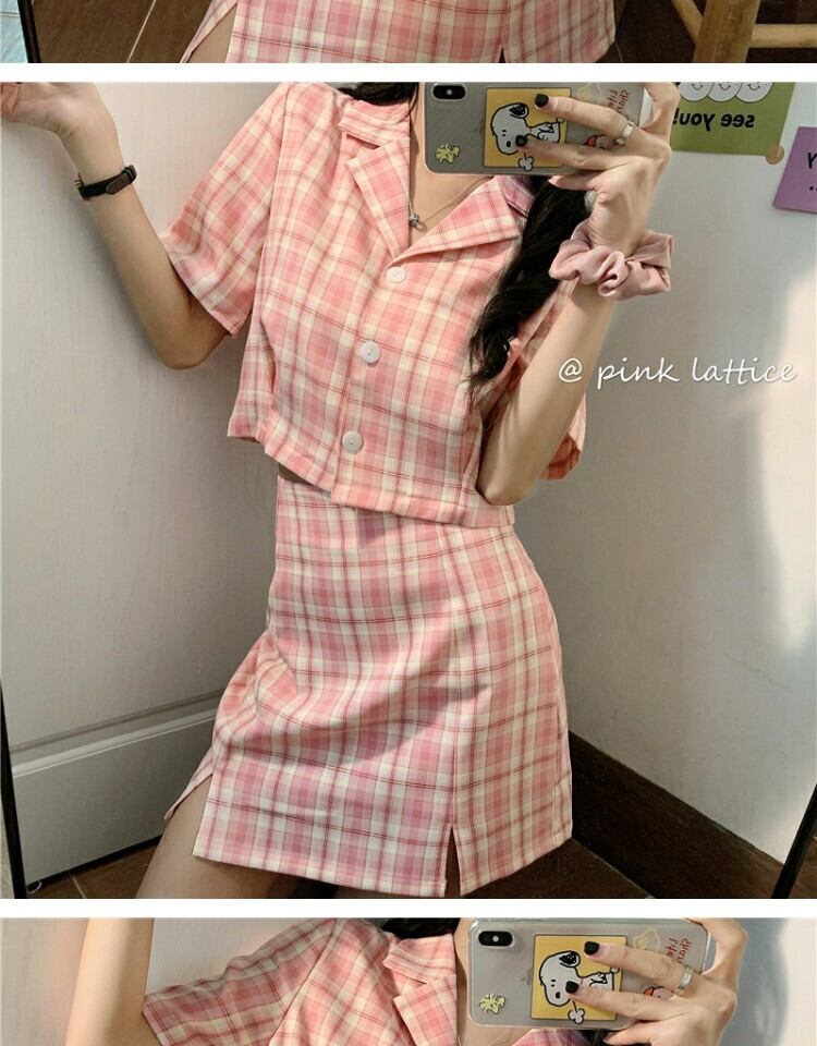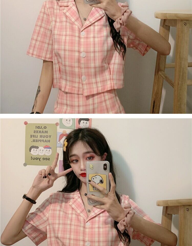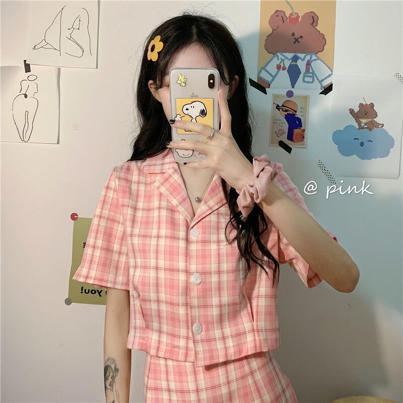 スタイルサマー格子柄シャツ カジュアルショートスカート 大人ガーリー スウィート キュート 夏物 萌量不足75039355769