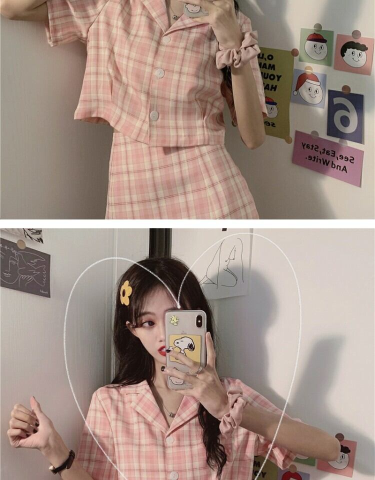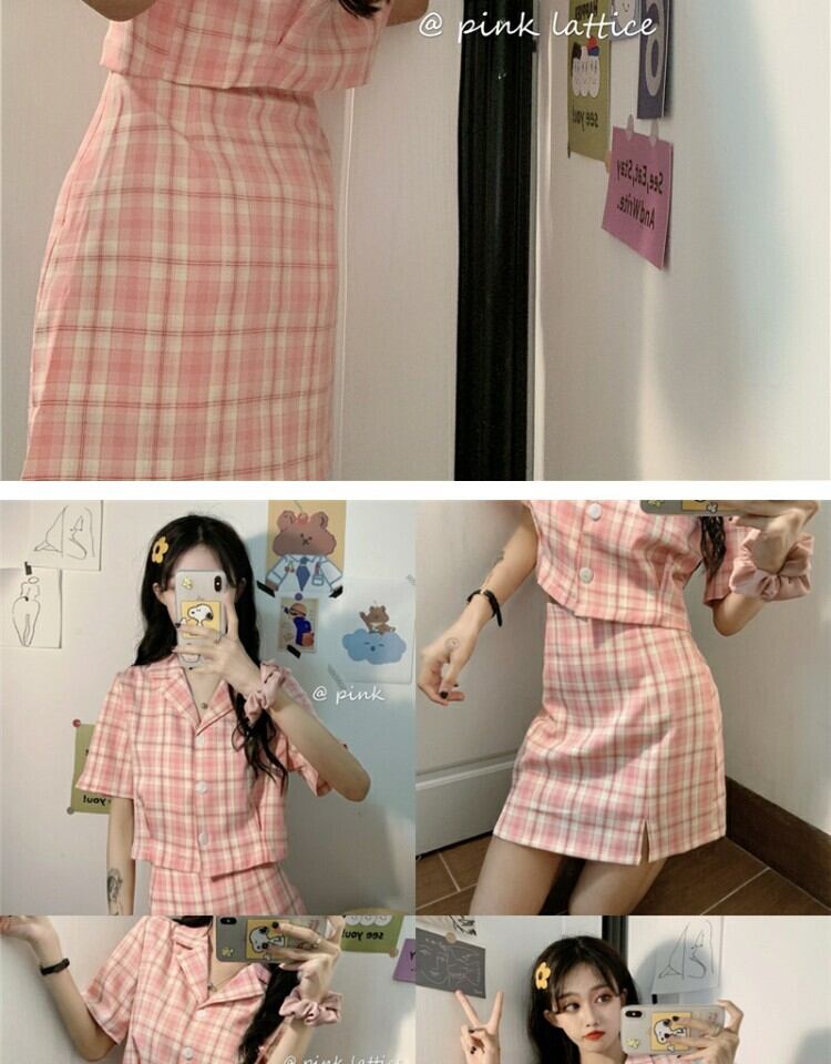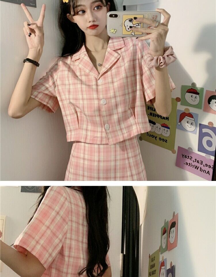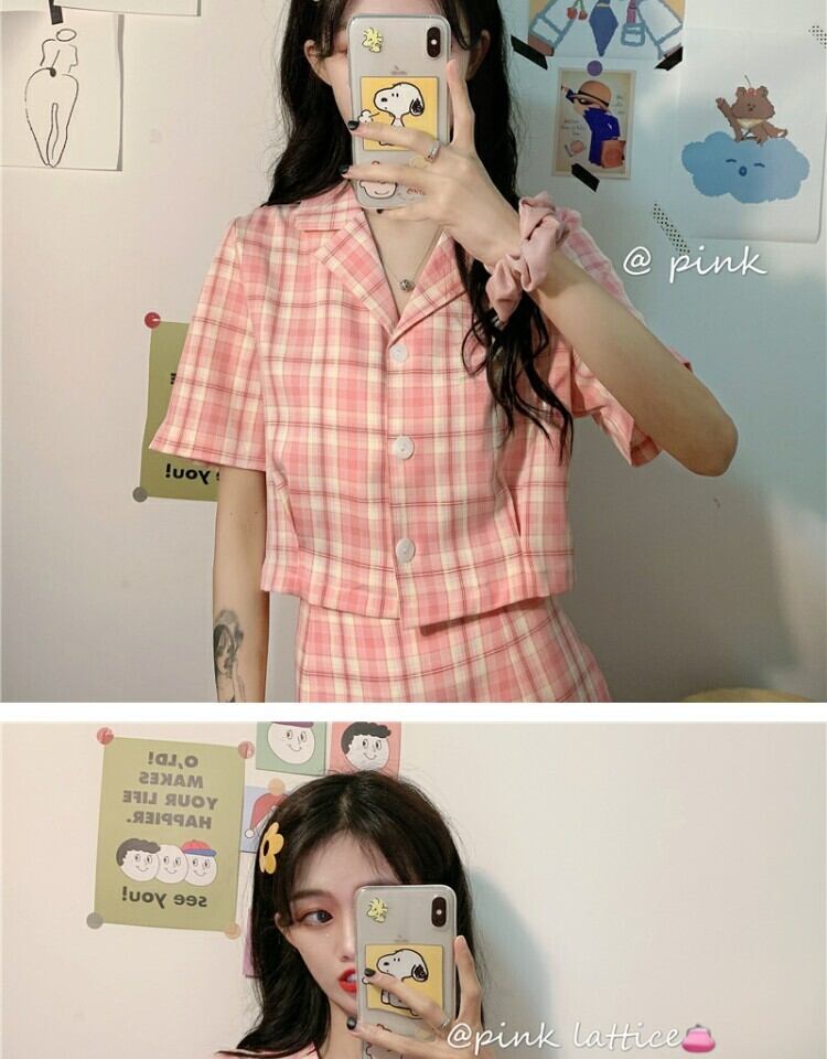 スタイルサマー格子柄シャツ カジュアルショートスカート 大人ガーリー スウィート キュート 夏物 萌量不足75039355769