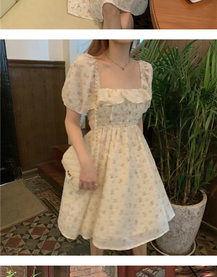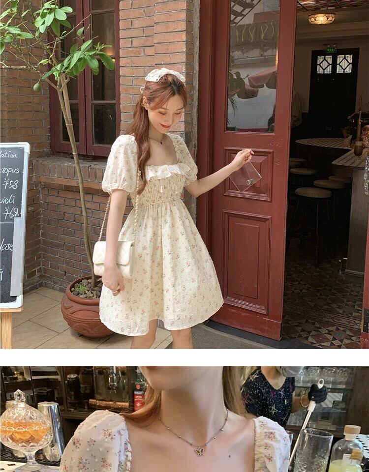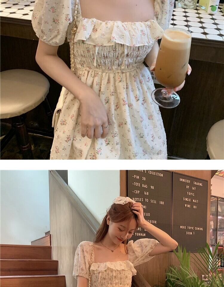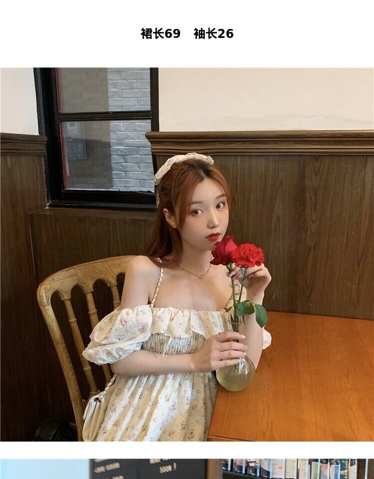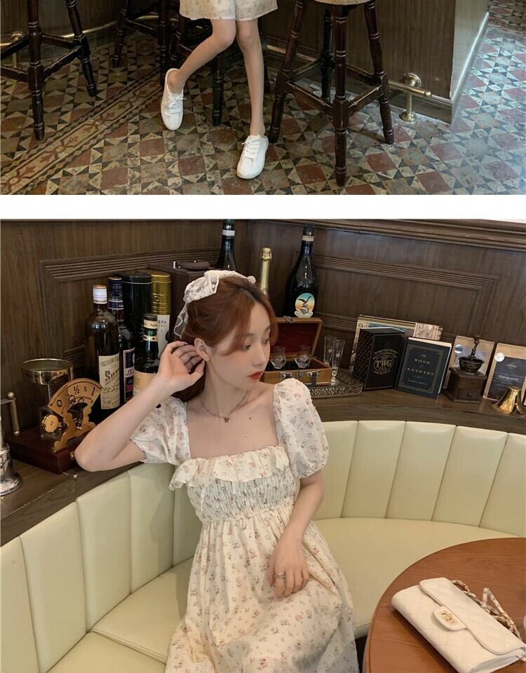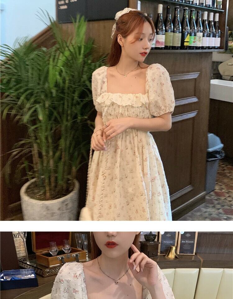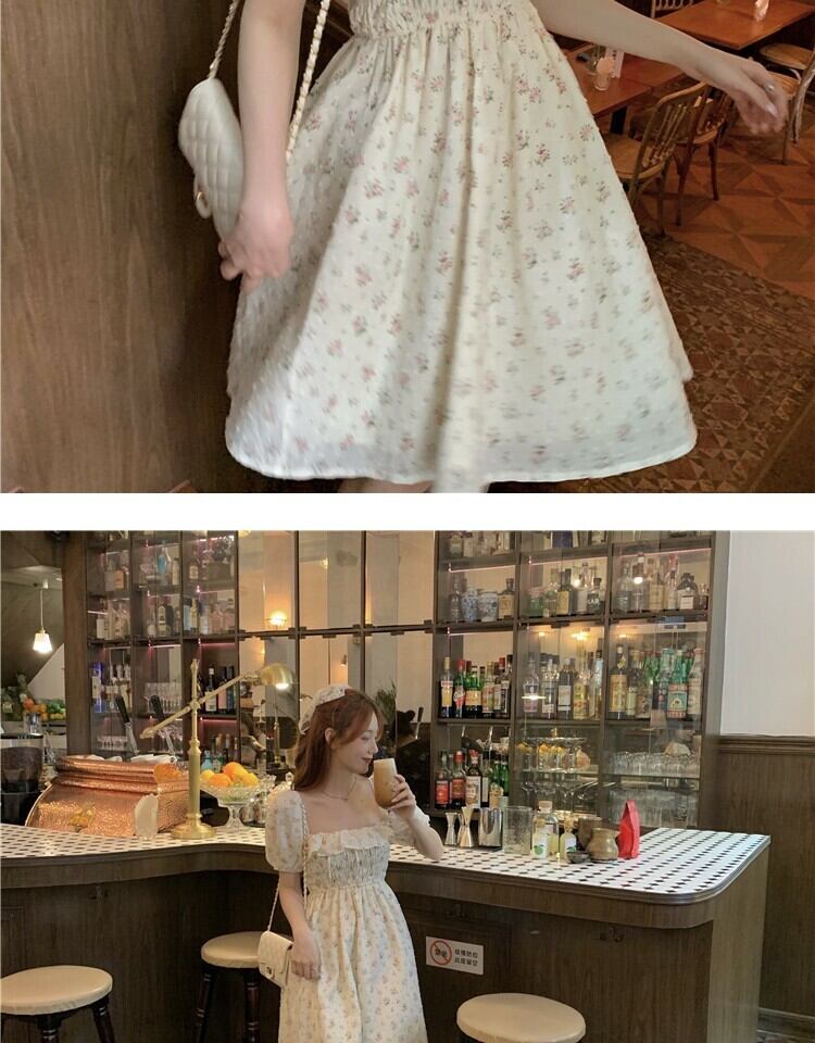 フローラルドレス サマースタイルスリーブウェストスリムスカート 大人ガーリー スウィート キュート カジュアル 夏物 花柄 スクウェア 萌量不足78796709274