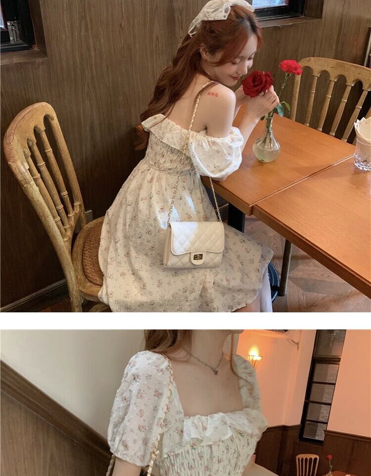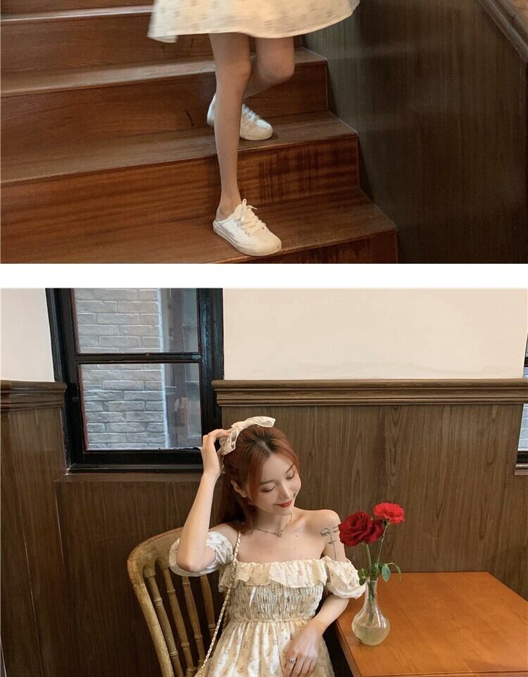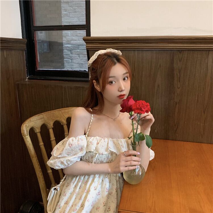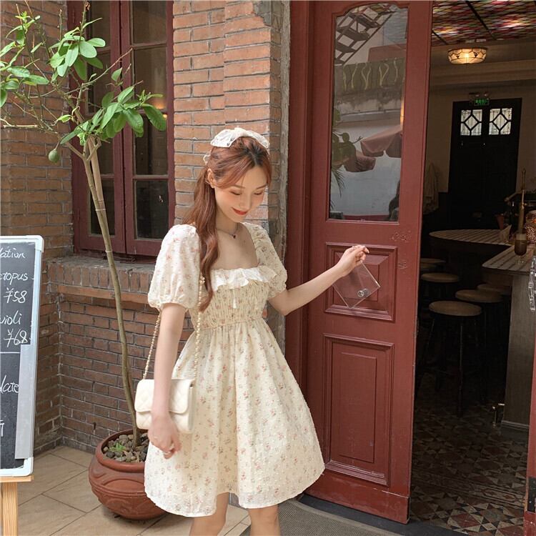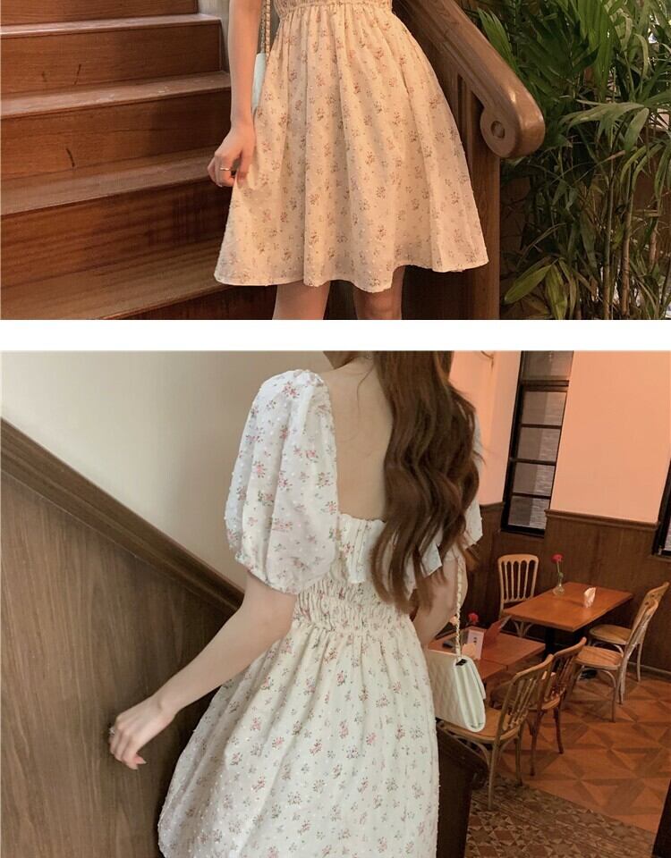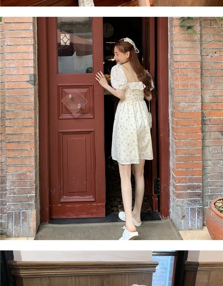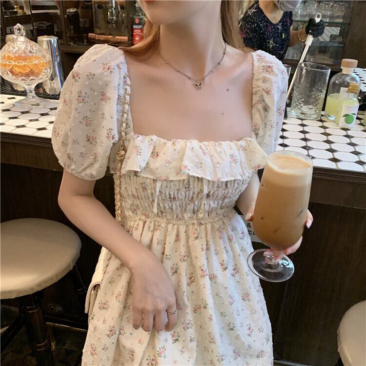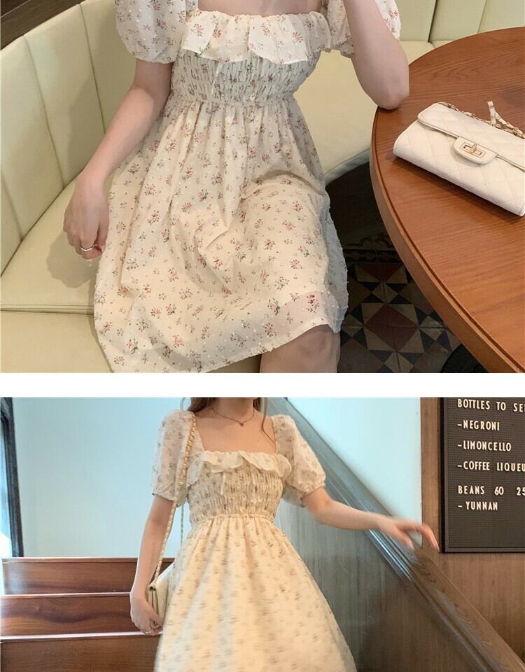フローラルドレス サマースタイルスリーブウェストスリムスカート 大人ガーリー スウィート キュート カジュアル 夏物 花柄 スクウェア 萌量不足78796709274
