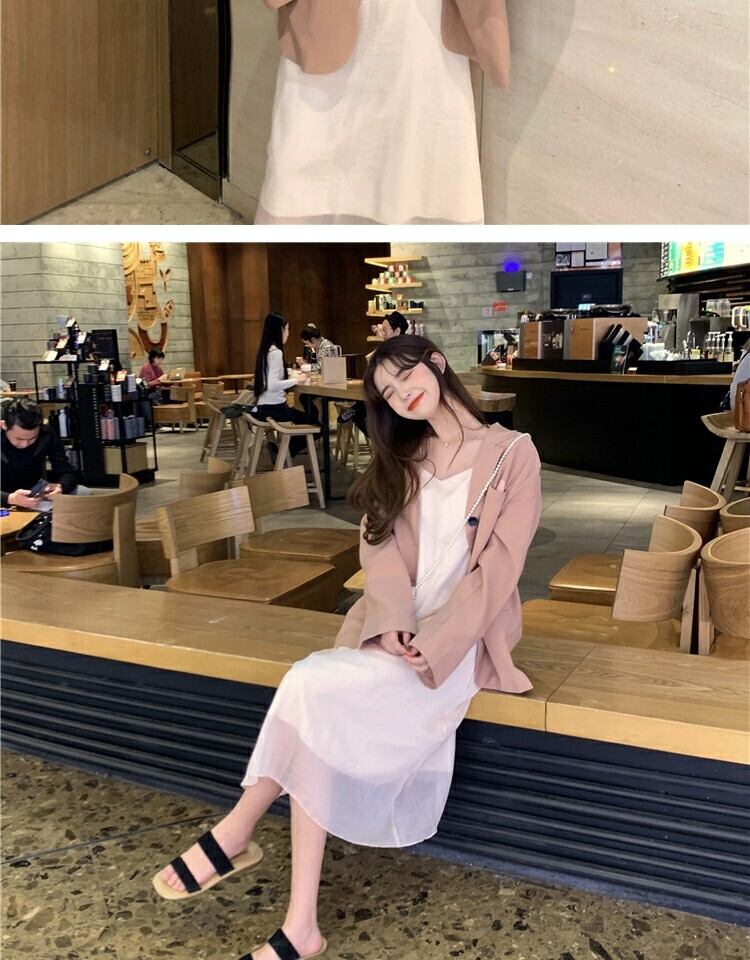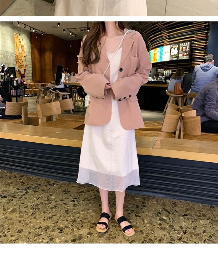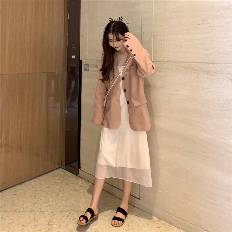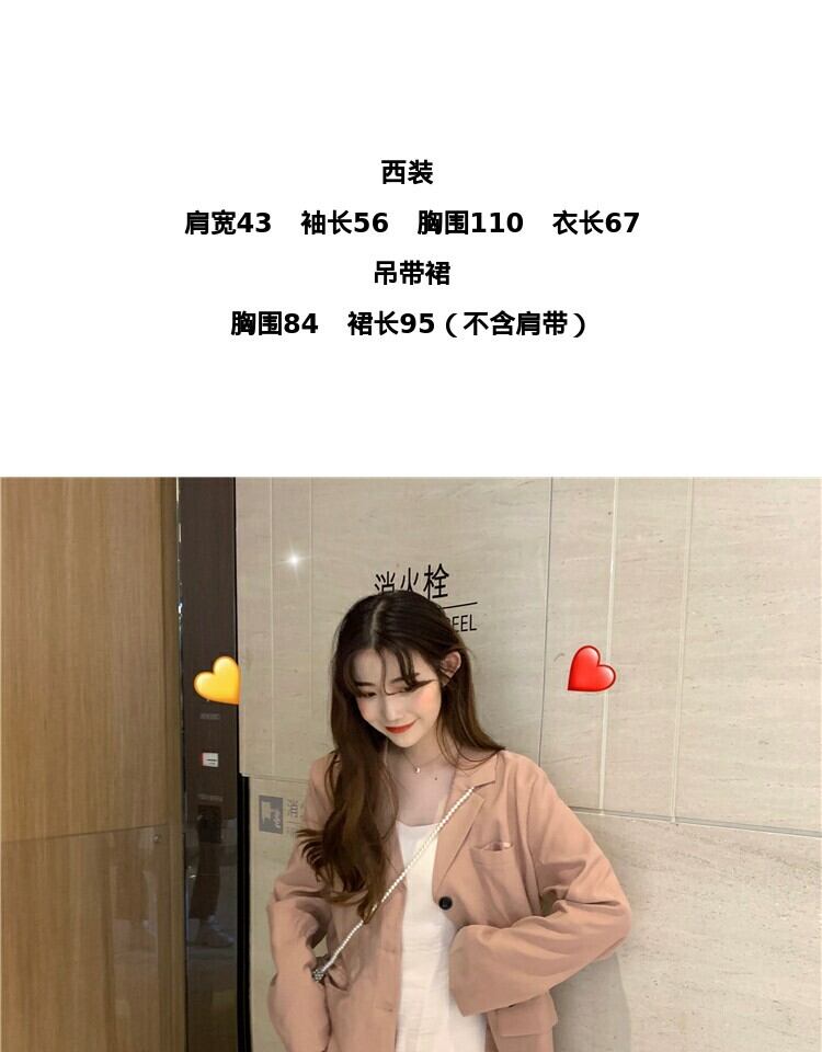 色:シングルピンクのスーツジャケット,スリングスカート(調節可能なショルダーストラップ)ワンピース