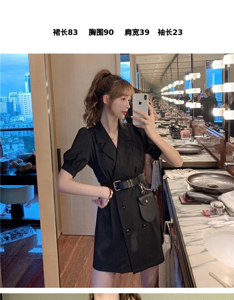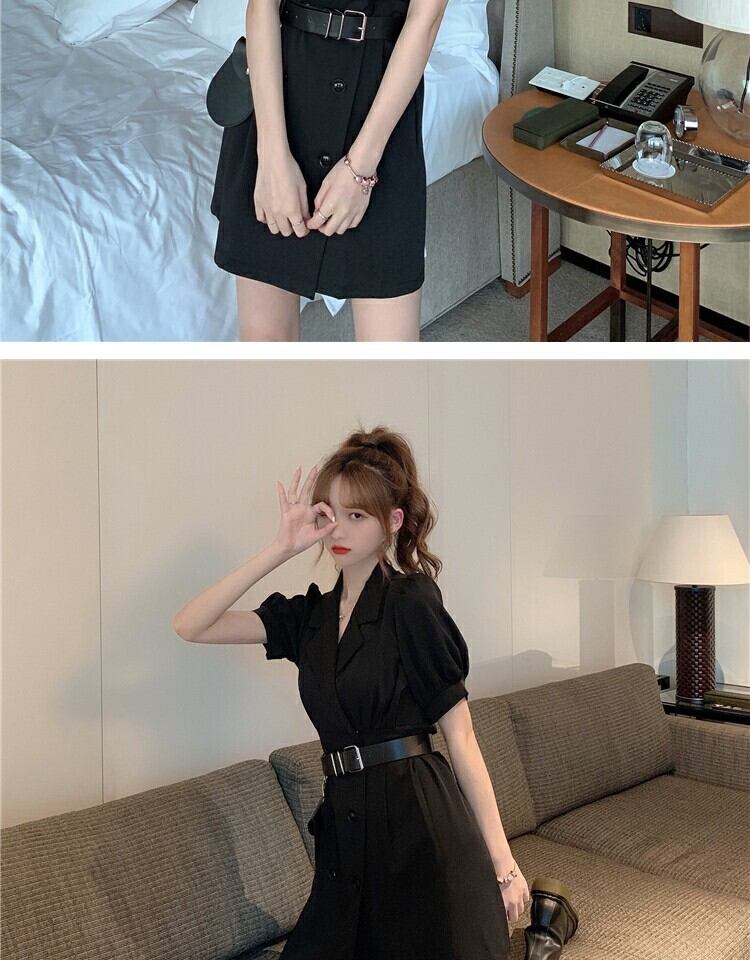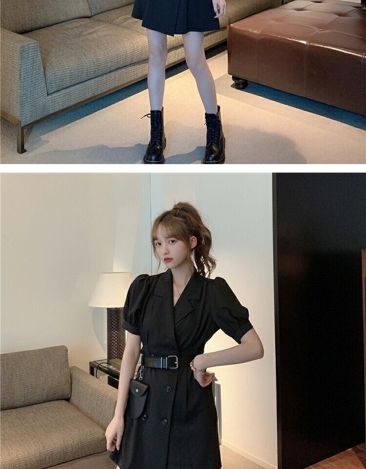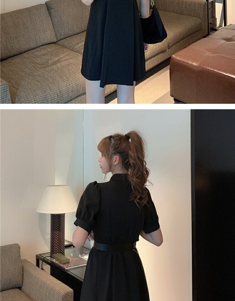 ドレス スプリングスタイルブラックカラースリーブスカート 春物 萌量不足64287315225