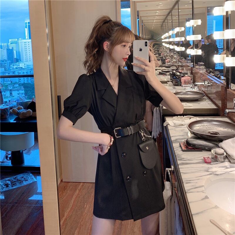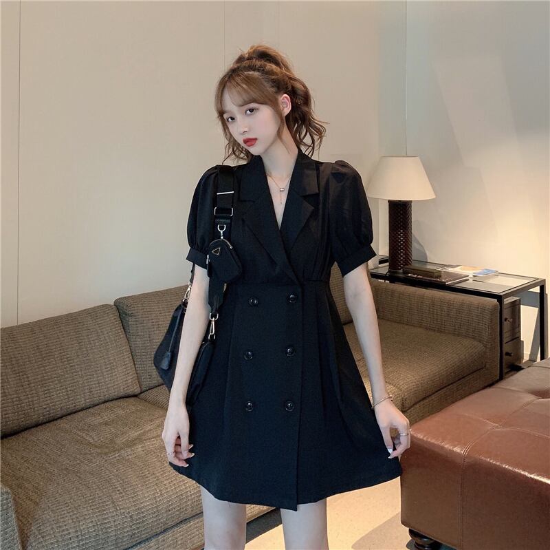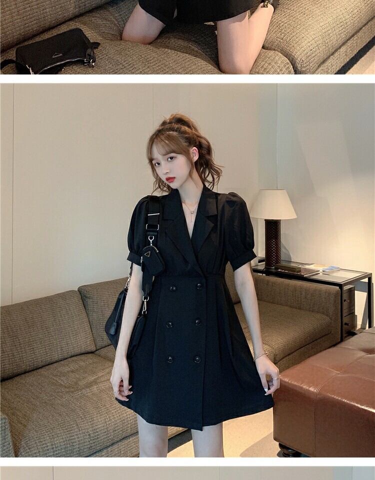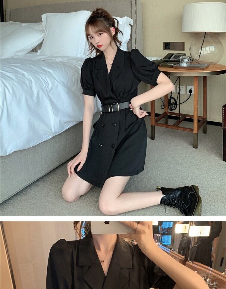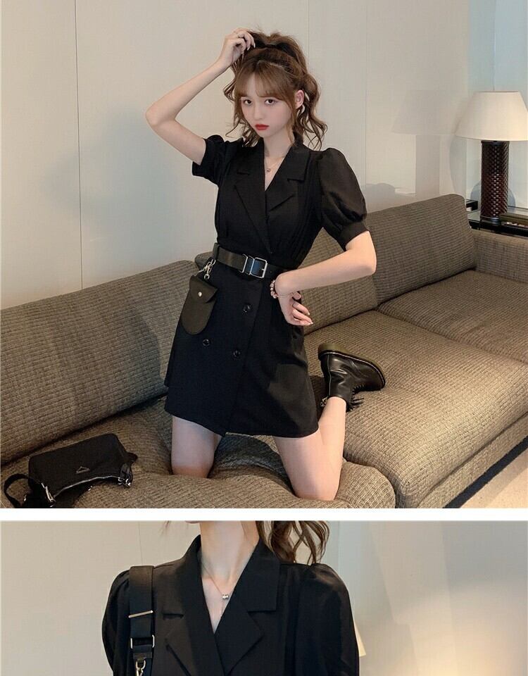 ドレス スプリングスタイルブラックカラースリーブスカート 春物 萌量不足64287315225
