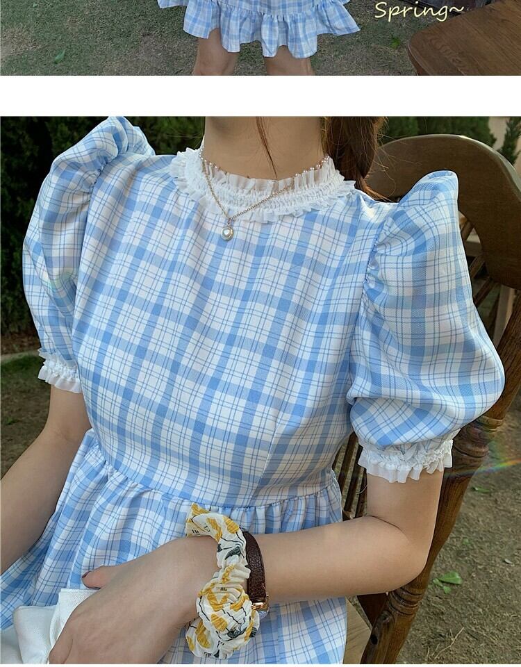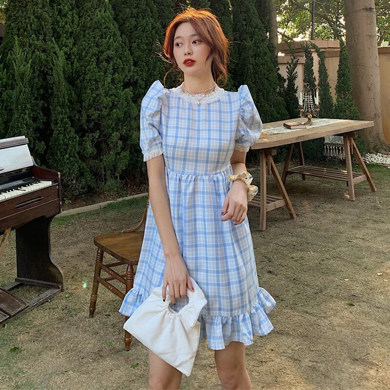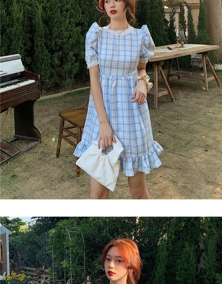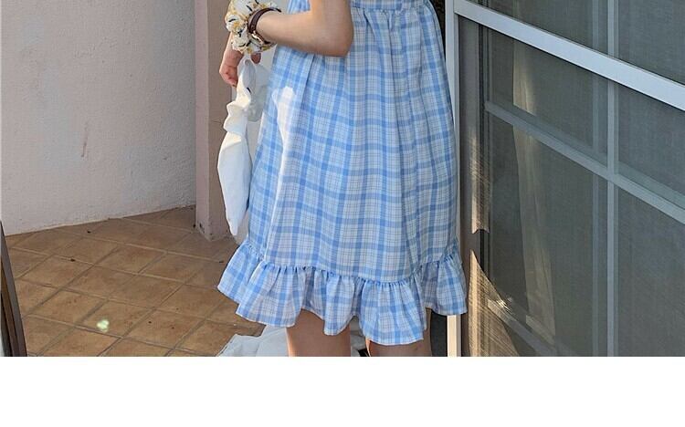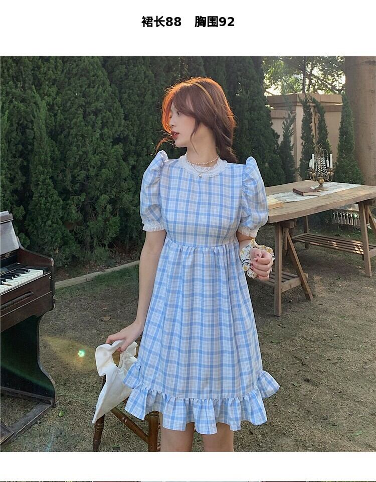 サマースタイルレース格子柄ドレス ウェスト薄手スカート 夏物 ステッチ 萌量不足31305266713