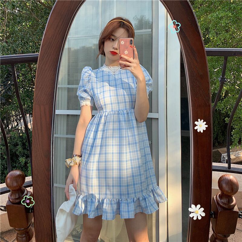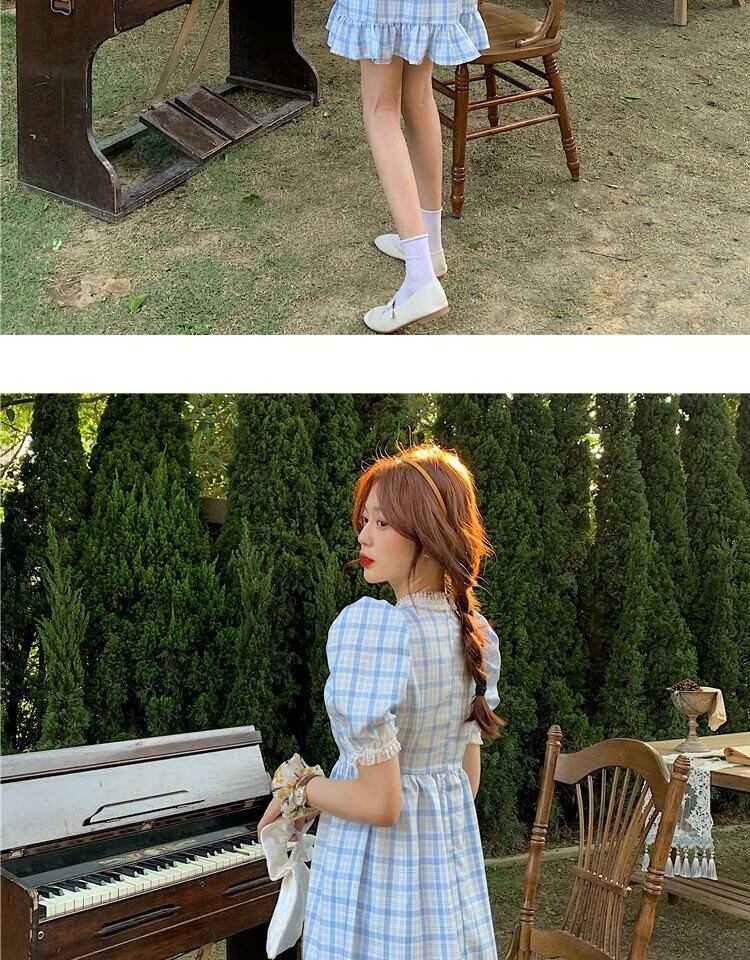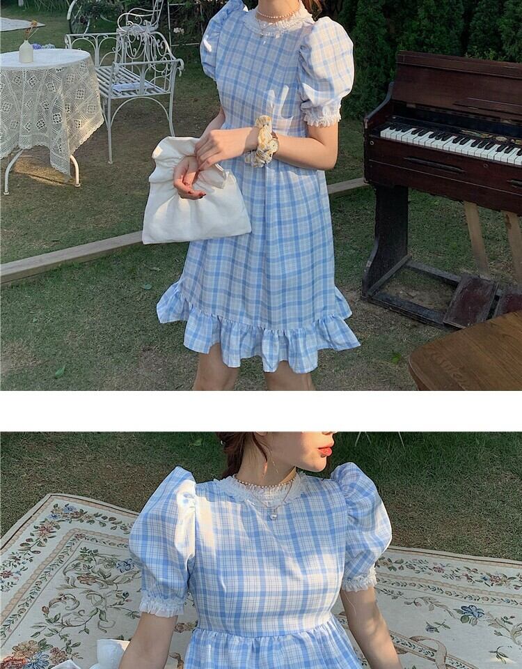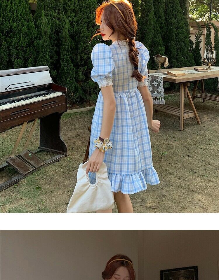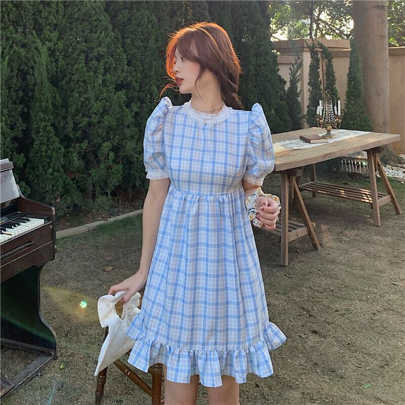 サマースタイルレース格子柄ドレス ウェスト薄手スカート 夏物 ステッチ 萌量不足31305266713