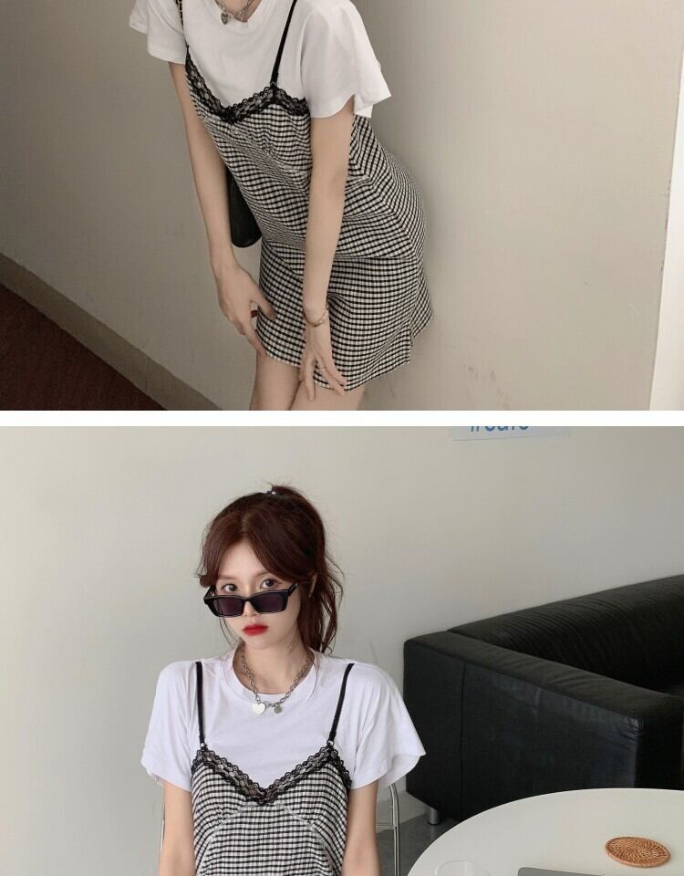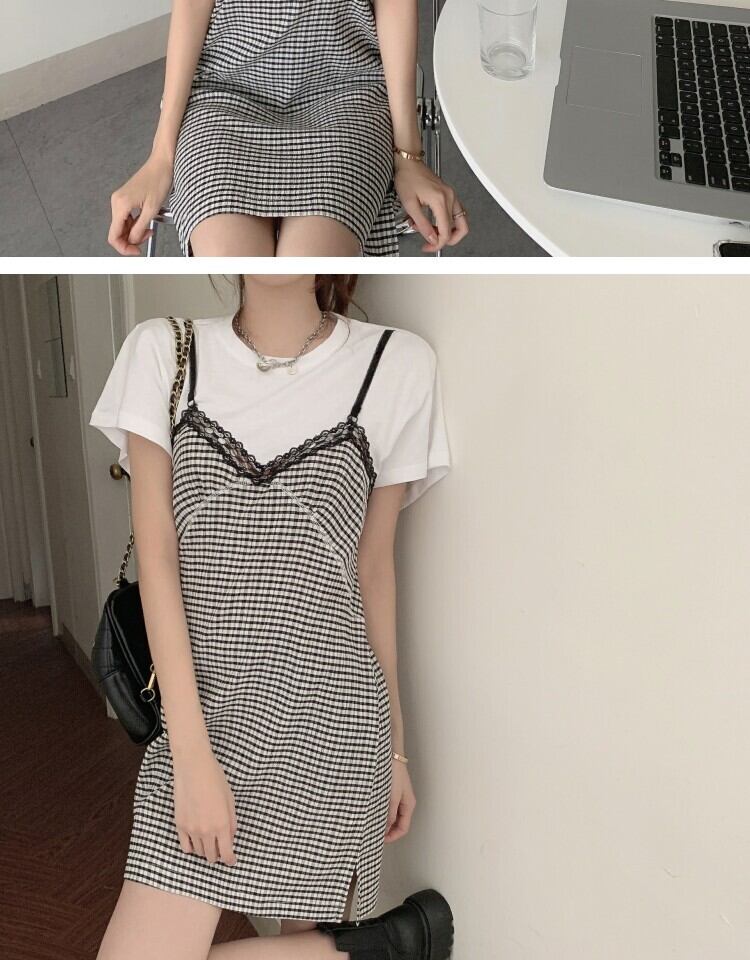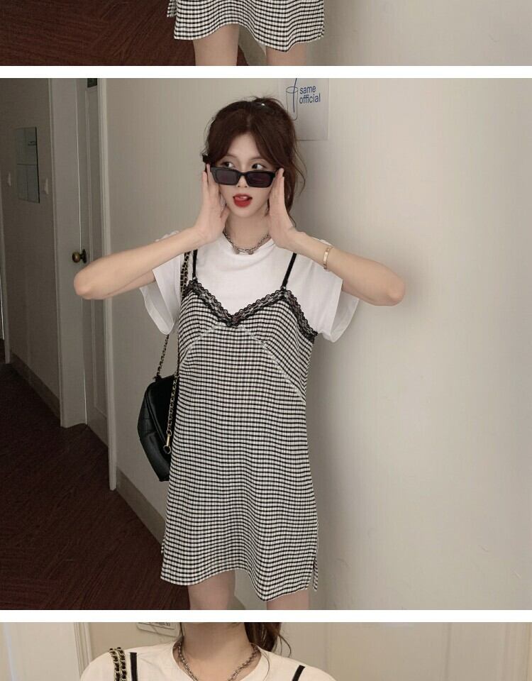 格子柄ドレス レディーススプリングウェストスタンダードスタイルスカート レトロ 春物 萌量不足65907016079