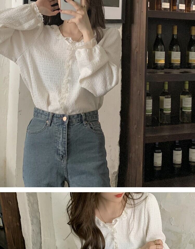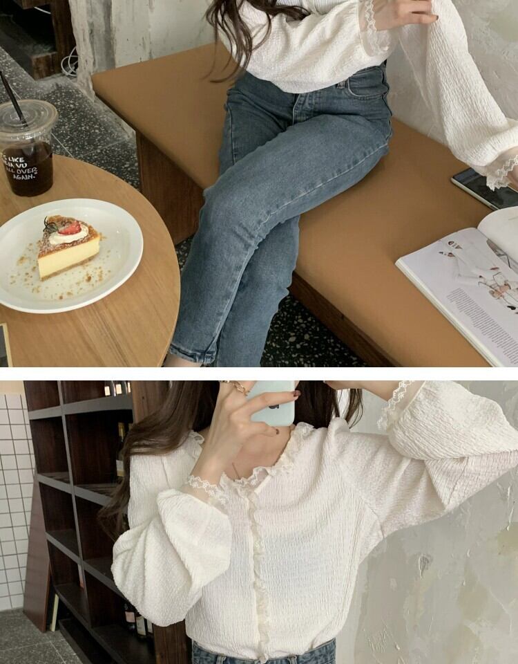 レースシャツ ルーズ薄手ブラウス スプリング ロング 大人ガーリー スウィート キュート カジュアル 春物 ステッチ 萌量不足94283467940