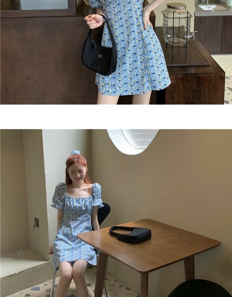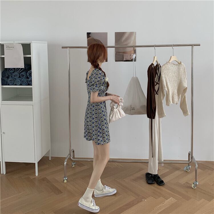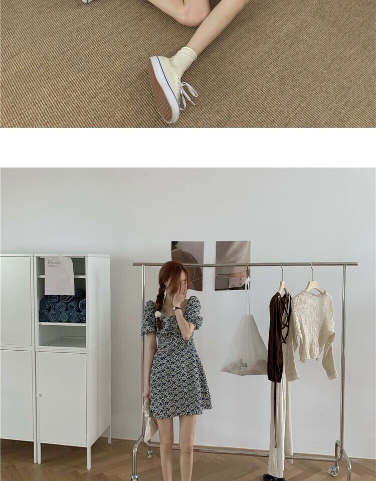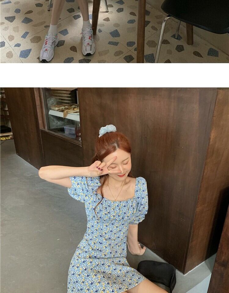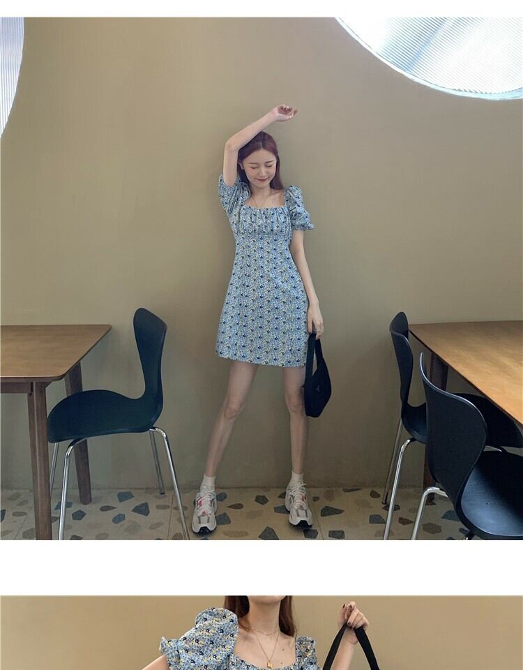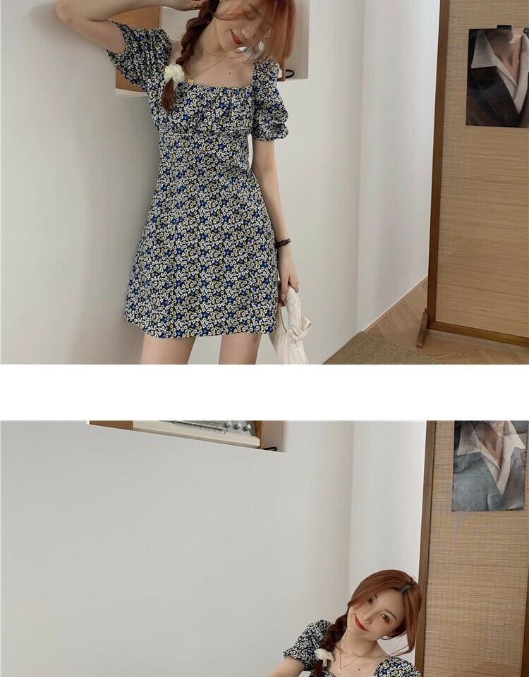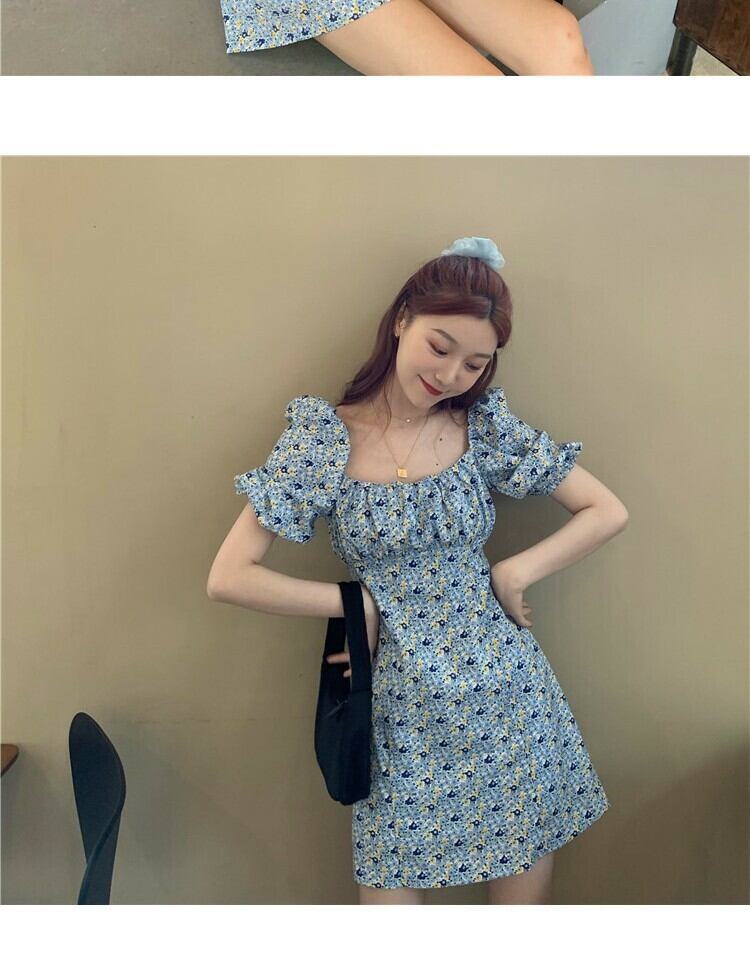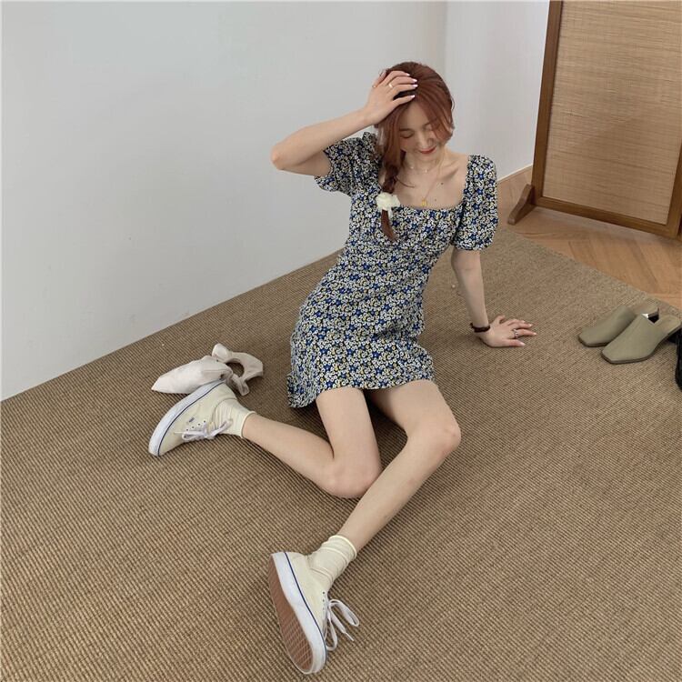 フローラルドレス サマースタイルカラースリーブ半袖ウェスト薄手スカート ショート ハーフスリーブ 夏物 花柄 スクウェア 萌量不足88961234975