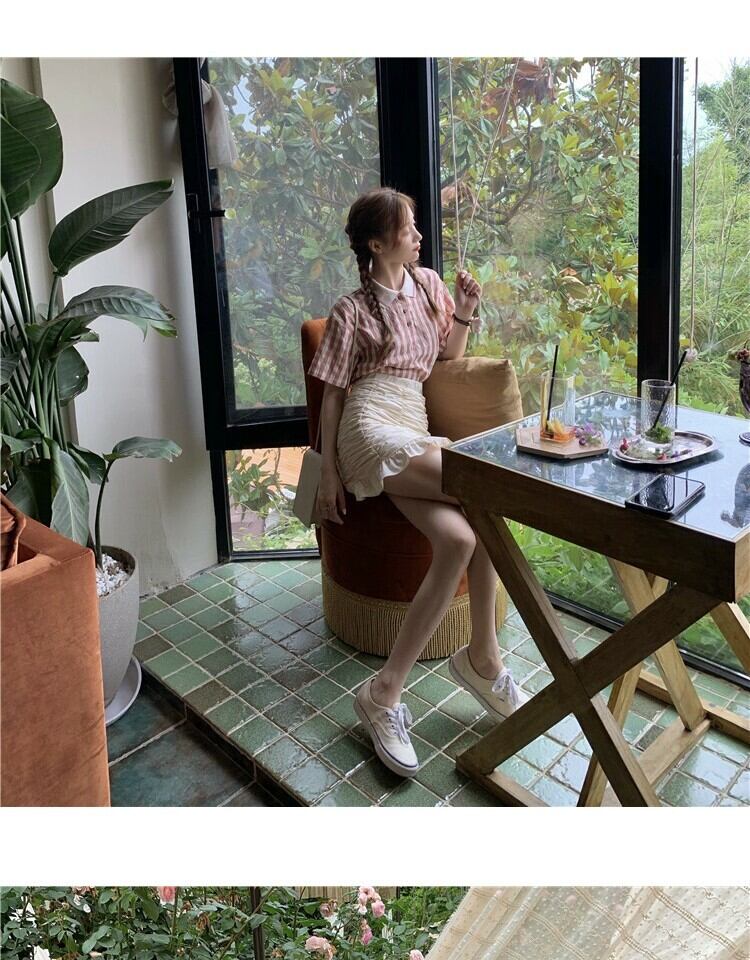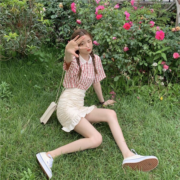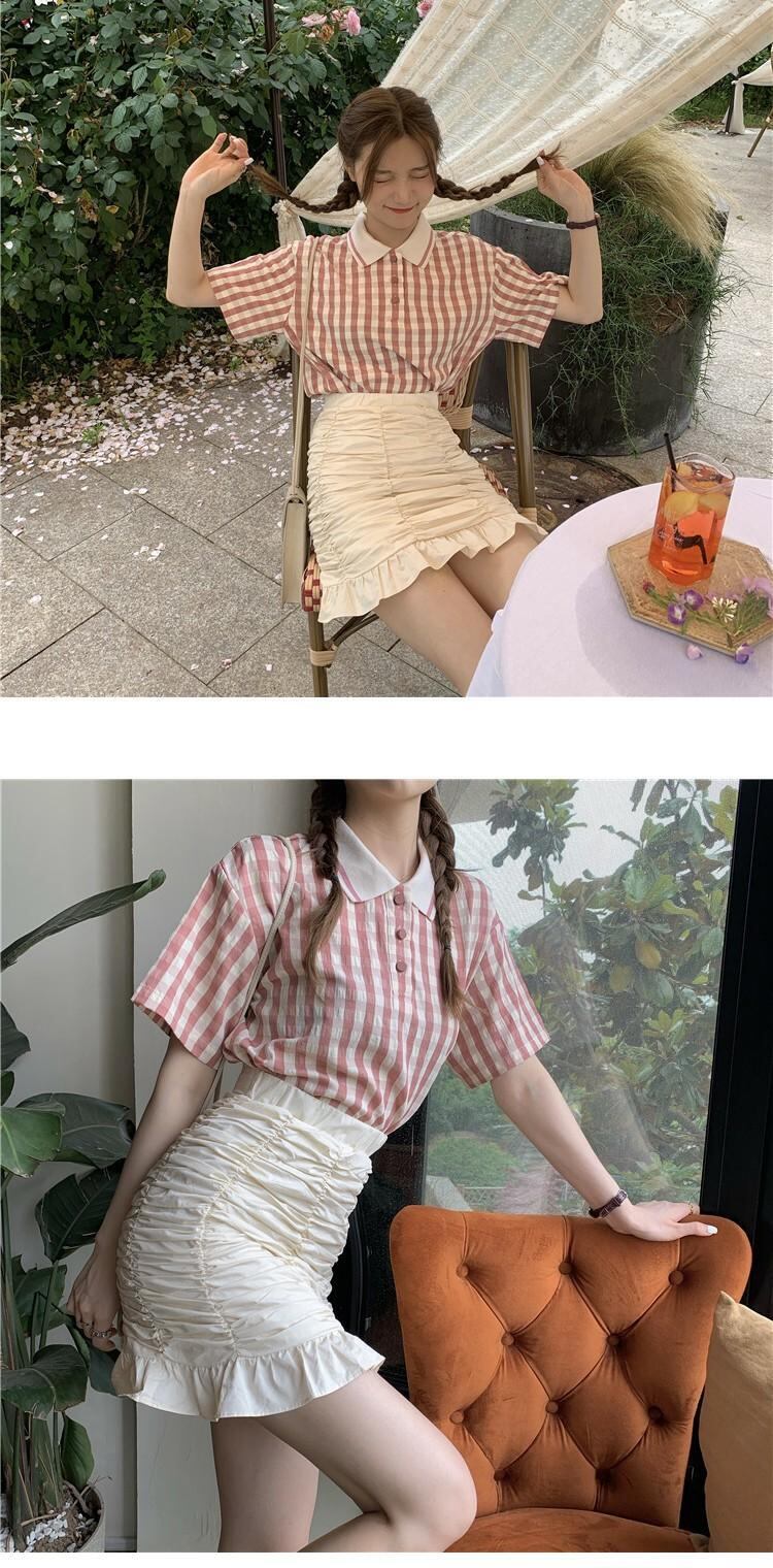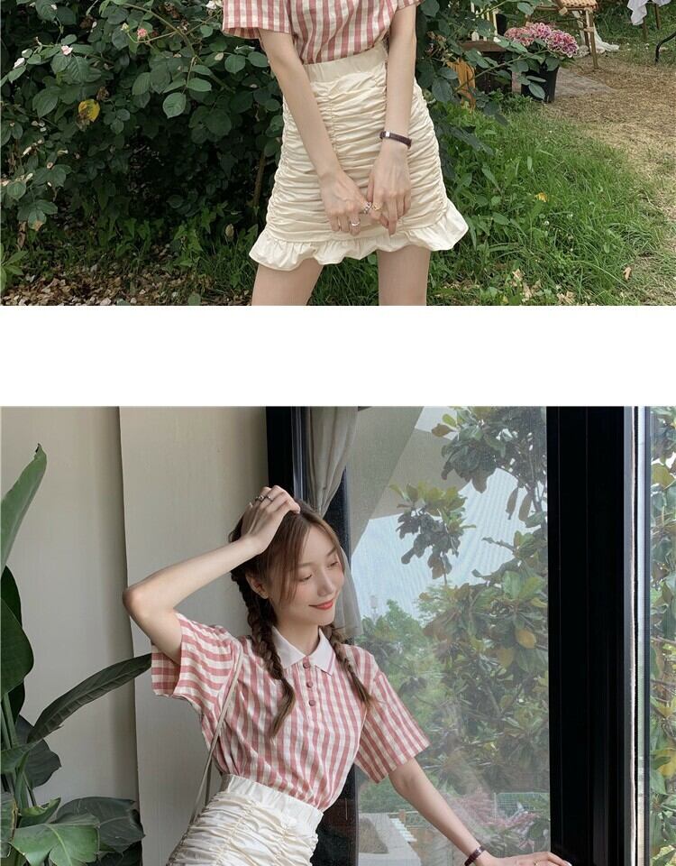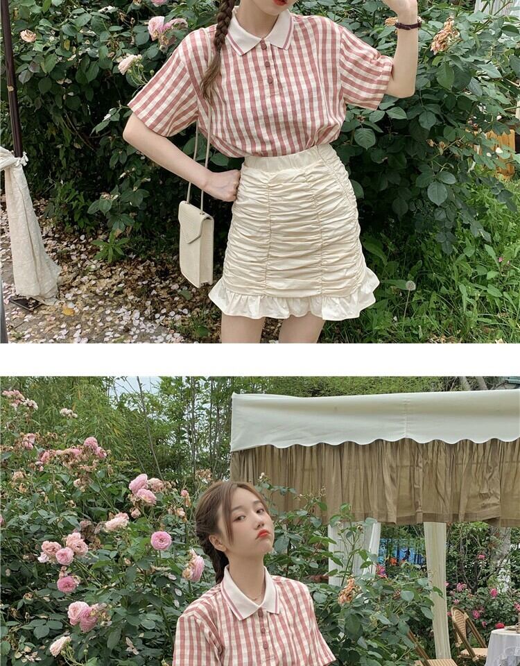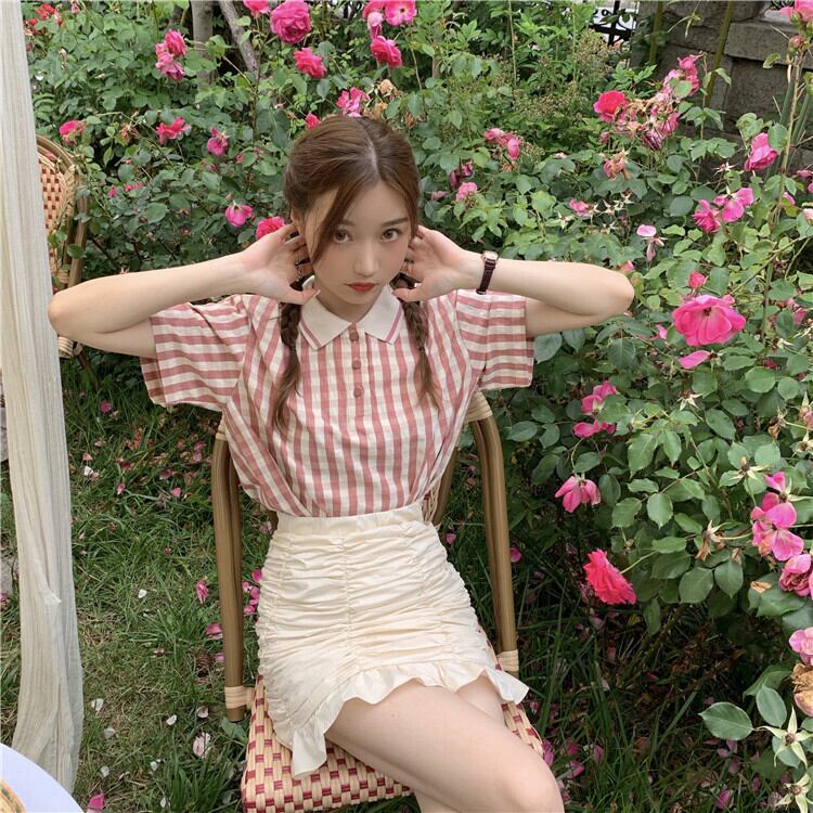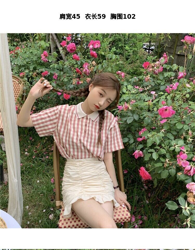 格子柄Tシャツ サマースタイルトップス ピンク 大人ガーリー スウィート キュート カジュアル 夏物 萌量不足97504418835