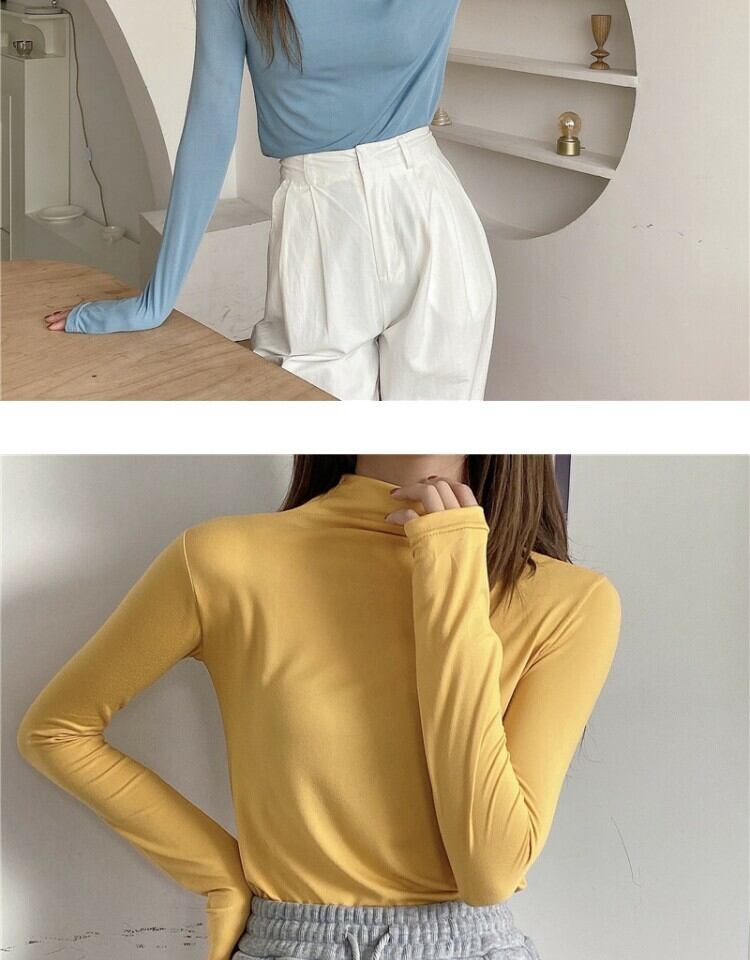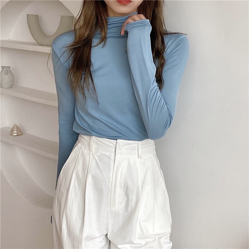 シャツ スプリングソリッド カラーTシャツ スリムトップス ロング 春物 ソリッドカラー 萌量不足47017648482