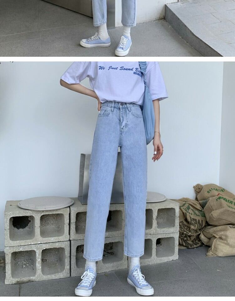 スタンダードパンツ スタイルスプリングスリムハイウェストウェストブルージーンズ レトロ 春物 萌量不足44625818388