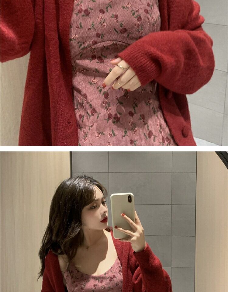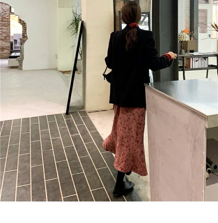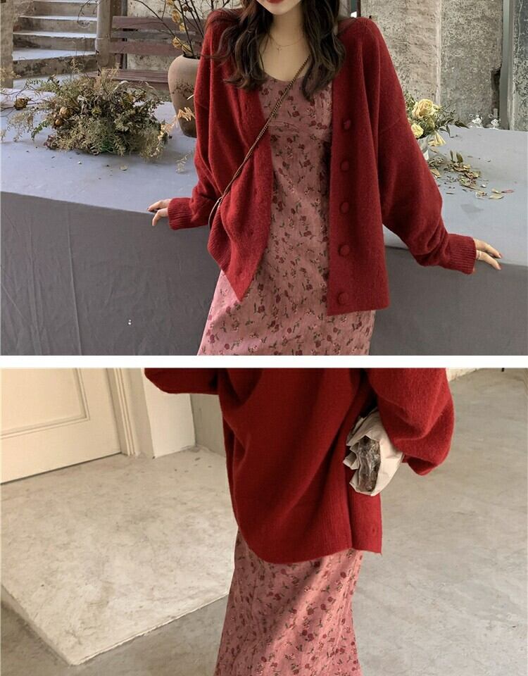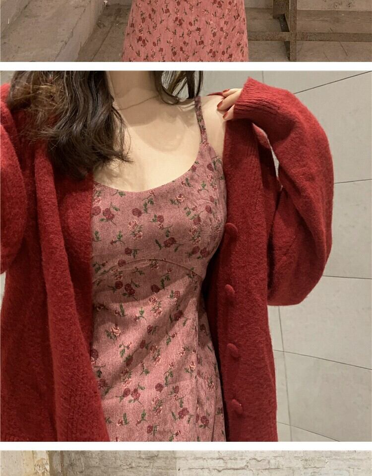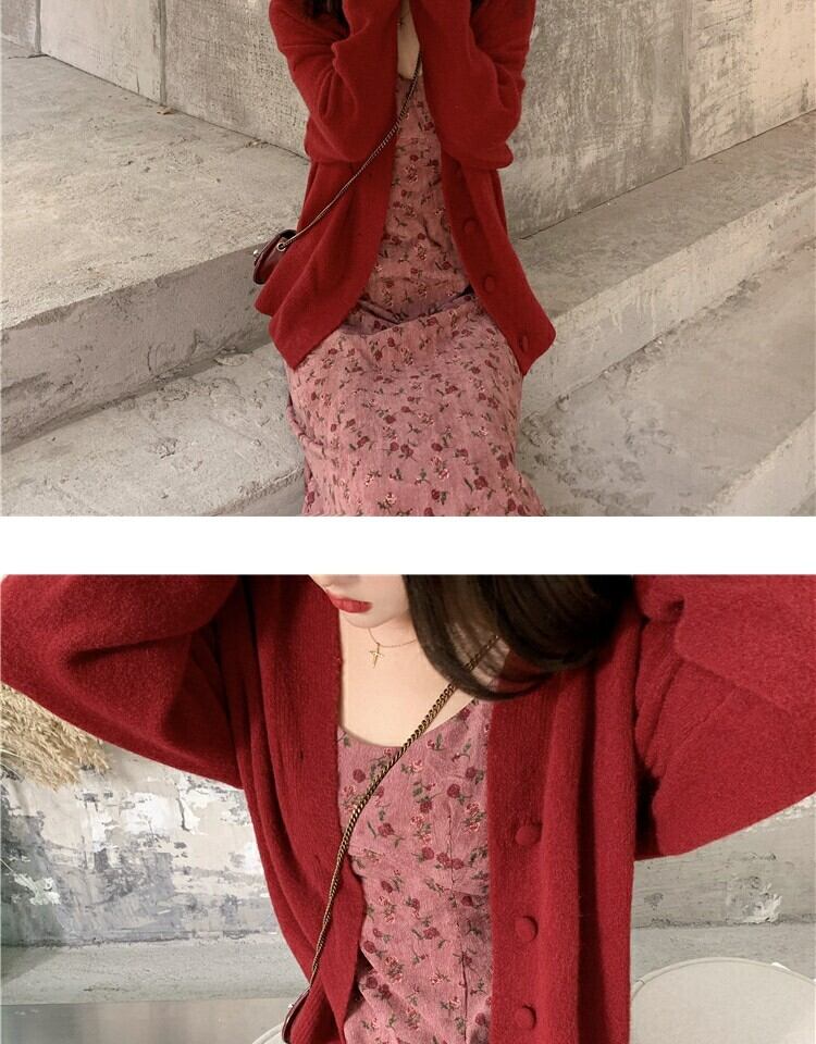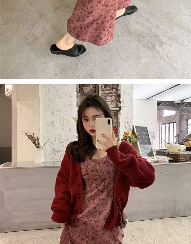 スタンダードレッドフローラルドレス スプリングウェストスカート レトロ 春物 花柄 萌量不足30899812656