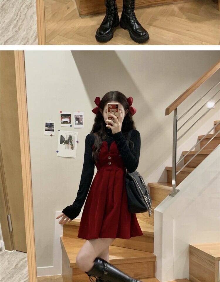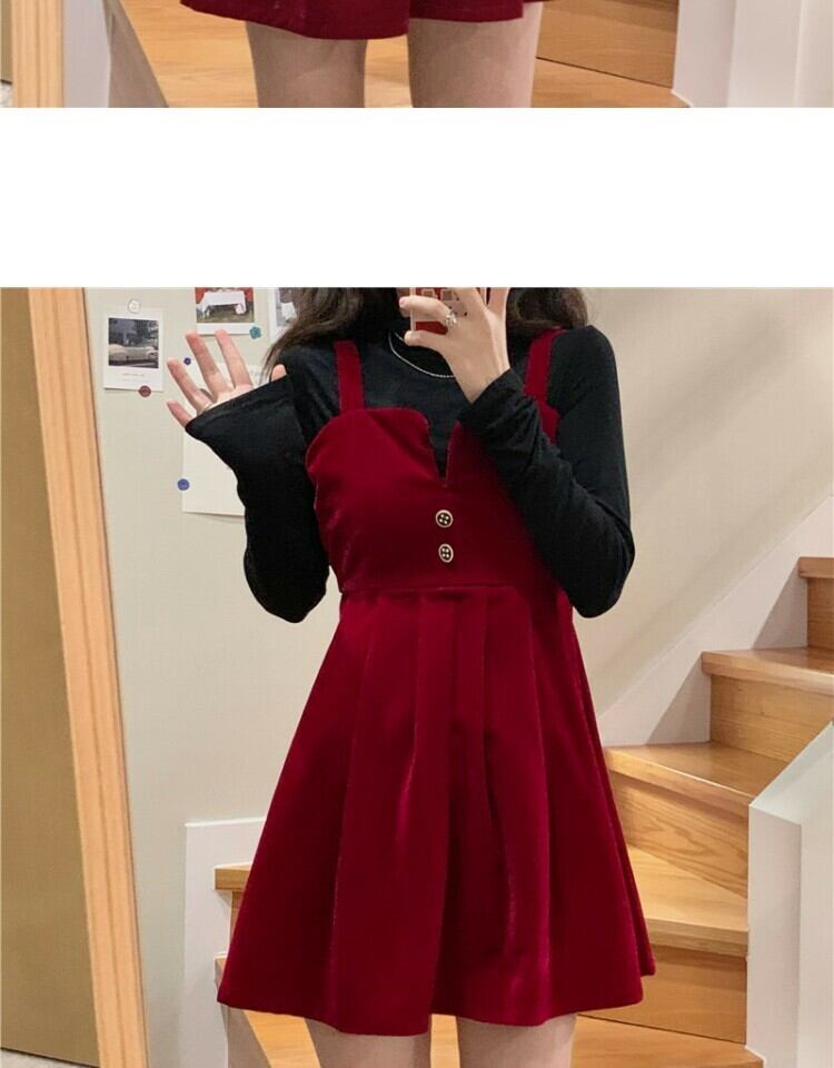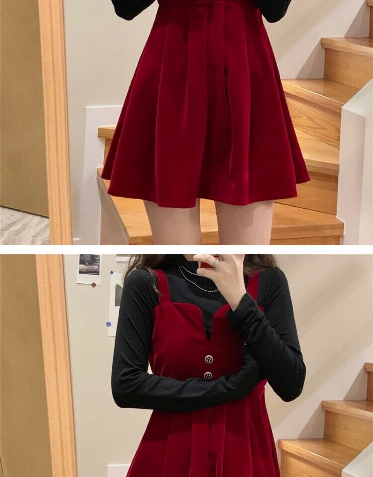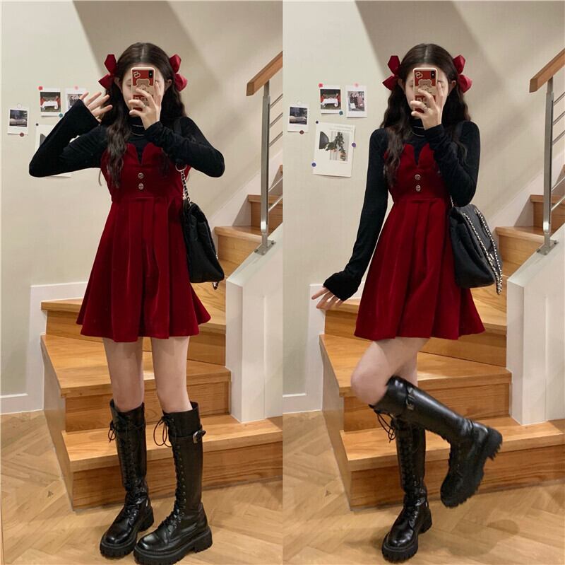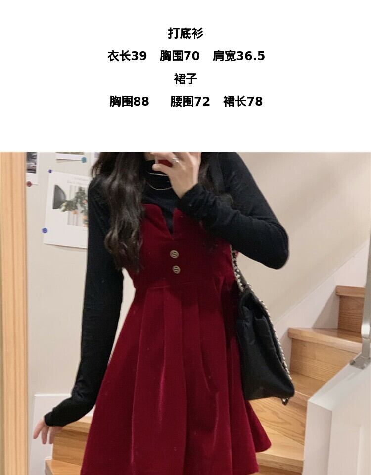 レッドドレス ウェストスプリングベルベットスカート スタイル 春物 萌量不足21047309408