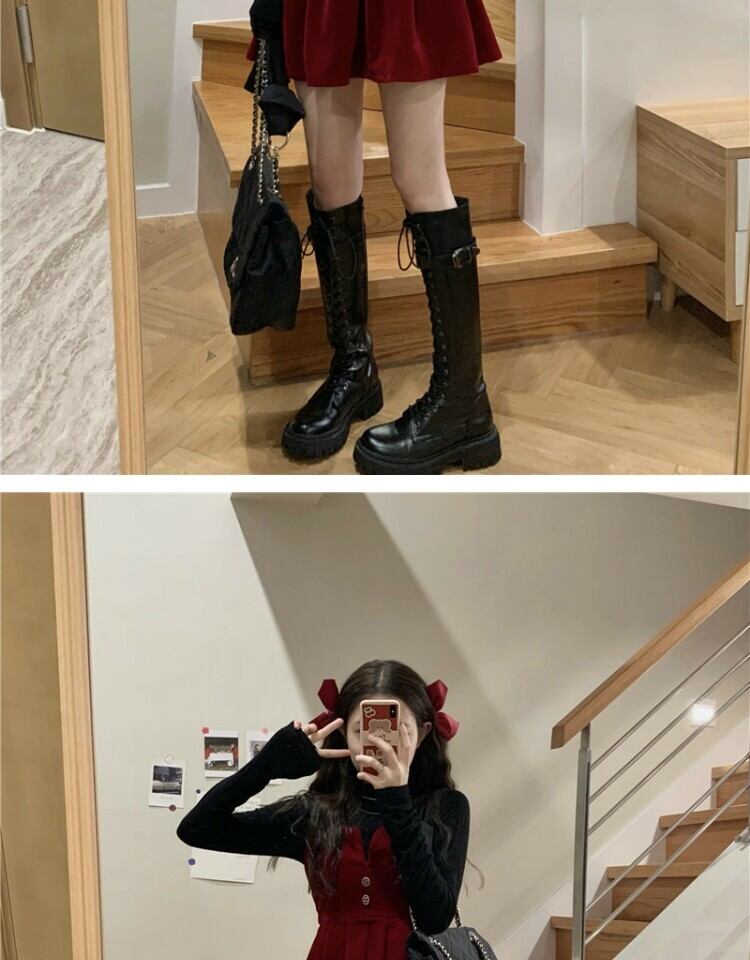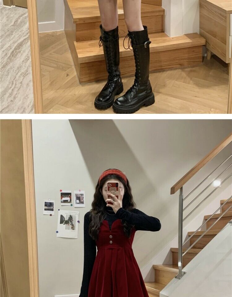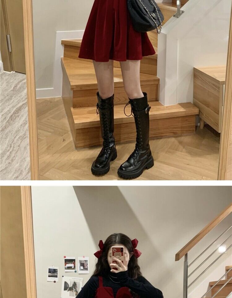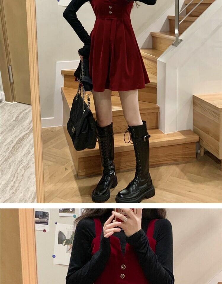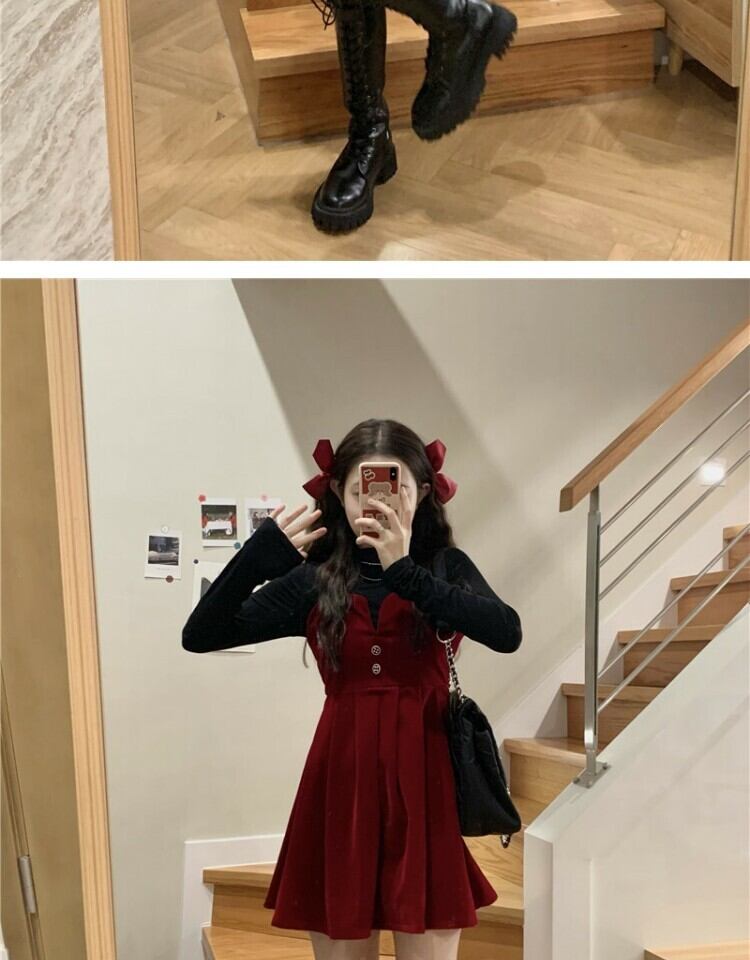 レッドドレス ウェストスプリングベルベットスカート スタイル 春物 萌量不足21047309408