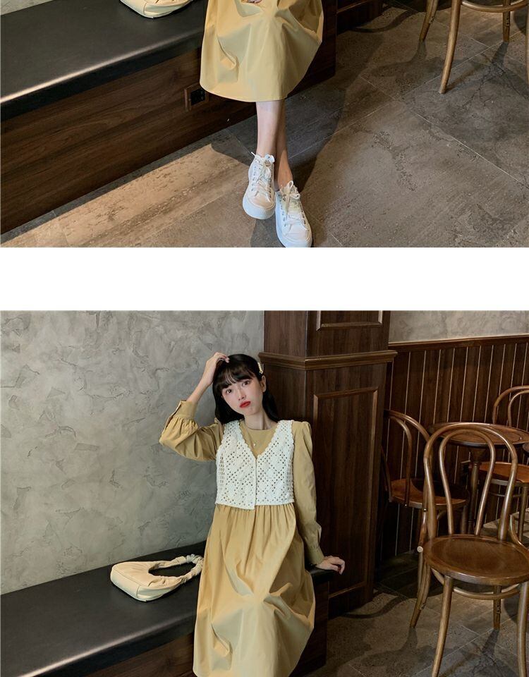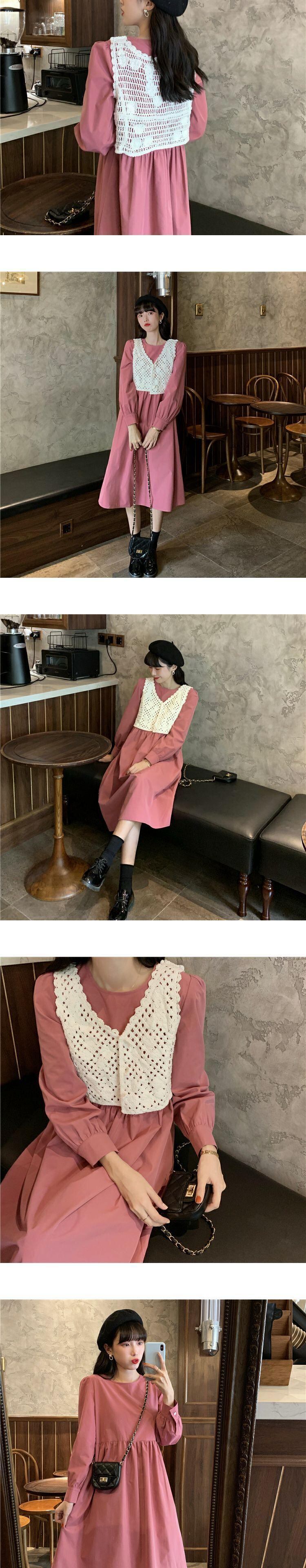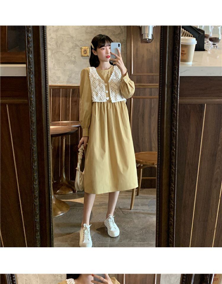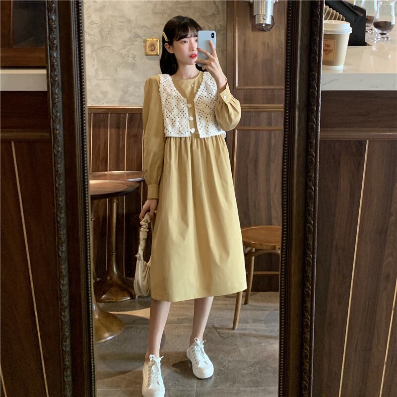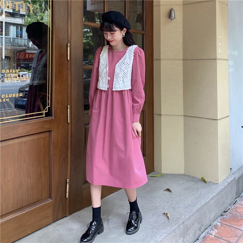ドレス スプリングハイウェストウェストスリムルーズラウンドネック長袖スリーブスカート ロング 大人ガーリー スウィート キュート カジュアル 春物 Oネック 萌量不足69369181650