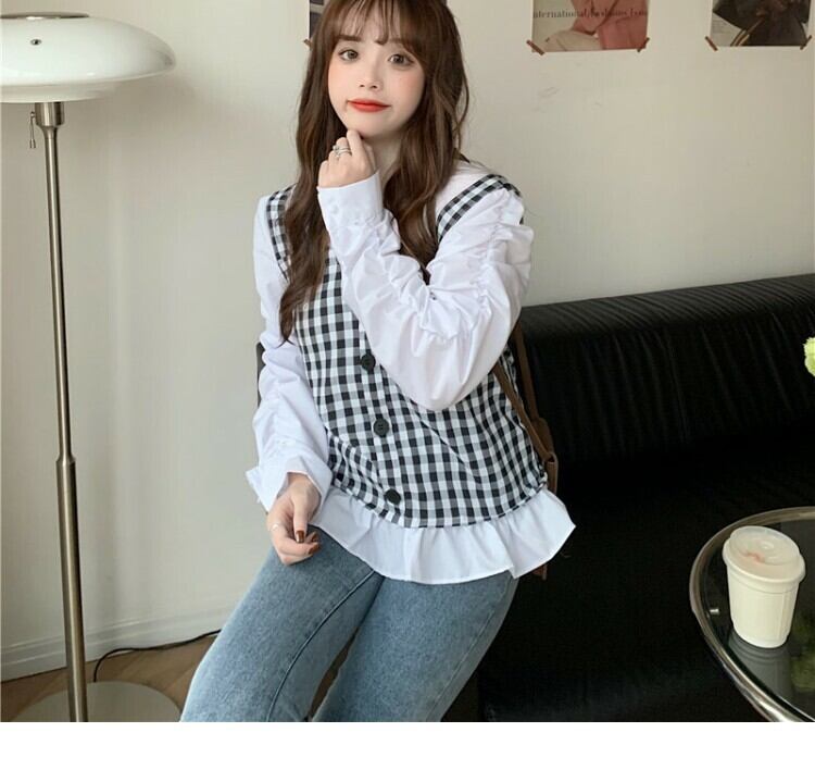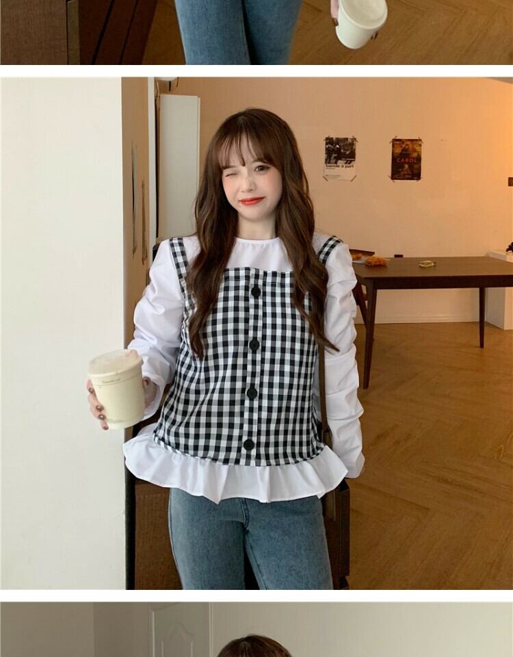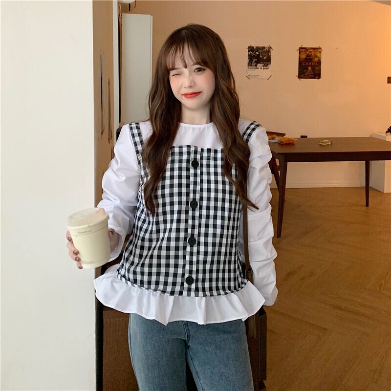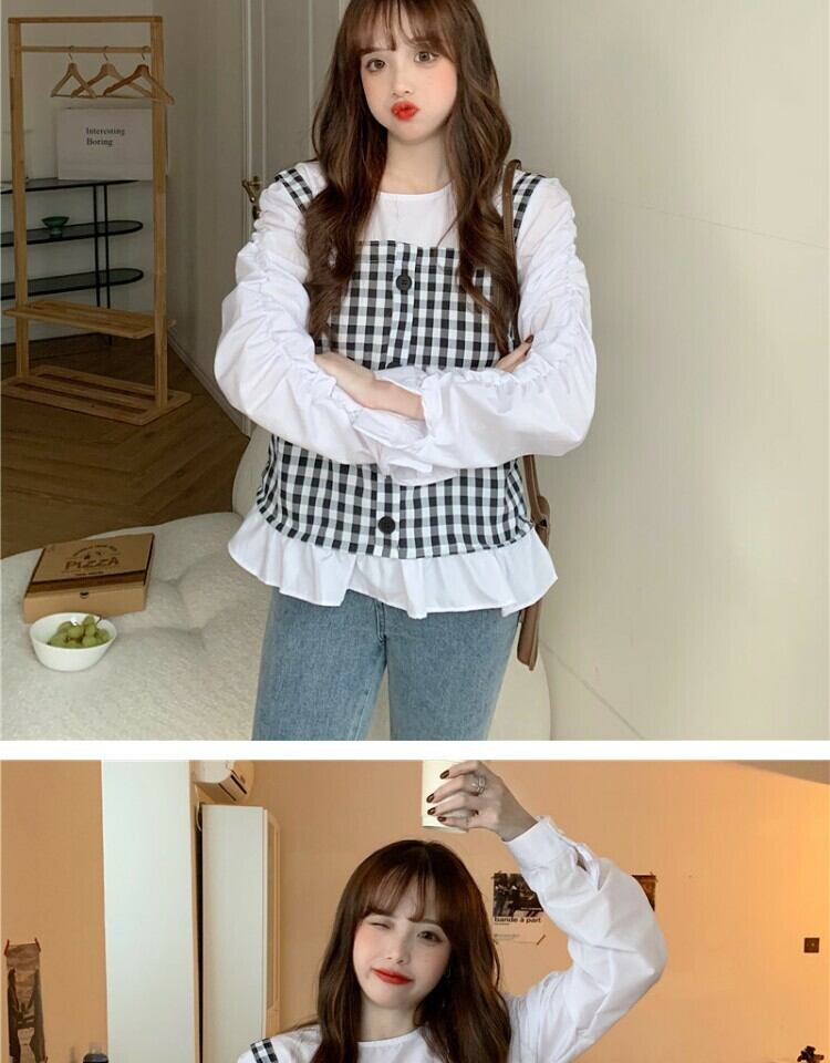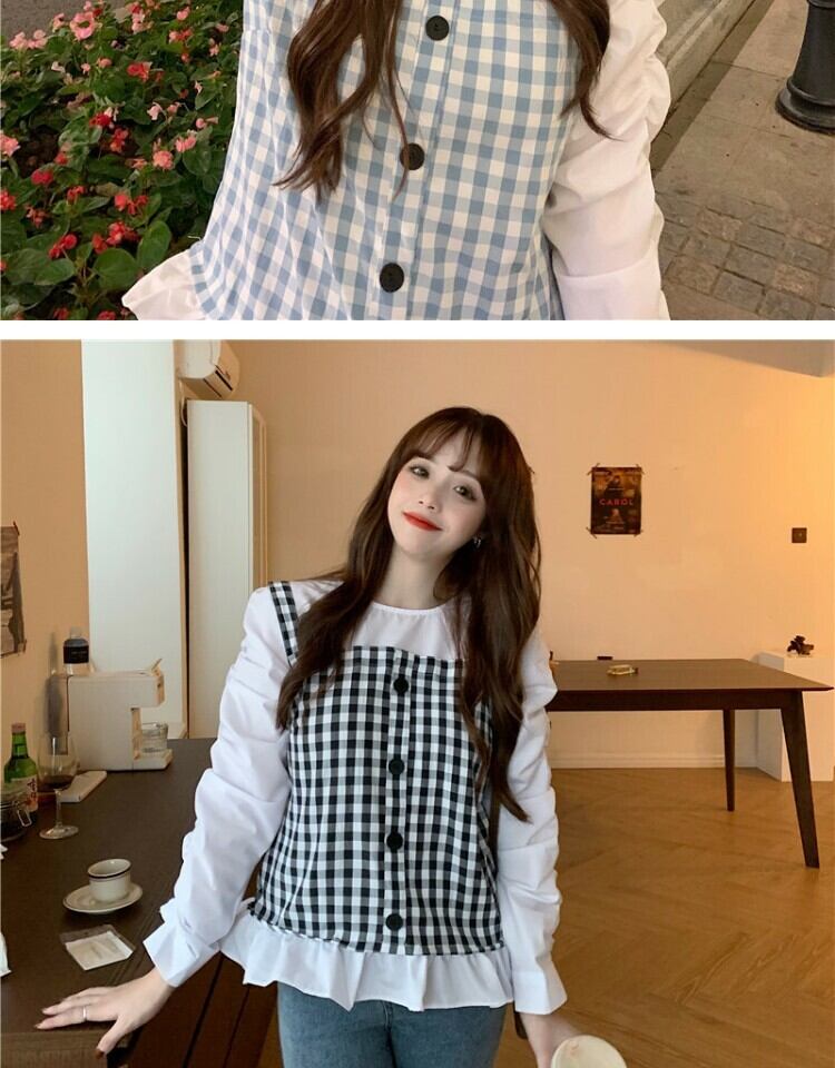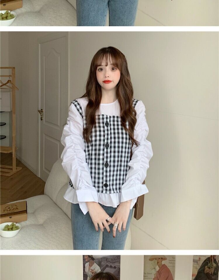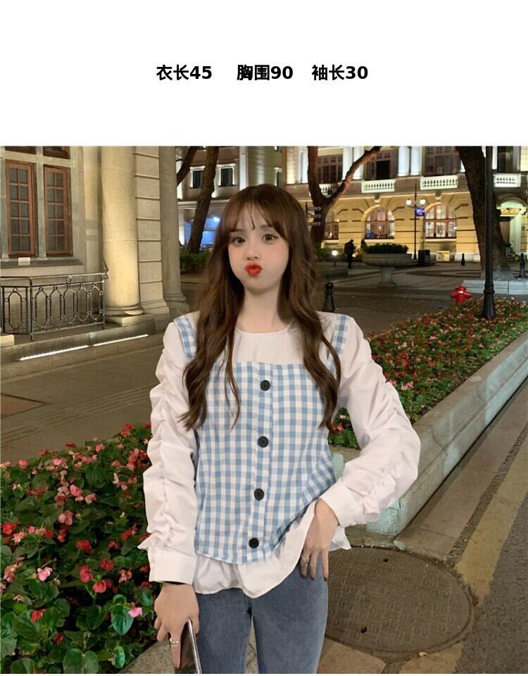 格子柄シャツ スタイルスプリングルーズウェストプリーツスリーブトップス 春物 萌量不足16138858897