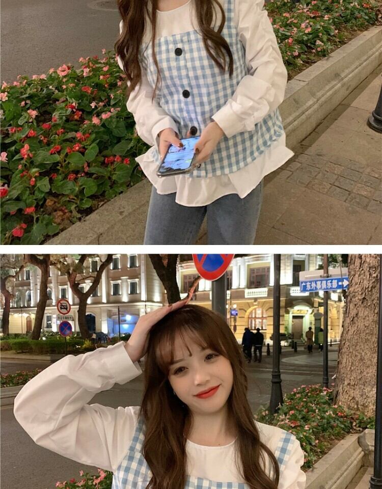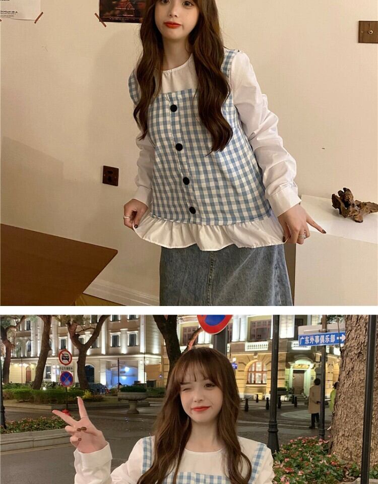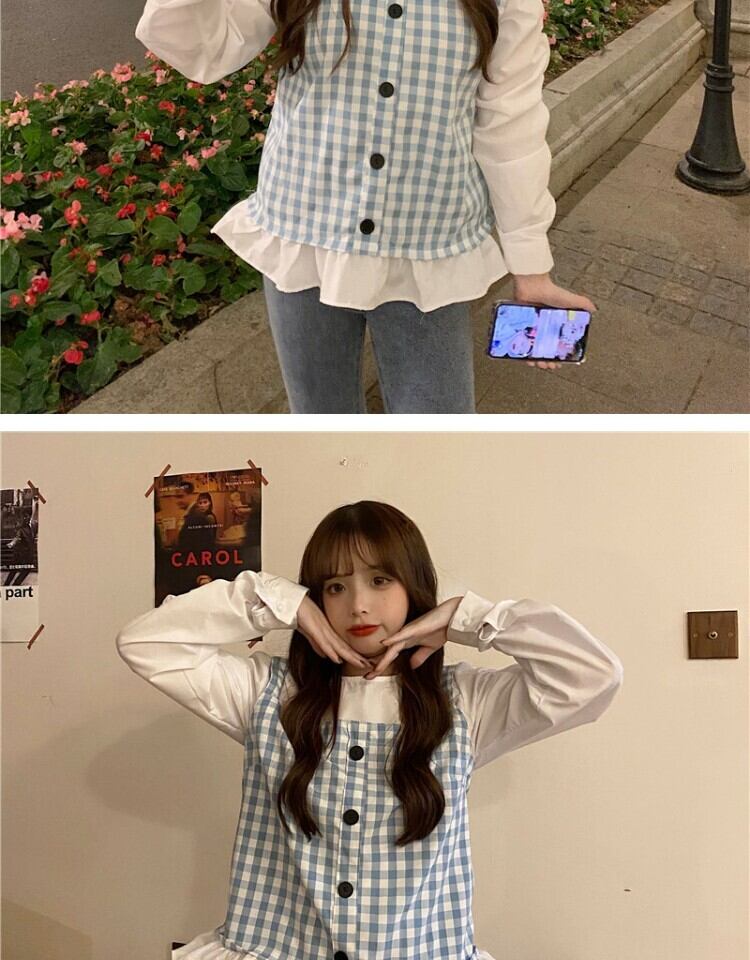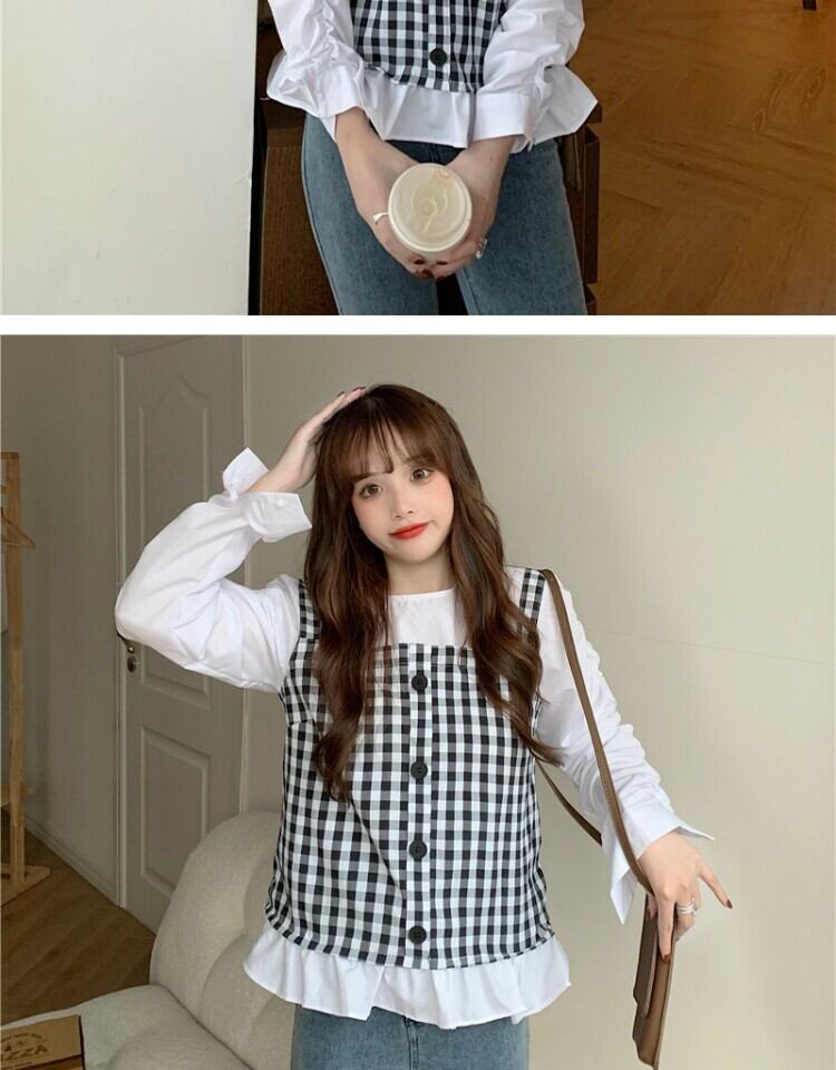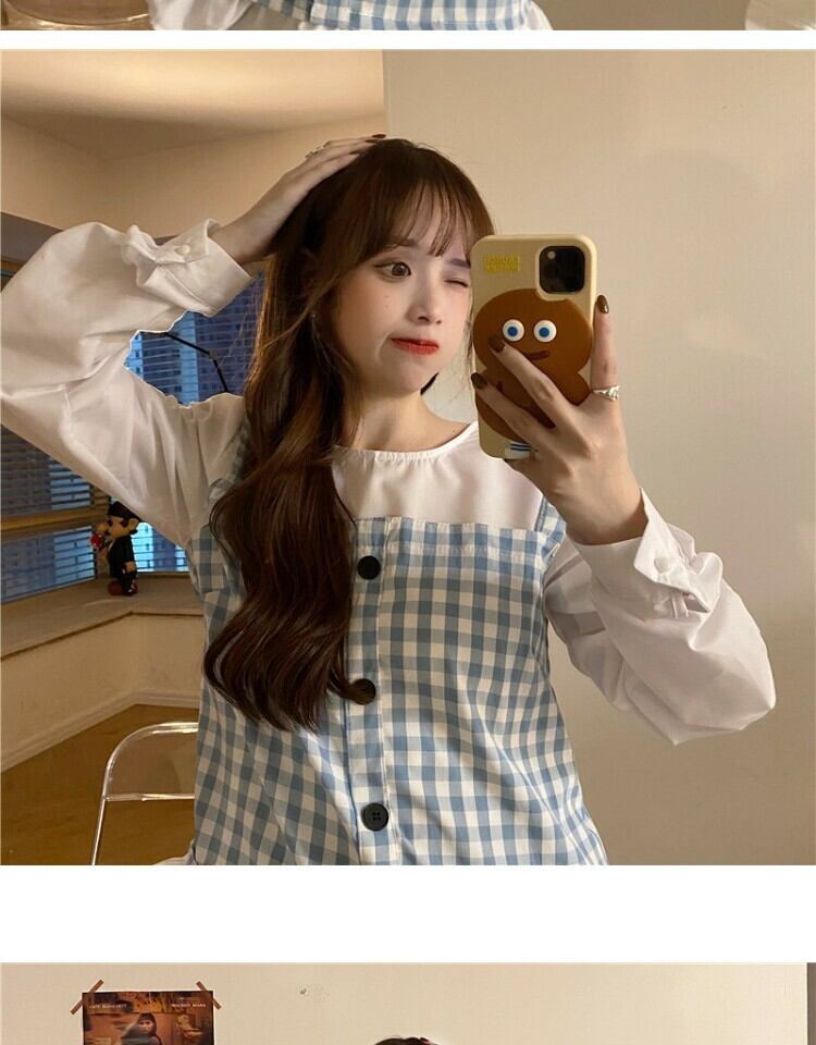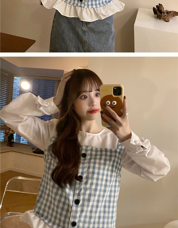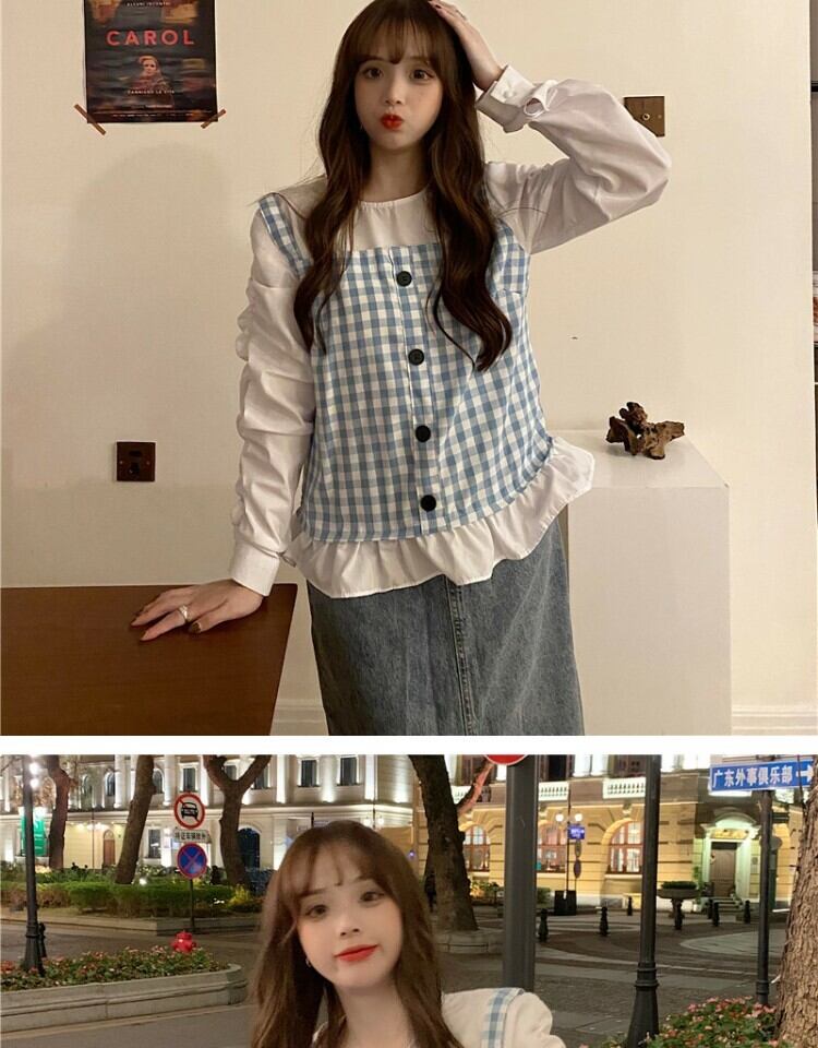 格子柄シャツ スタイルスプリングルーズウェストプリーツスリーブトップス 春物 萌量不足16138858897