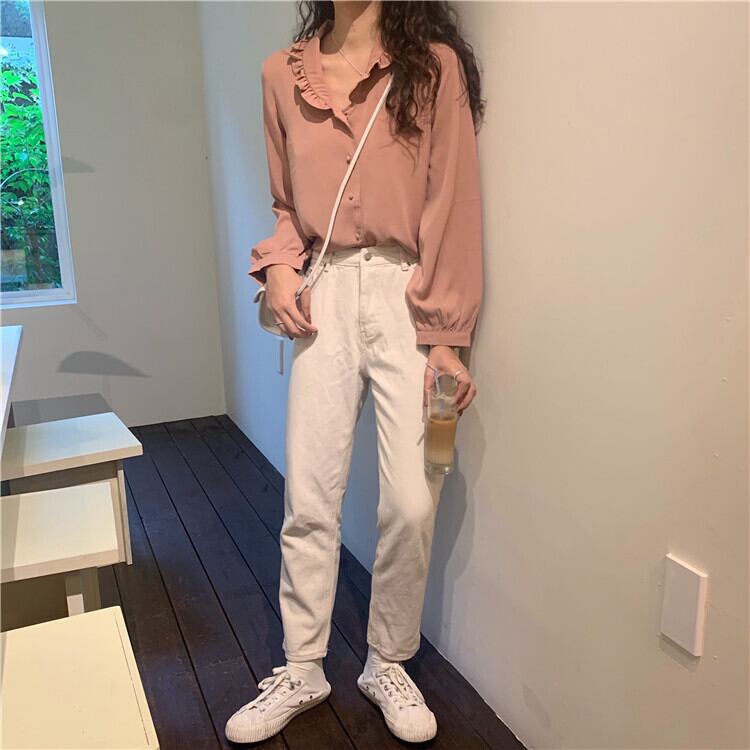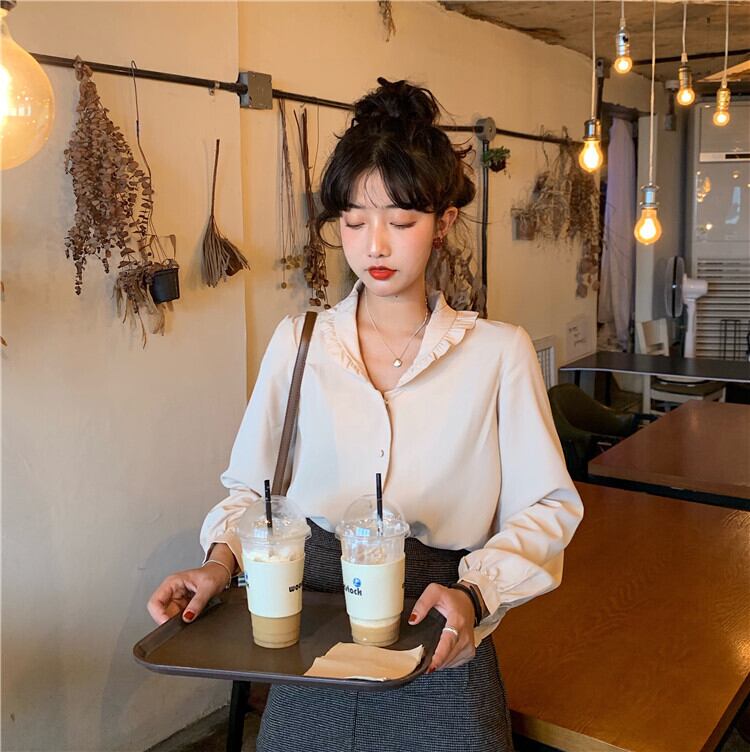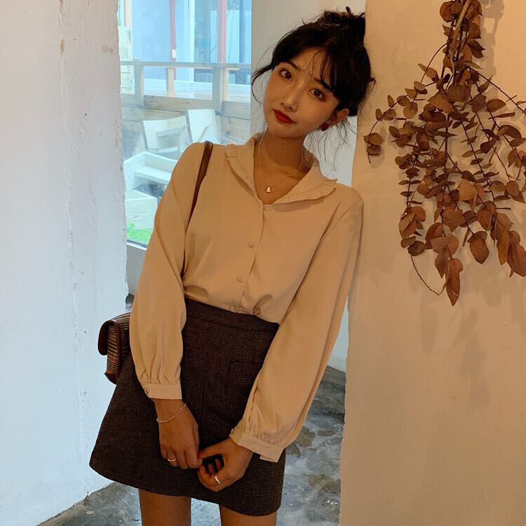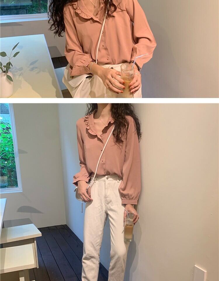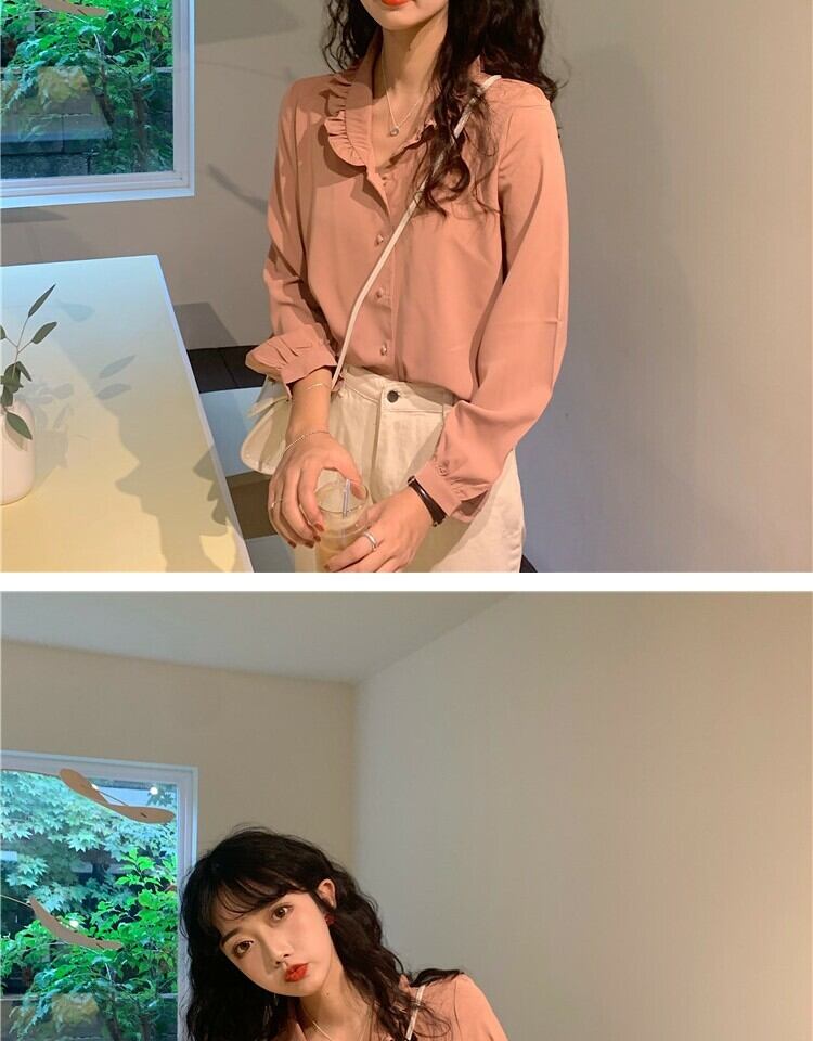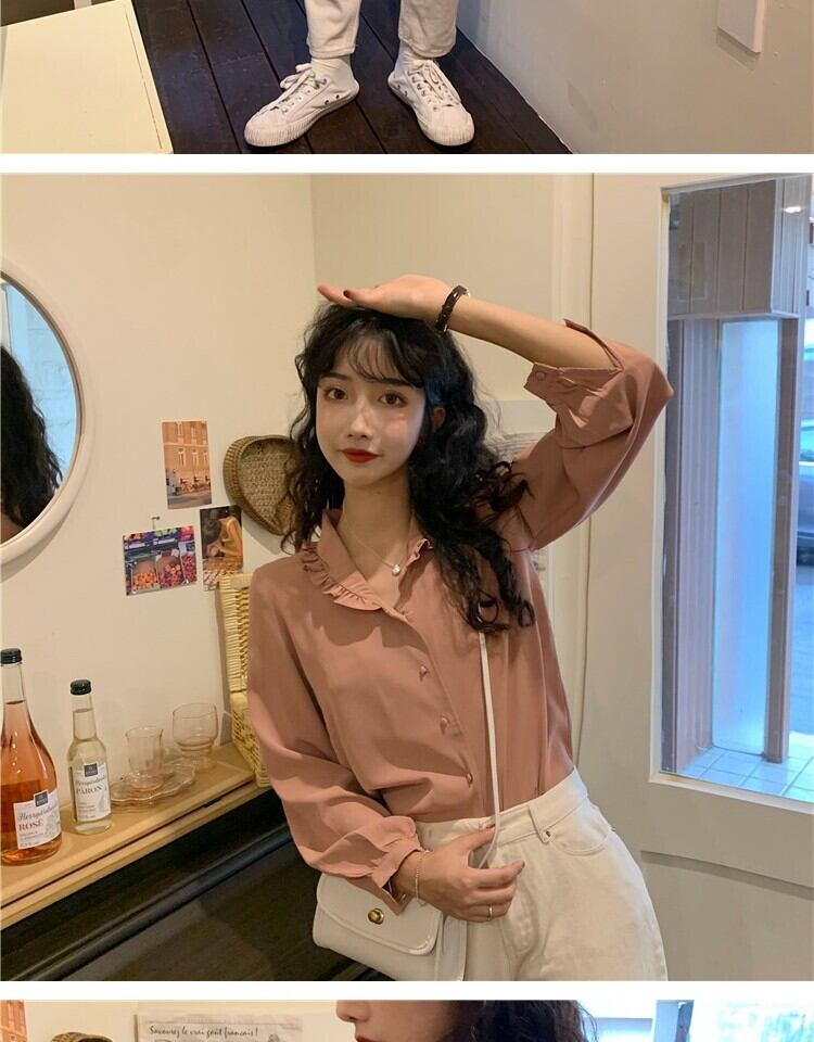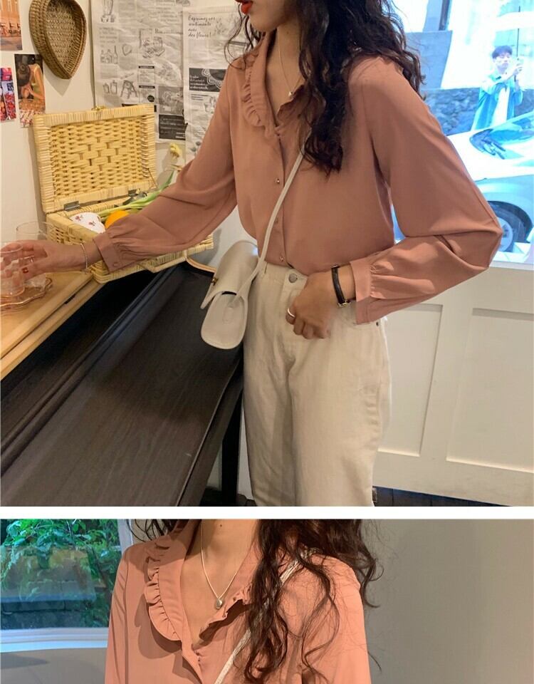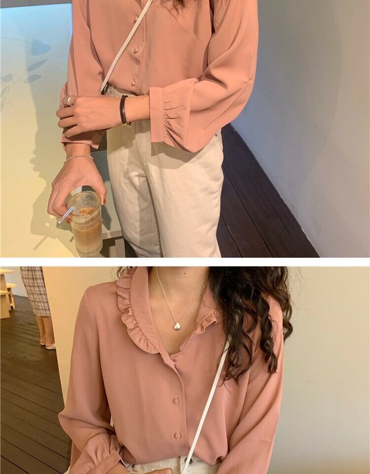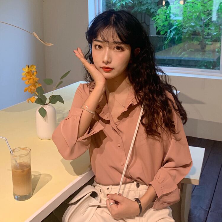 シャツ スプリングソリッド カラールーズ薄手ブラウス ロング 大人ガーリー スウィート キュート カジュアル 春物 ソリッドカラー 萌量不足3639039131