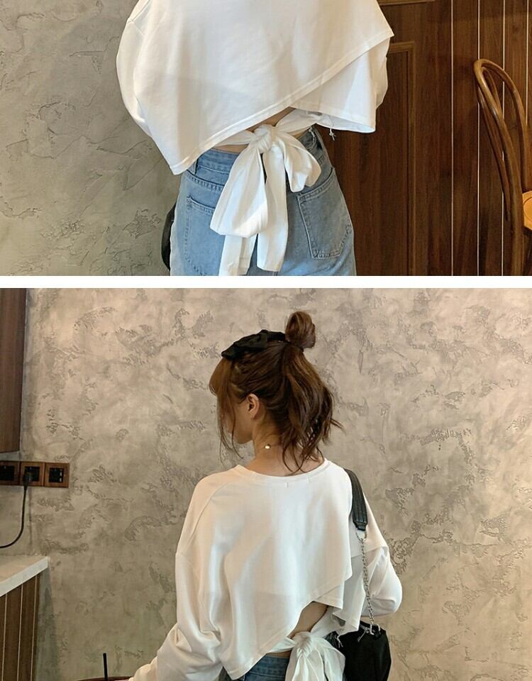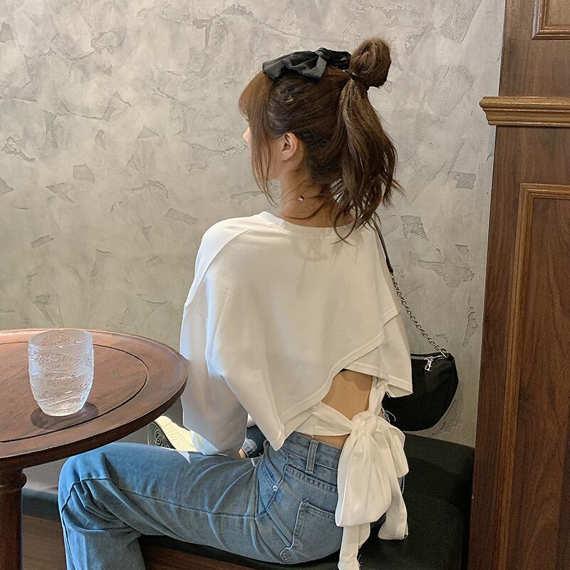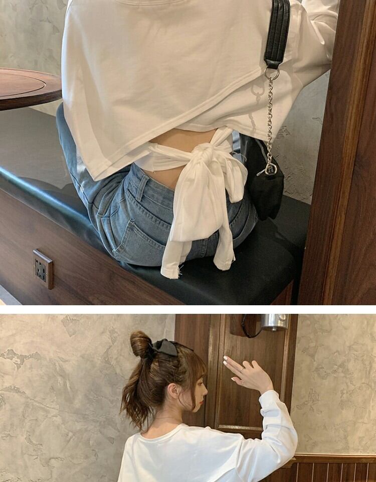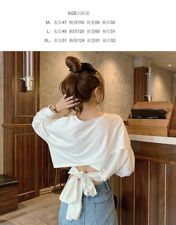 バックリボンショートTシャツ レディーススプリングルーズブラウス ロング 春物 萌量不足8410229959