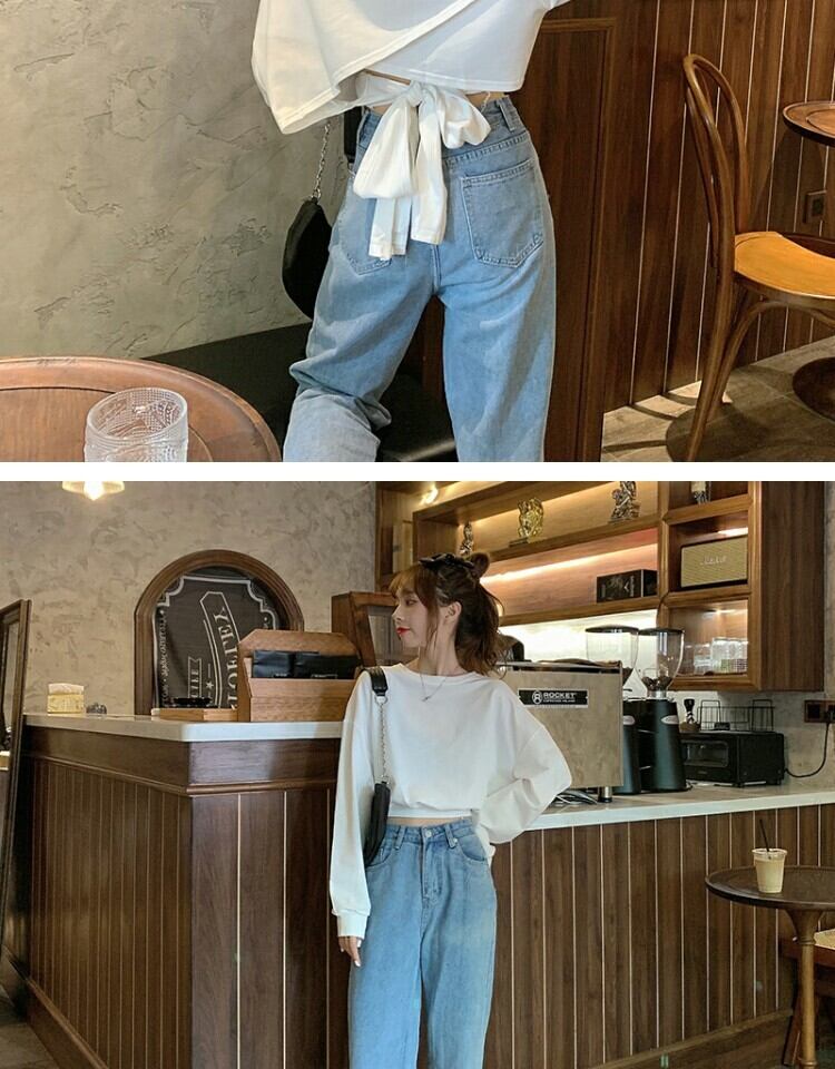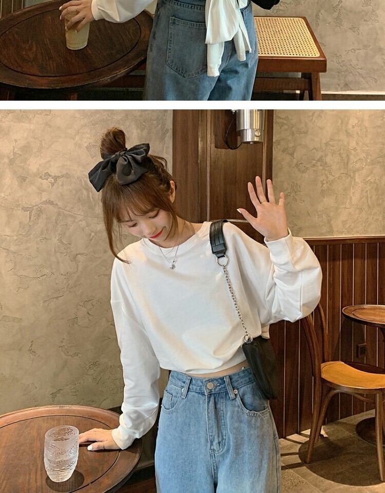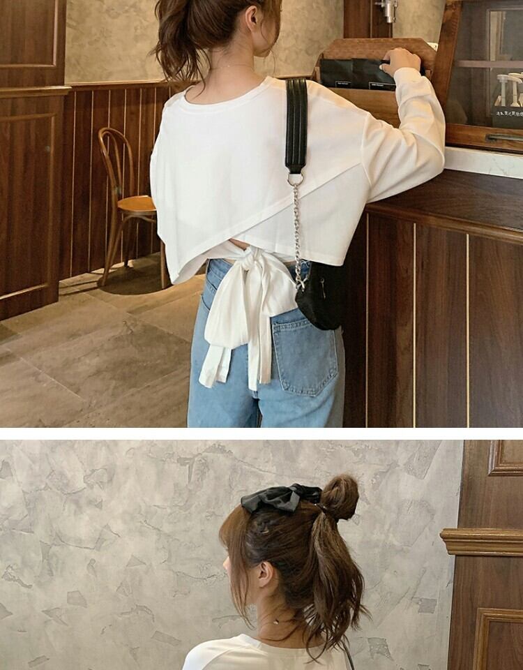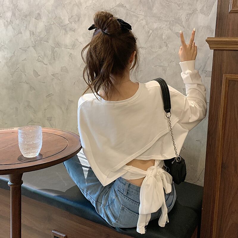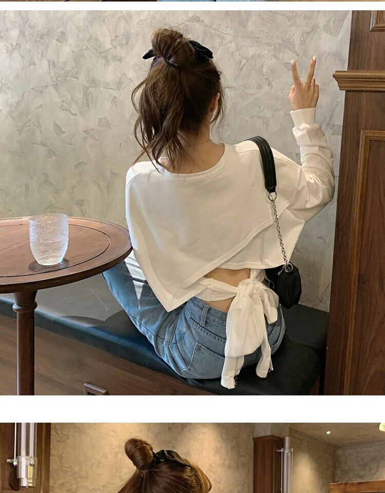 バックリボンショートTシャツ レディーススプリングルーズブラウス ロング 春物 萌量不足8410229959