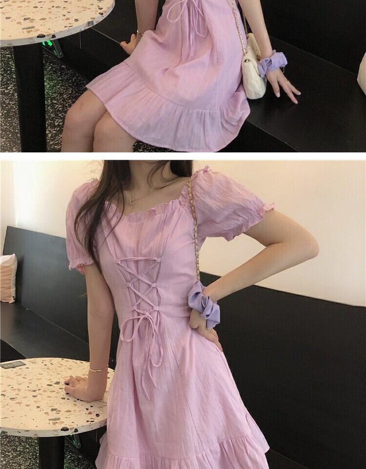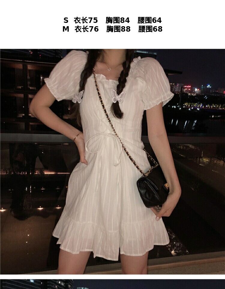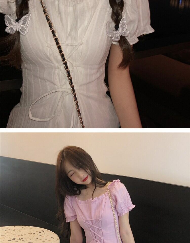 レーススリーブドレス サマーウェストスリムスカート 大人ガーリー スウィート キュート カジュアル 夏物 スクウェア 萌量不足68899682445