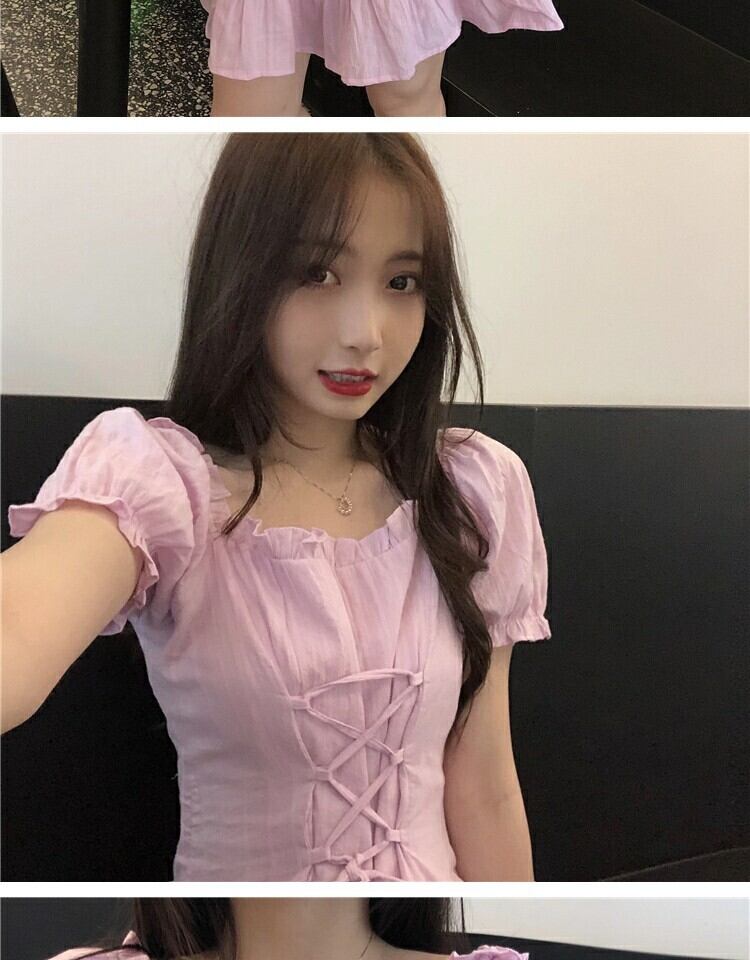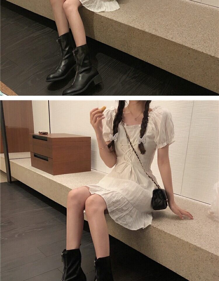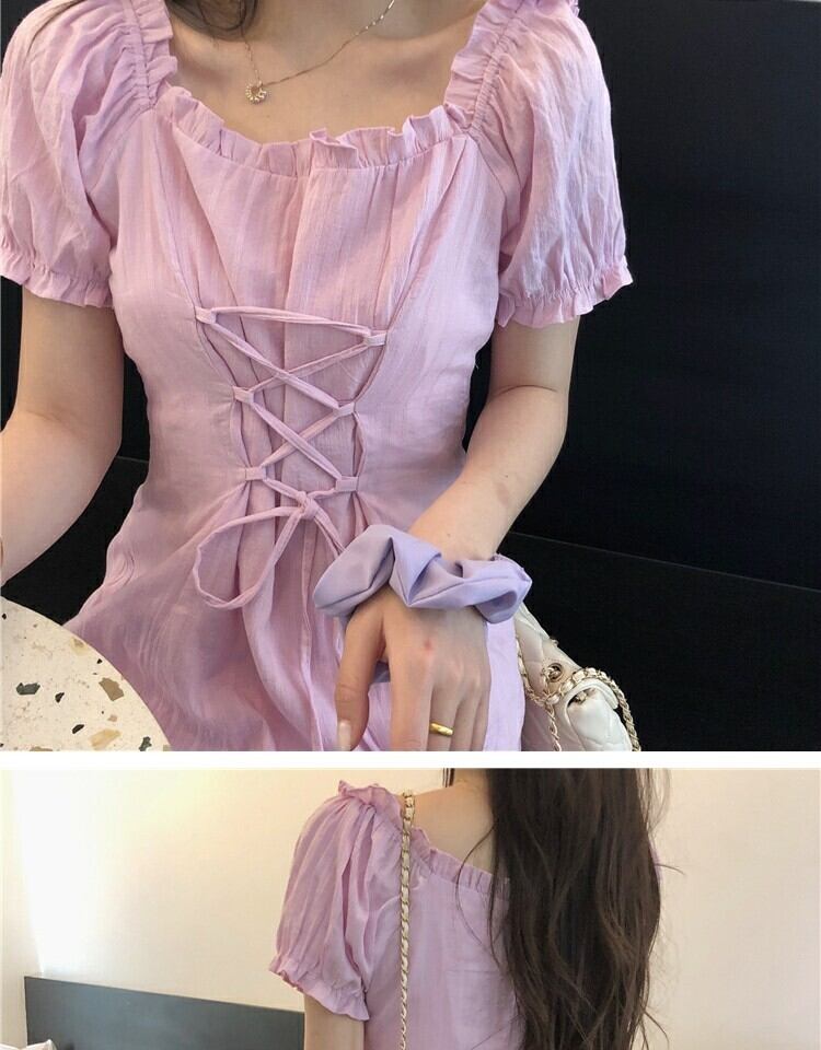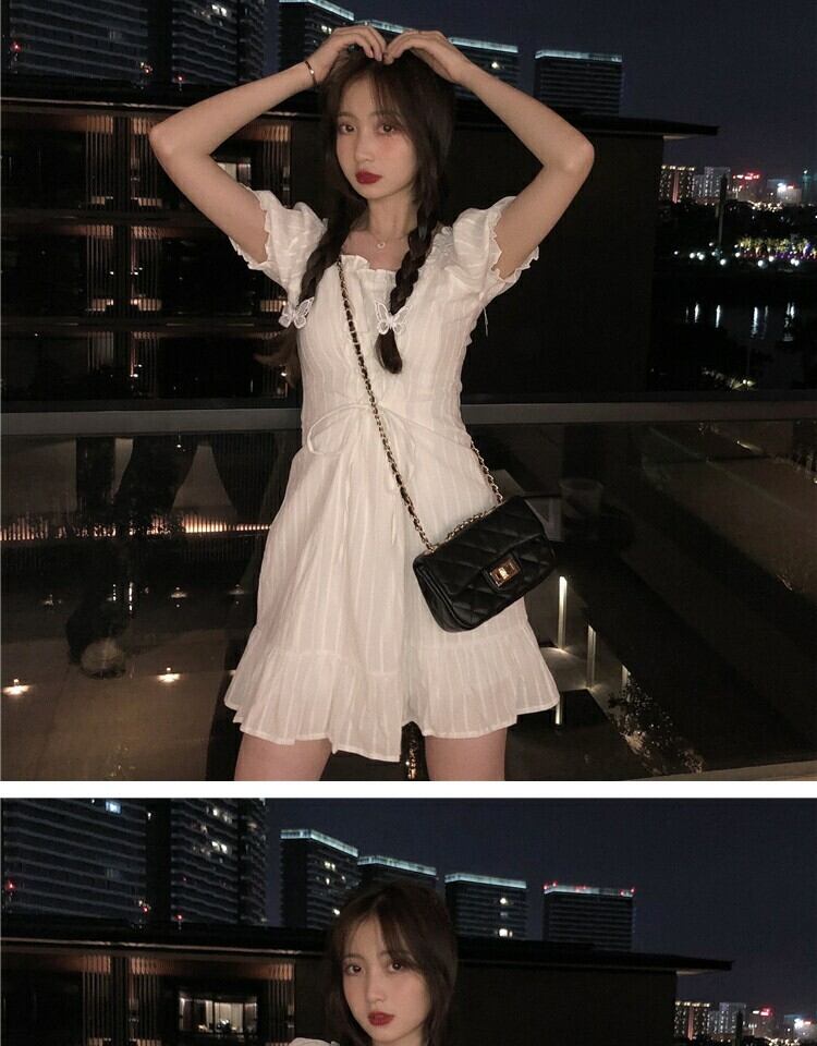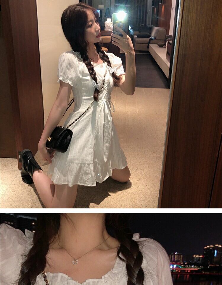 レーススリーブドレス サマーウェストスリムスカート 大人ガーリー スウィート キュート カジュアル 夏物 スクウェア 萌量不足68899682445