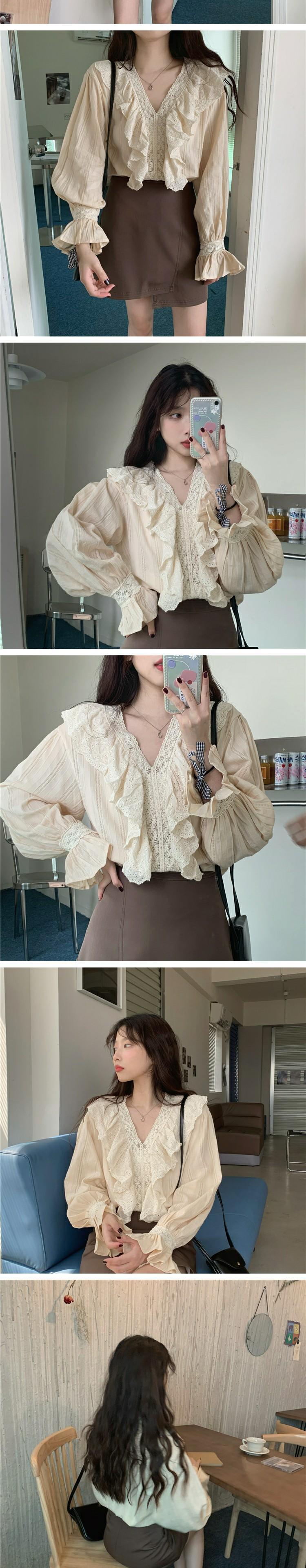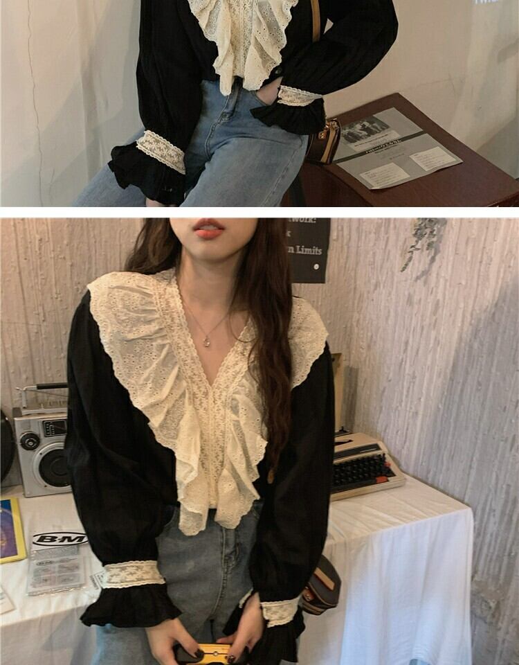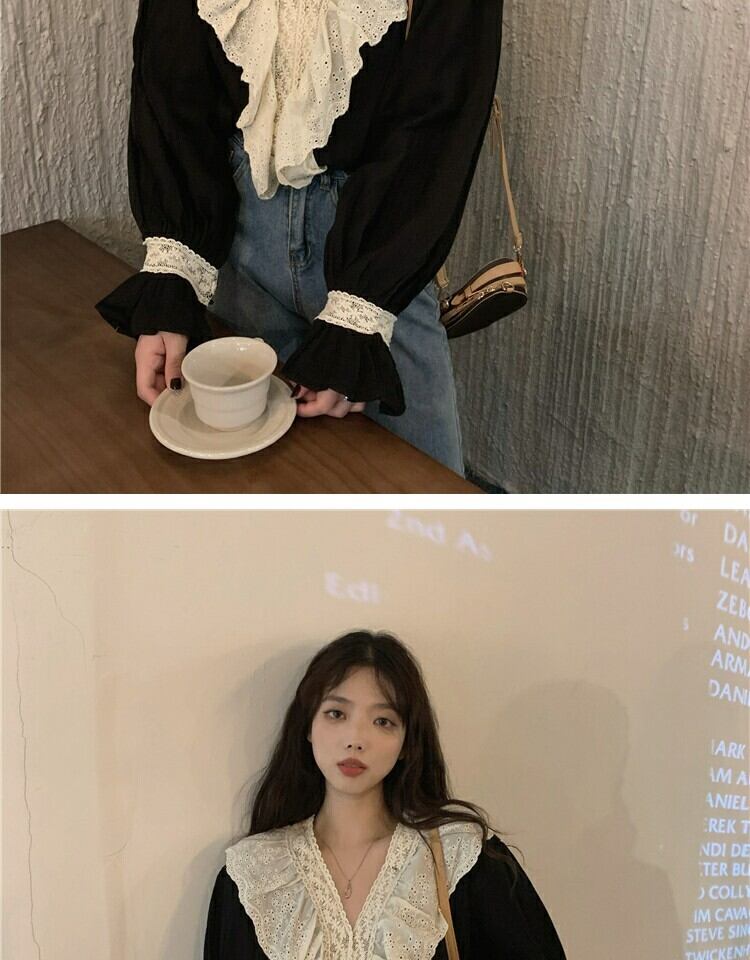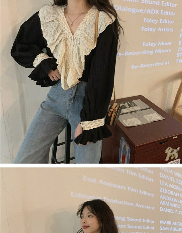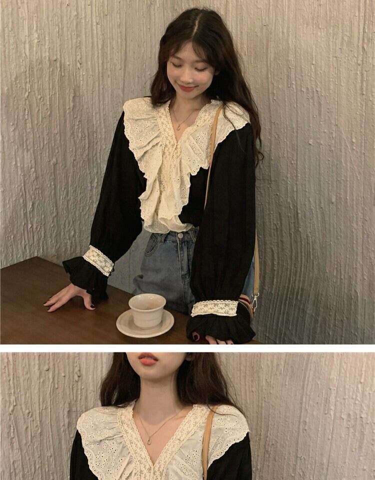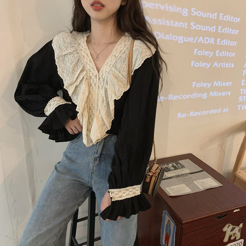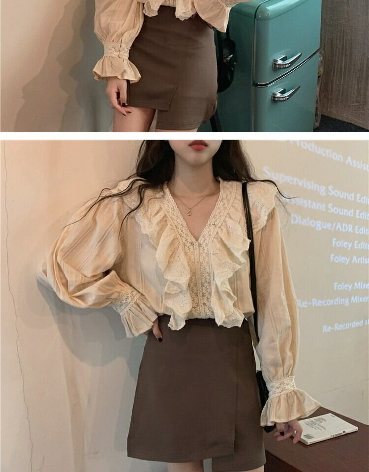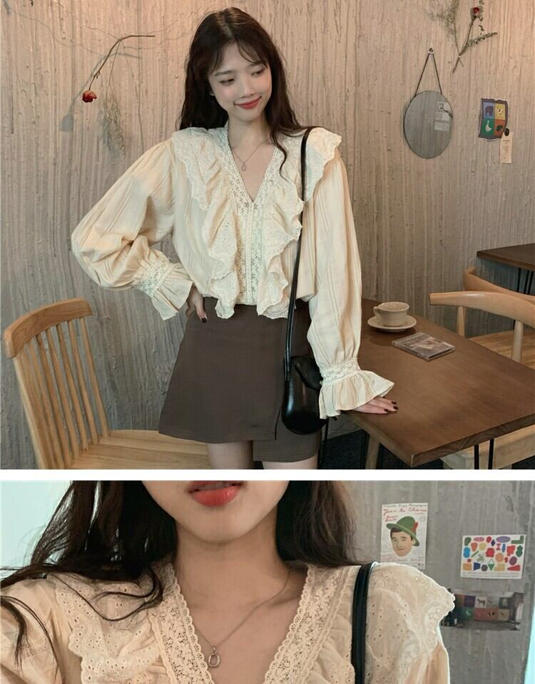 Vネックシャツ スプリングスリーブスタイルトップス 春物 萌量不足81224048263