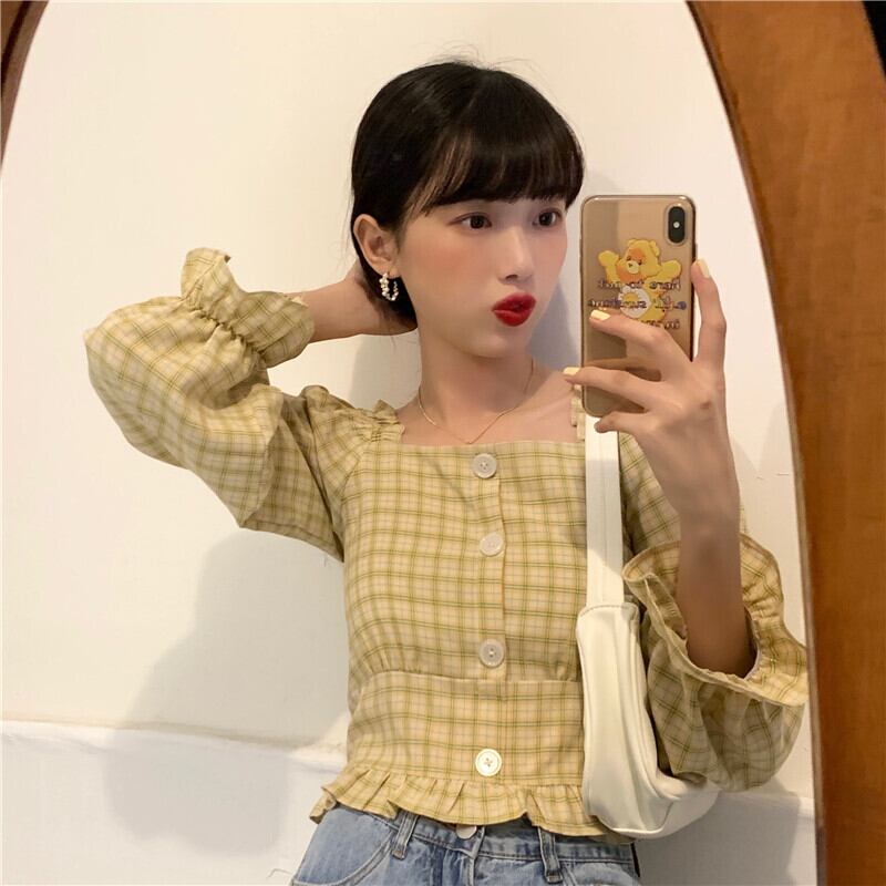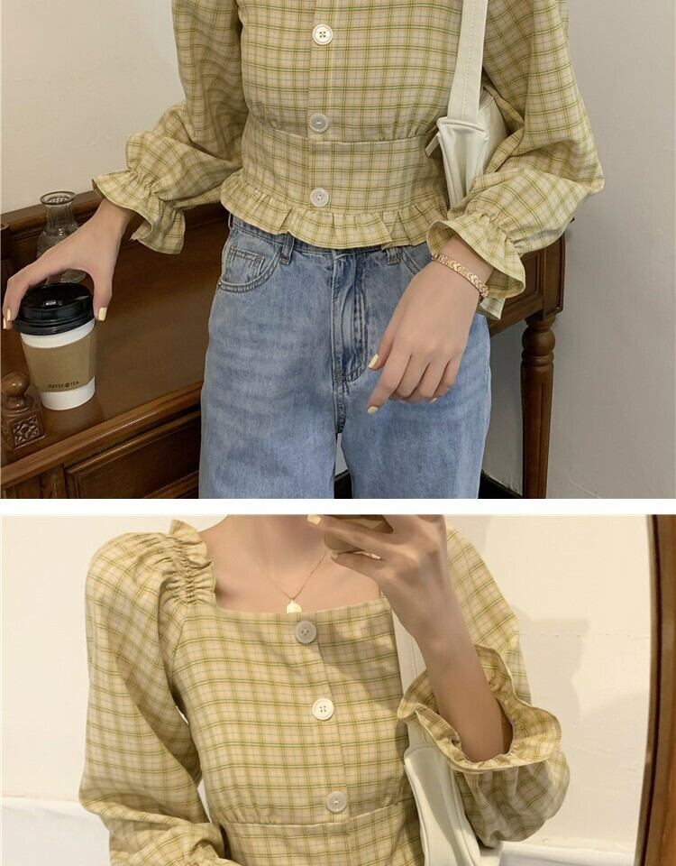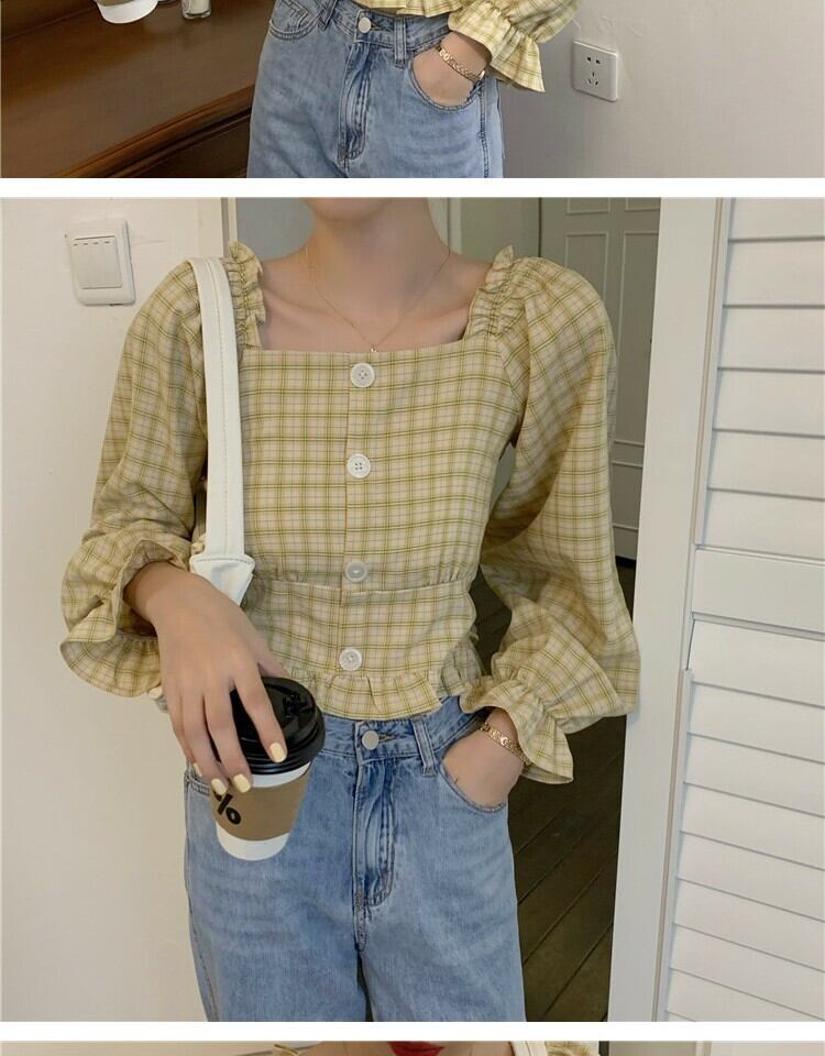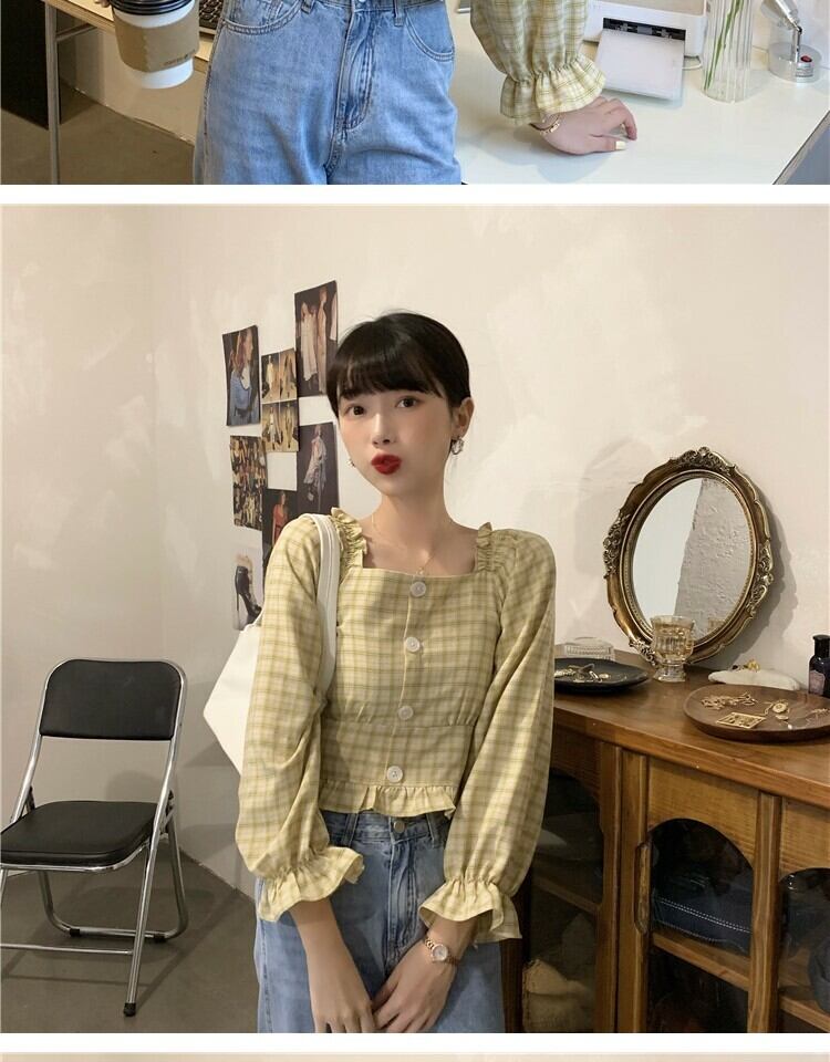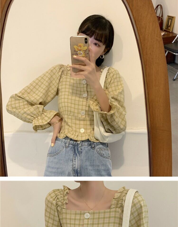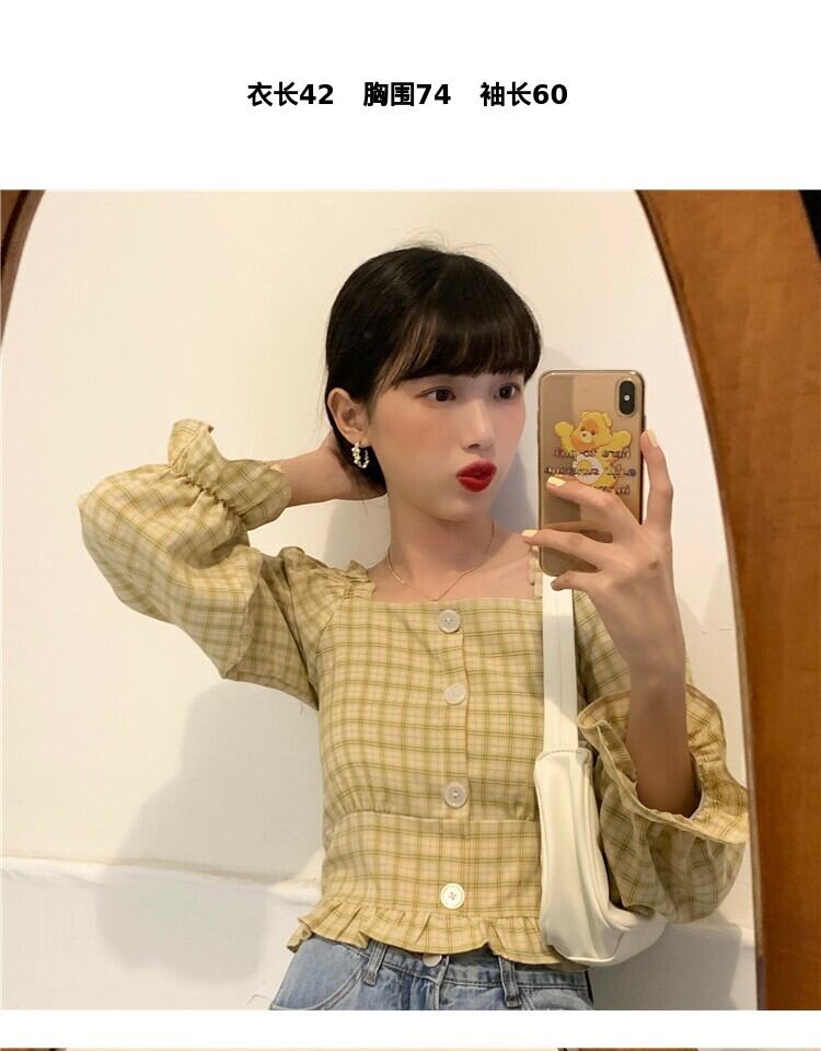 格子柄シャツ スプリングスリム薄手カラートップス ロング 春物 スクウェア 萌量不足2018998639