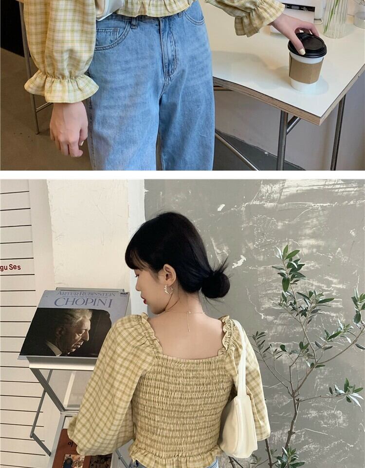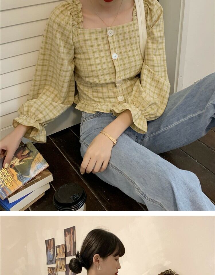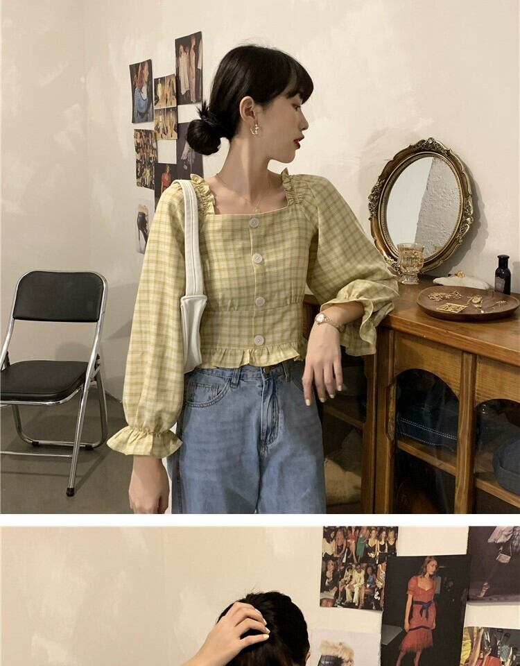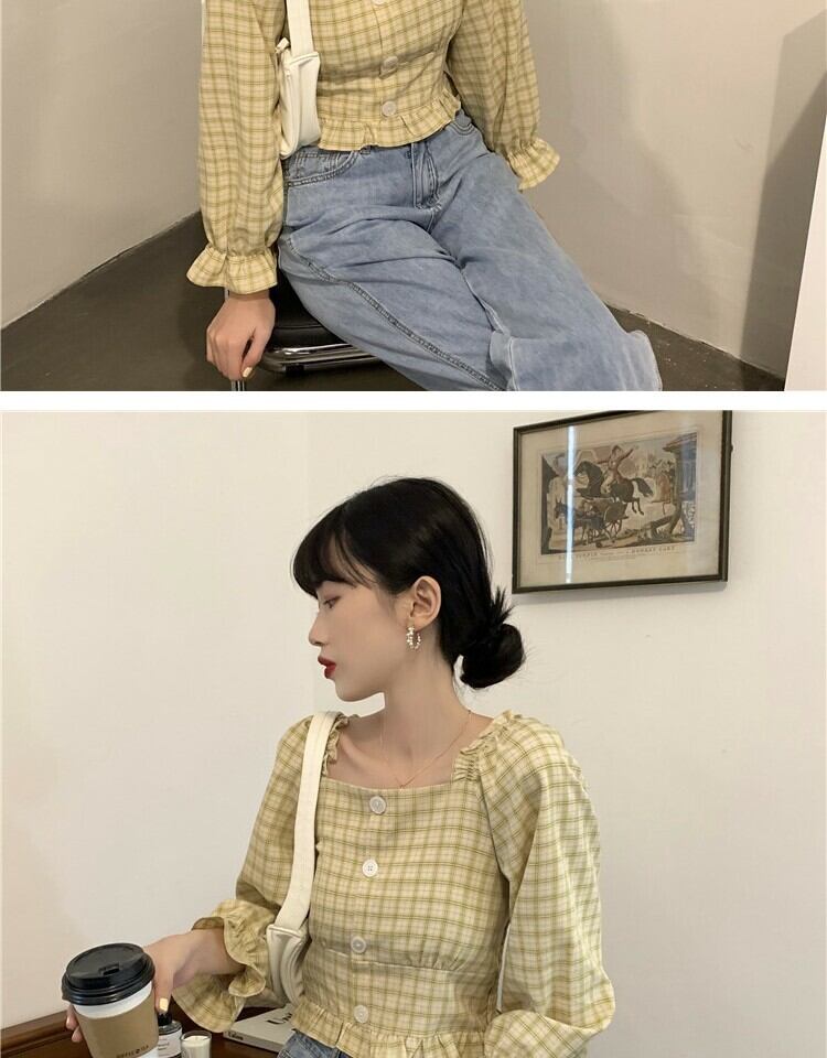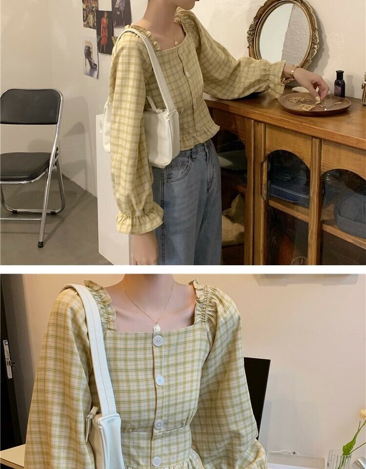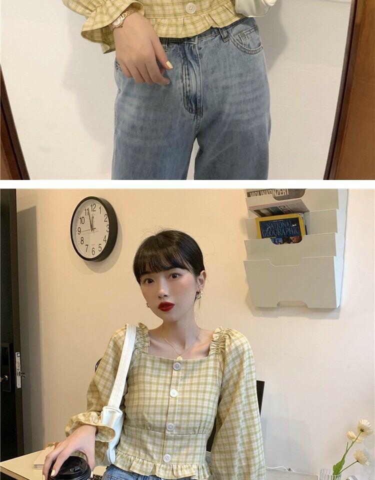 格子柄シャツ スプリングスリム薄手カラートップス ロング 春物 スクウェア 萌量不足2018998639