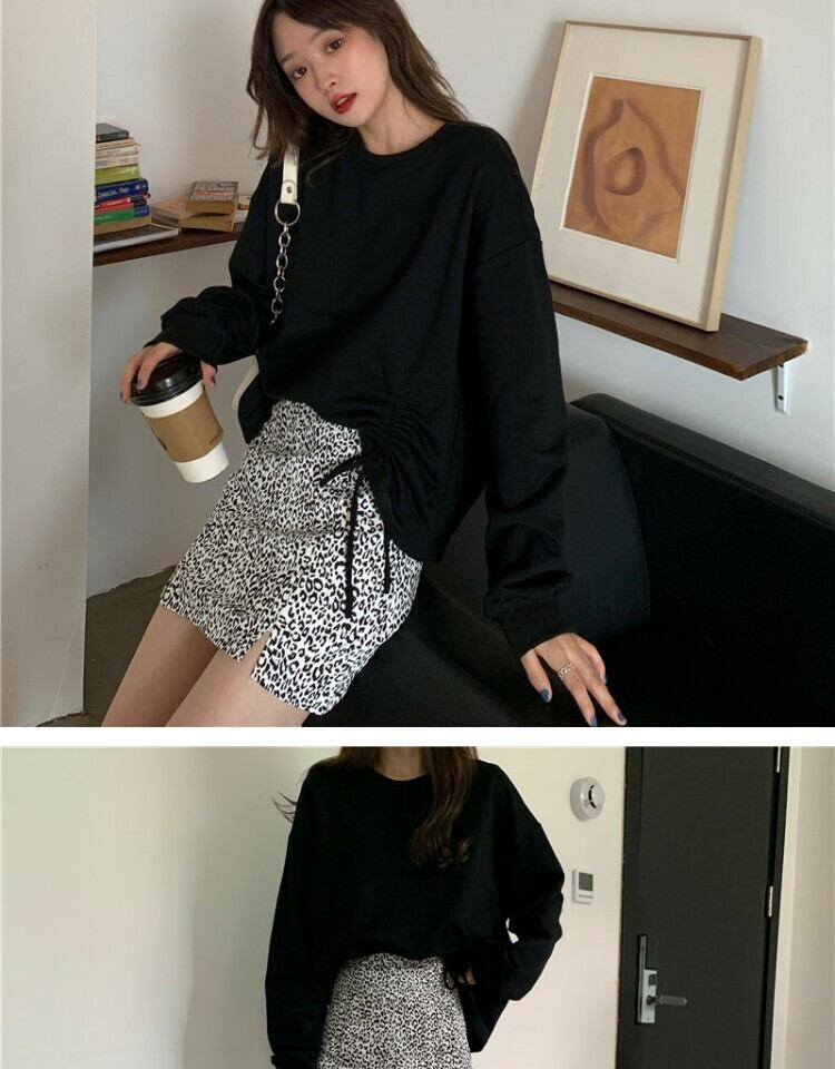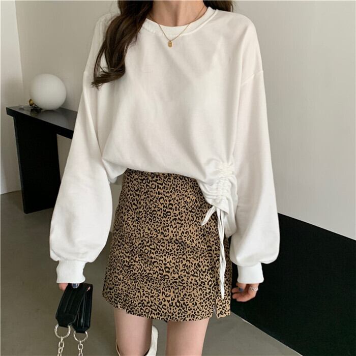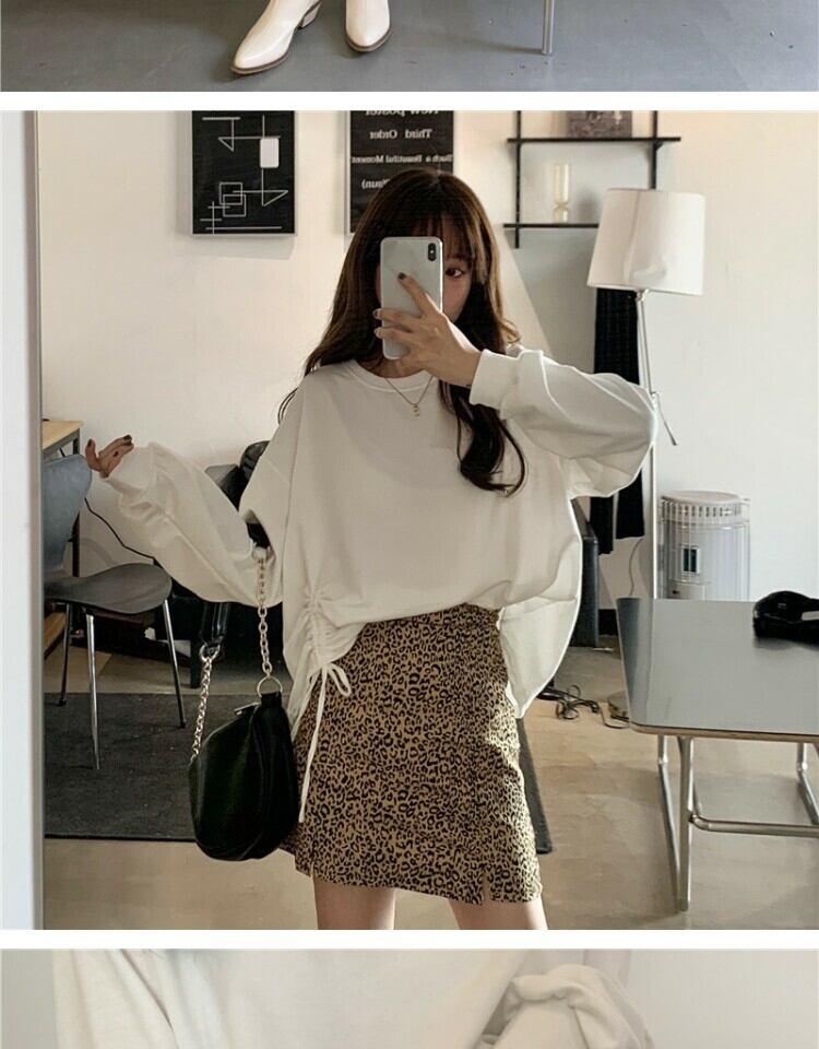 ギャザーホワイトTシャツ レディーススプリングスタイルルーズ薄手カジュアルプルオーバー トップス ロング レース 春物 レースアップ 萌量不足13099826251